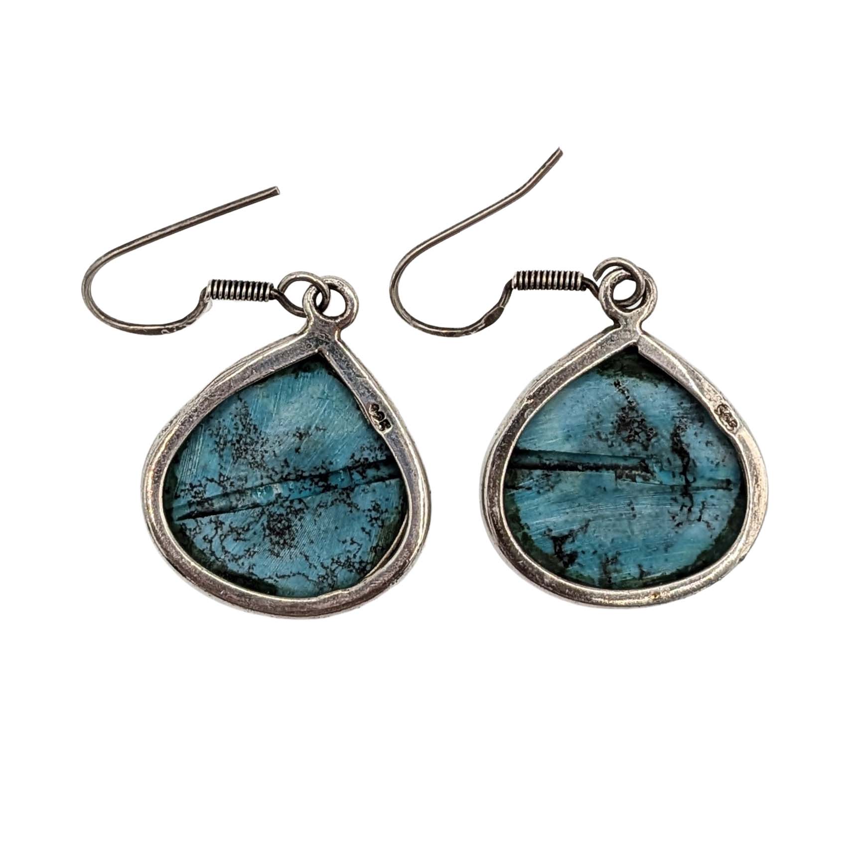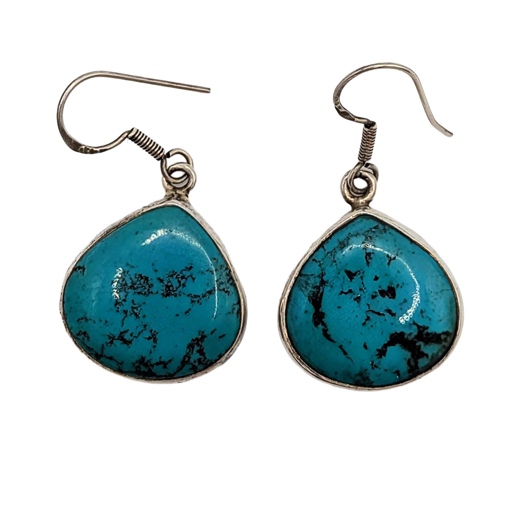 Sterling Silver Turquoise Drop Dangle Earrings. Signed 925. 8.7g