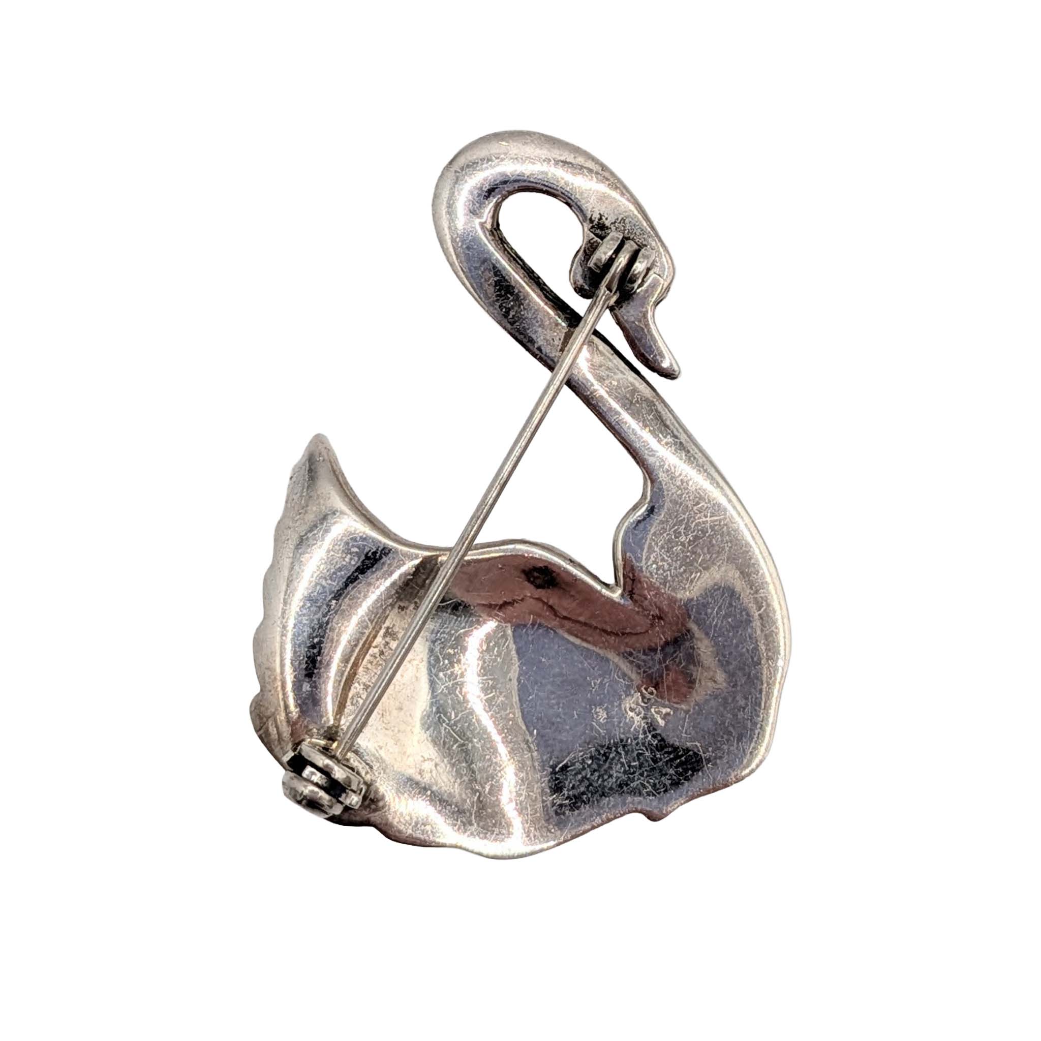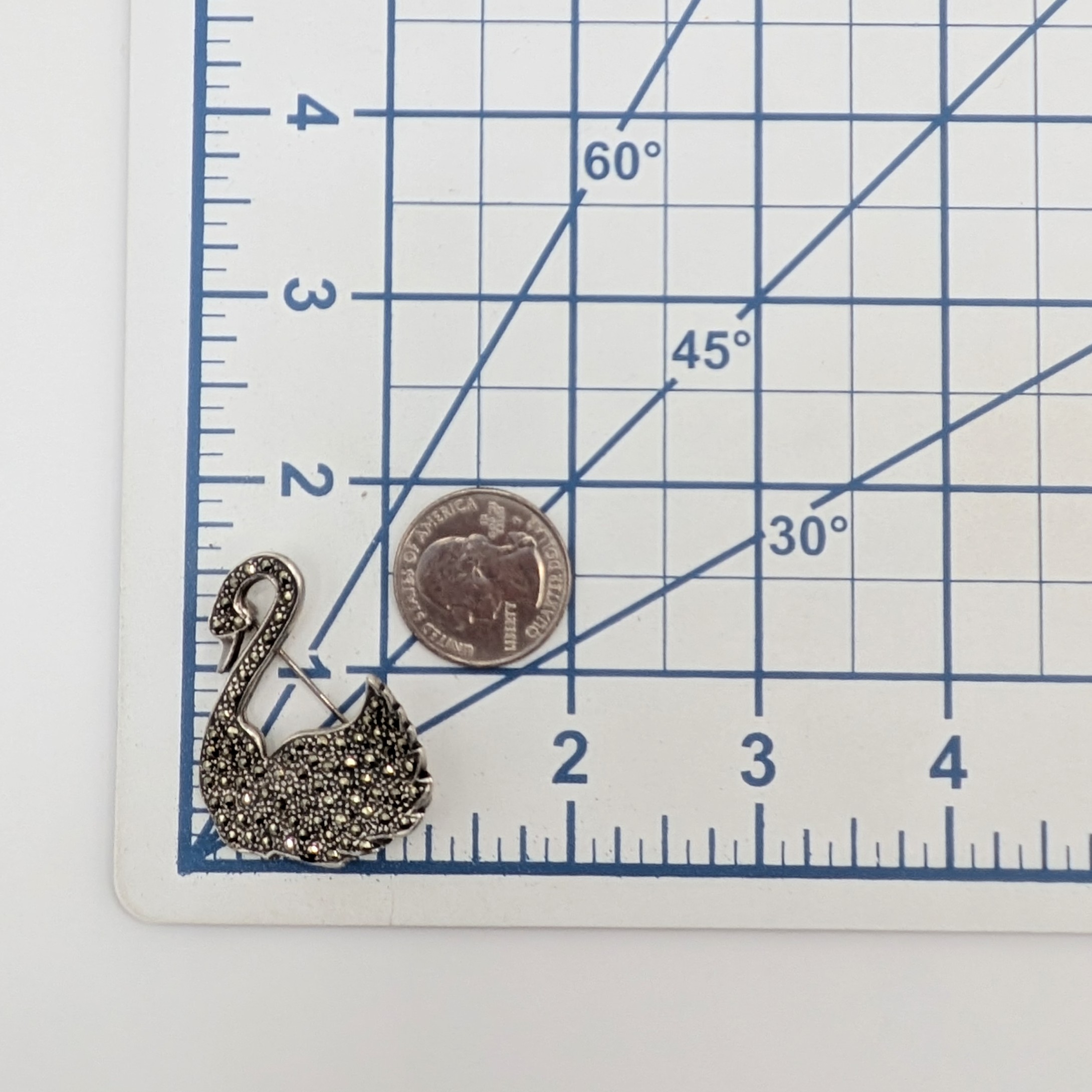 Signed Sterling Silver, Marcasite Pave Set Swan Brooch. Signed A 925. 11g