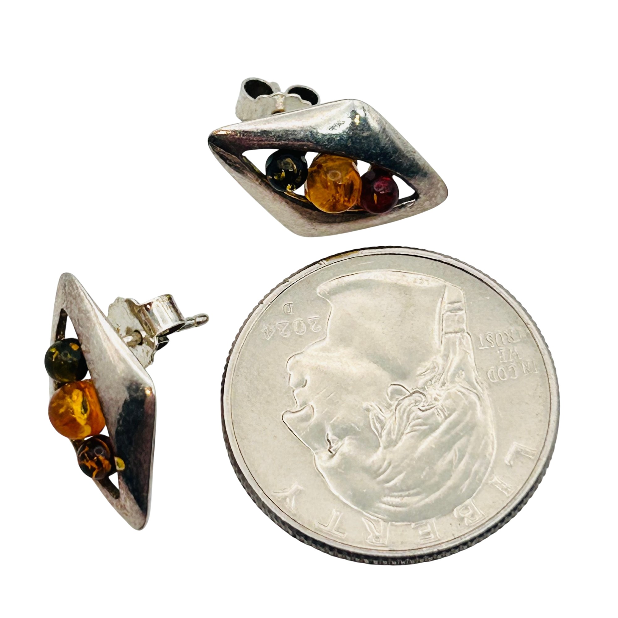 Sterling Amber stud earring. 2.70g