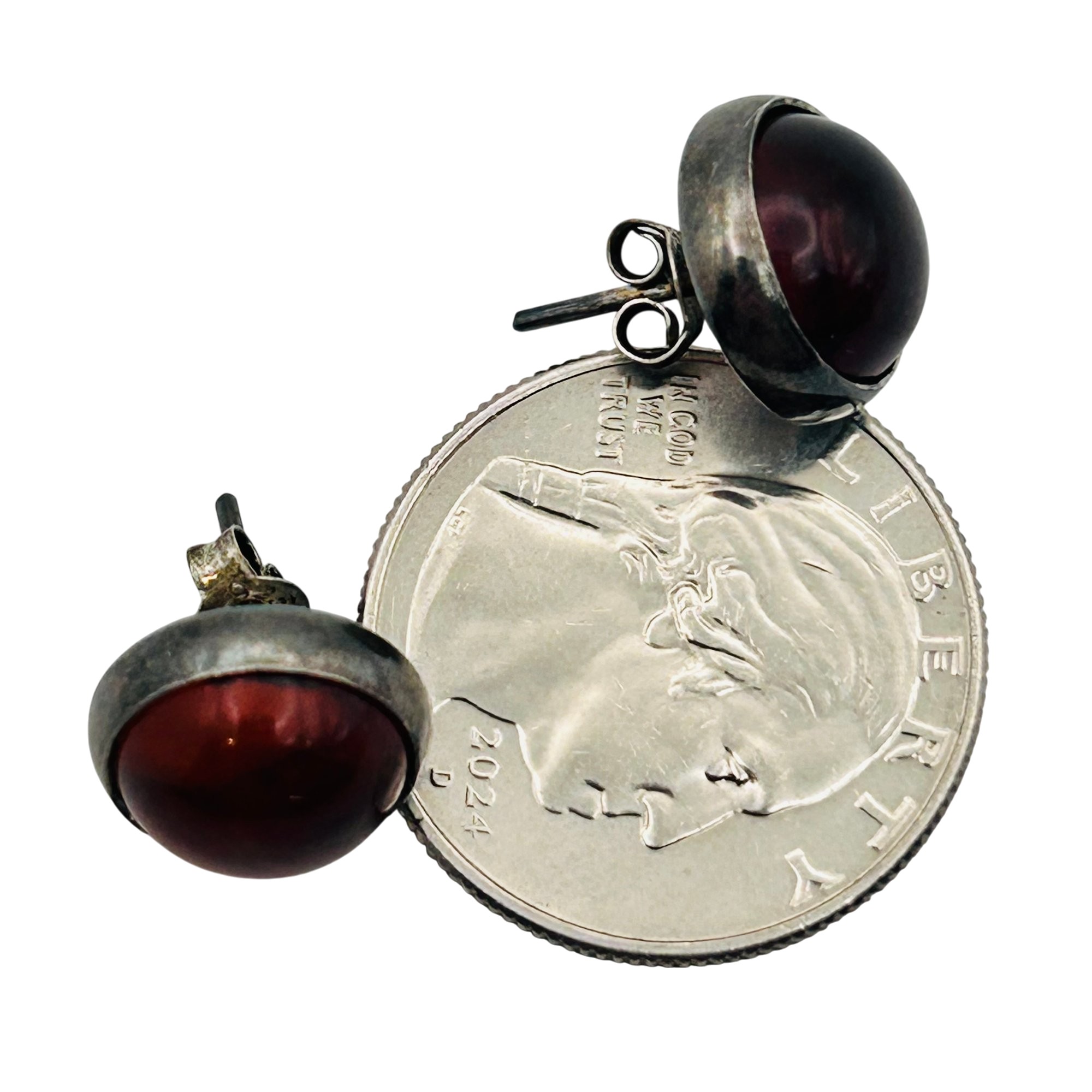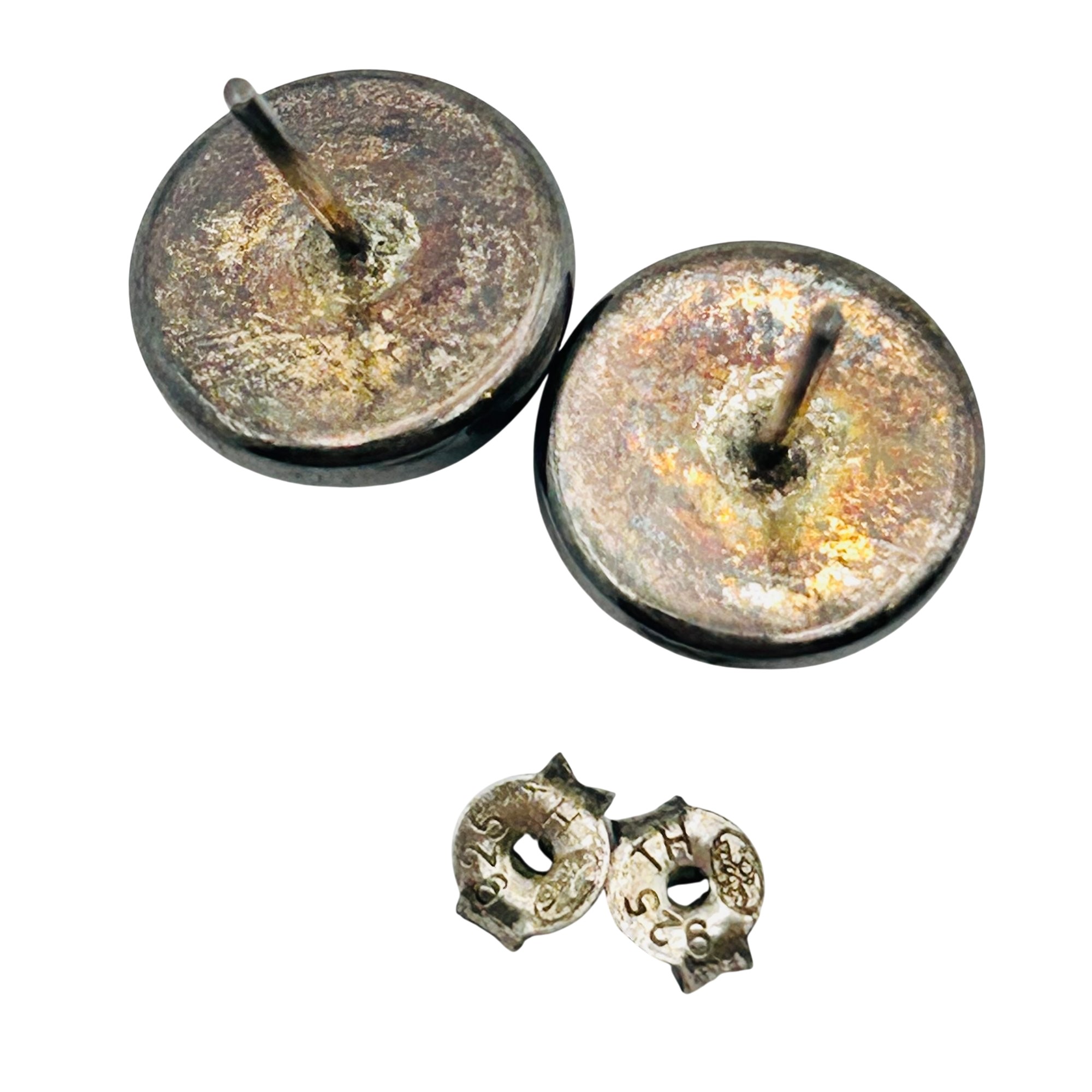 Sterling Amber round stud earrings. 2.90g