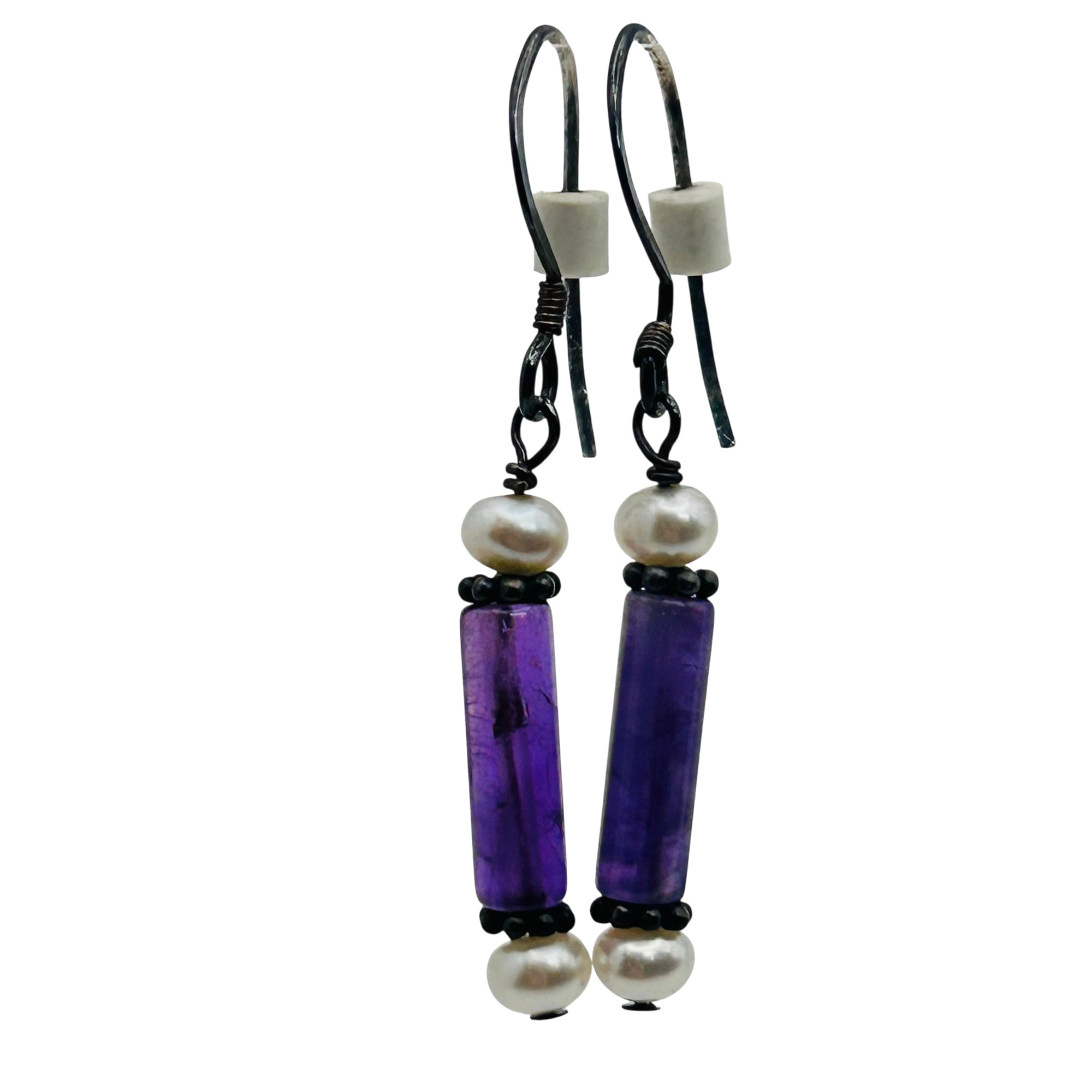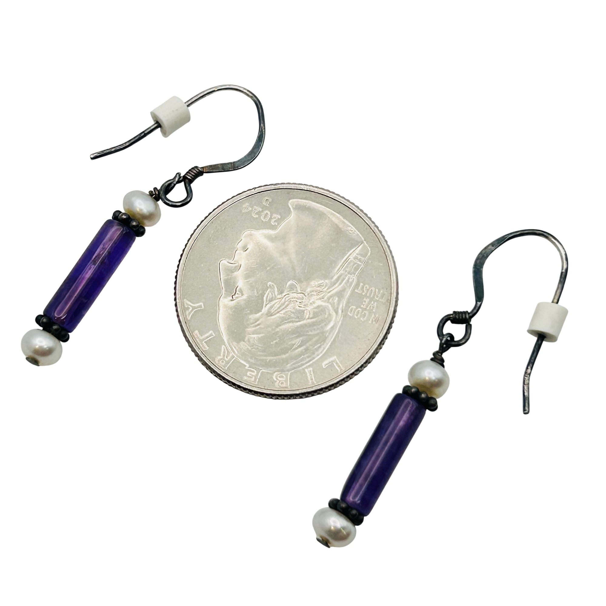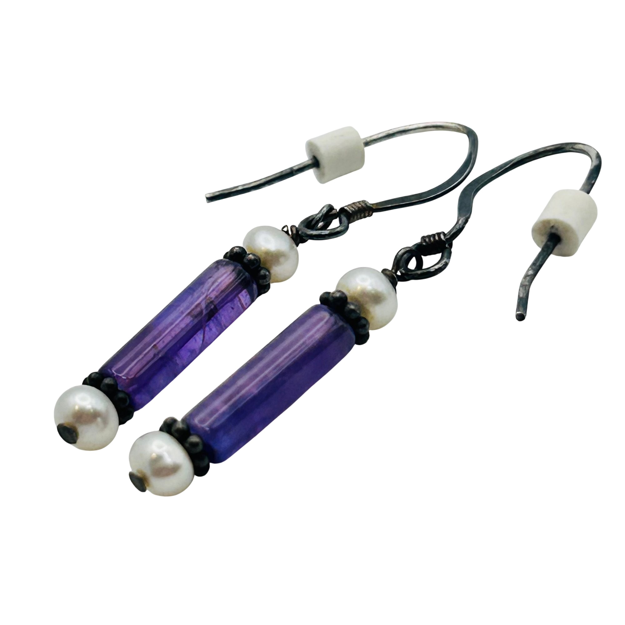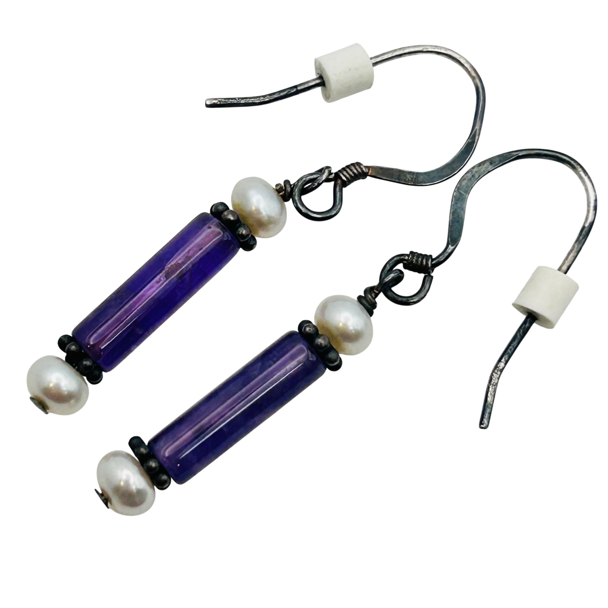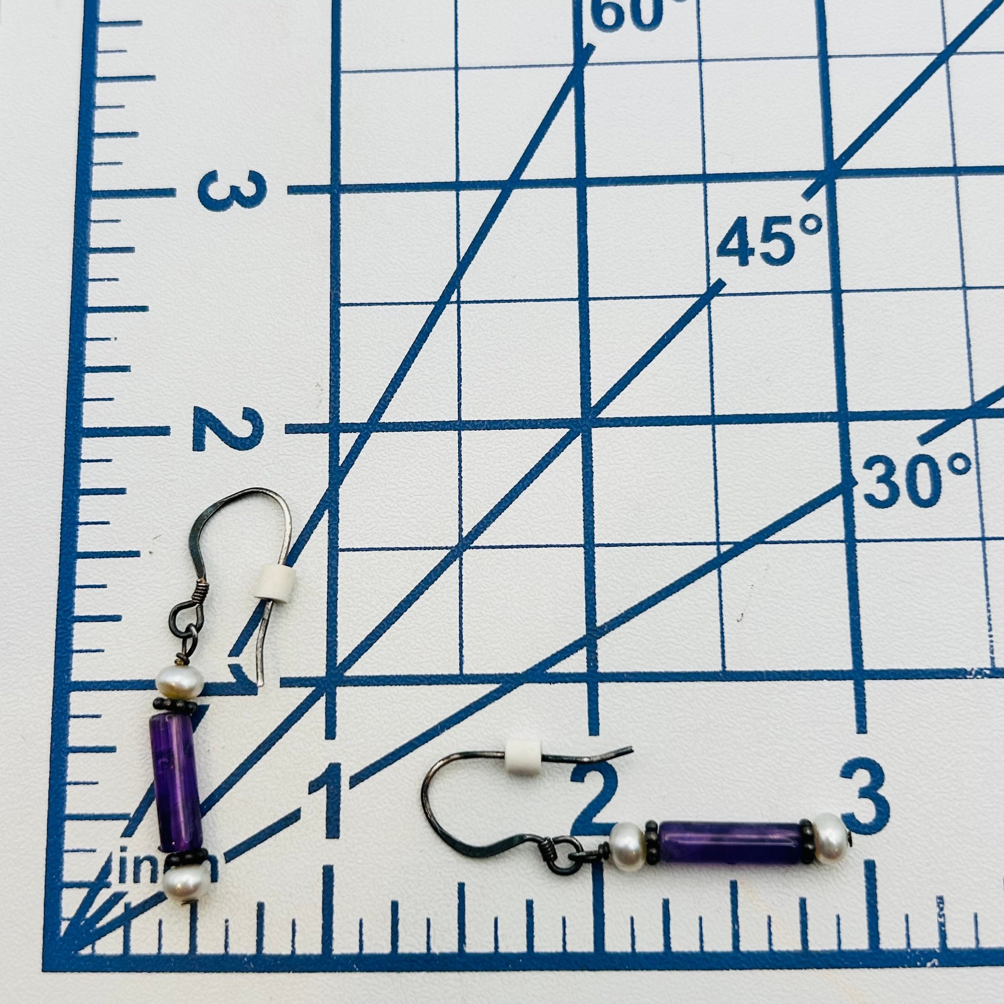 Sterling amethyst and pearl hook back earrings. 2.20g