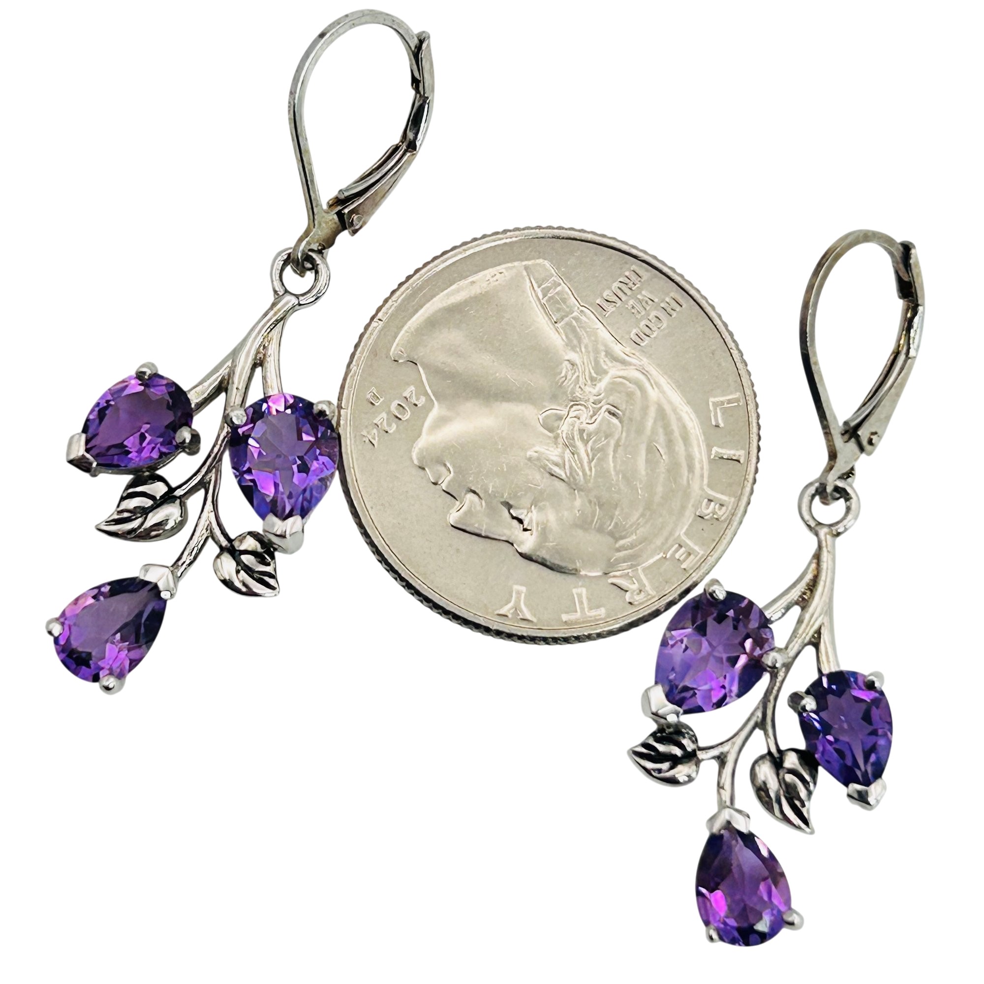 Sterling amethyst vine earrings. 5.00g
