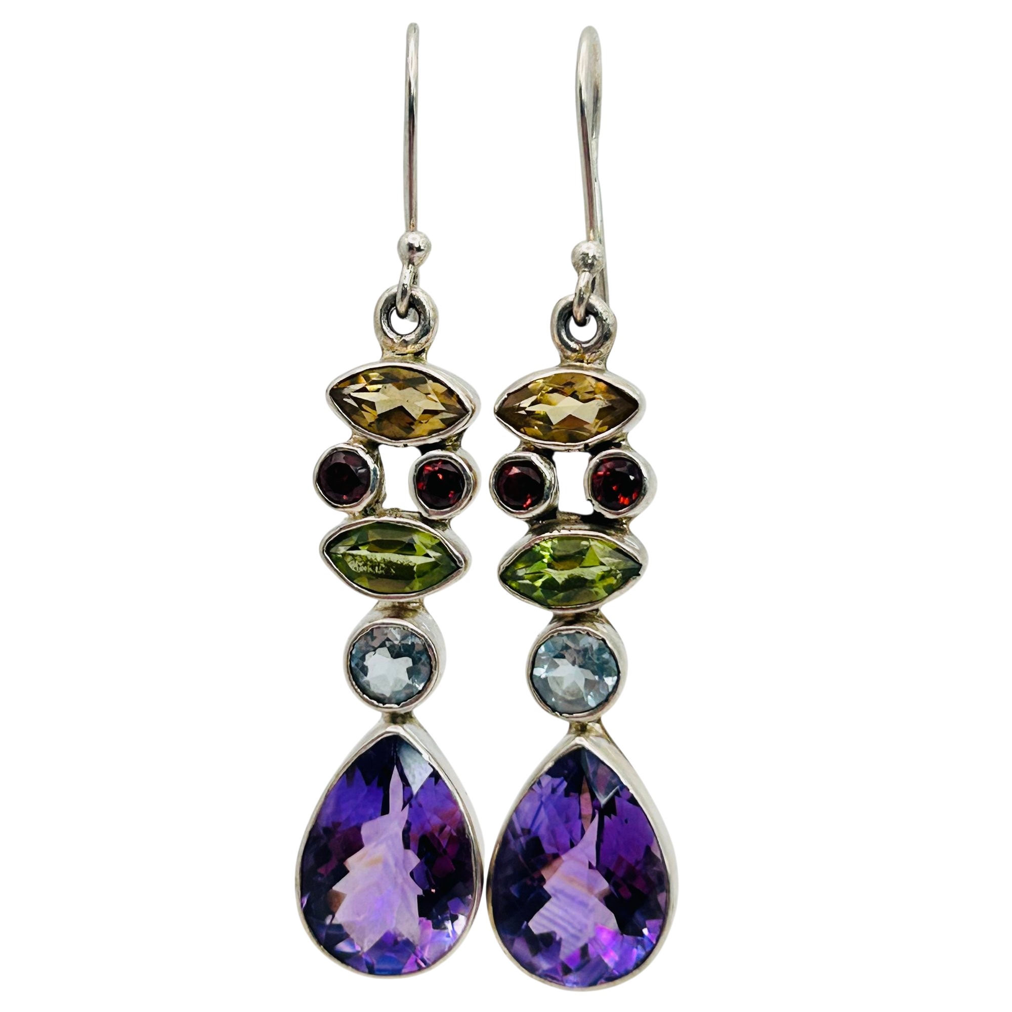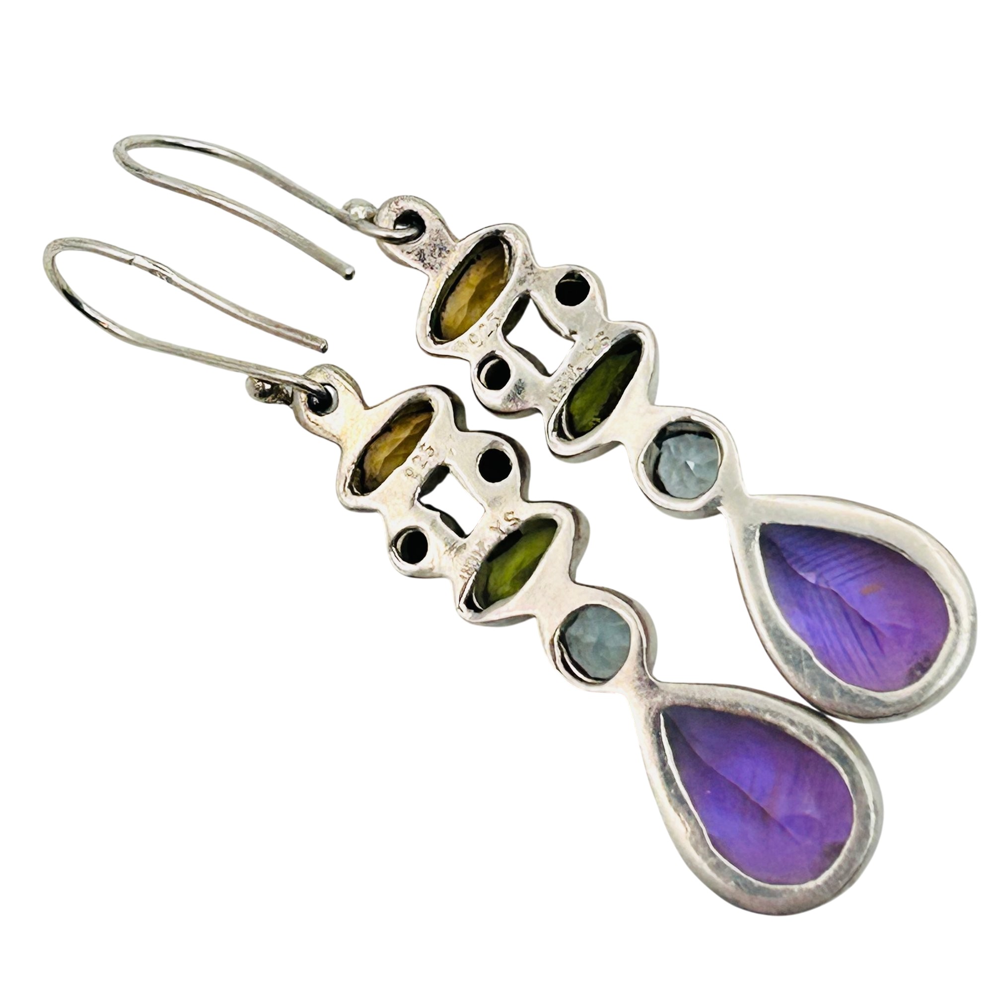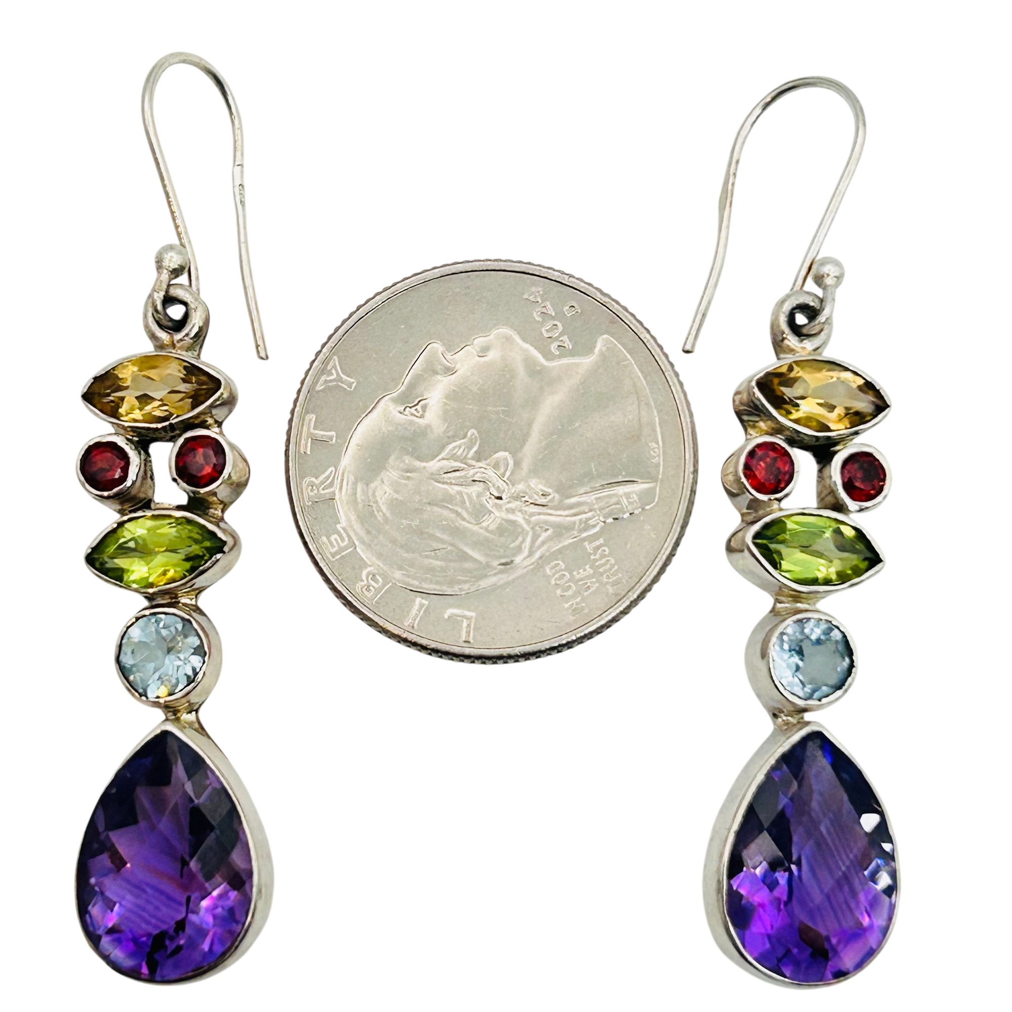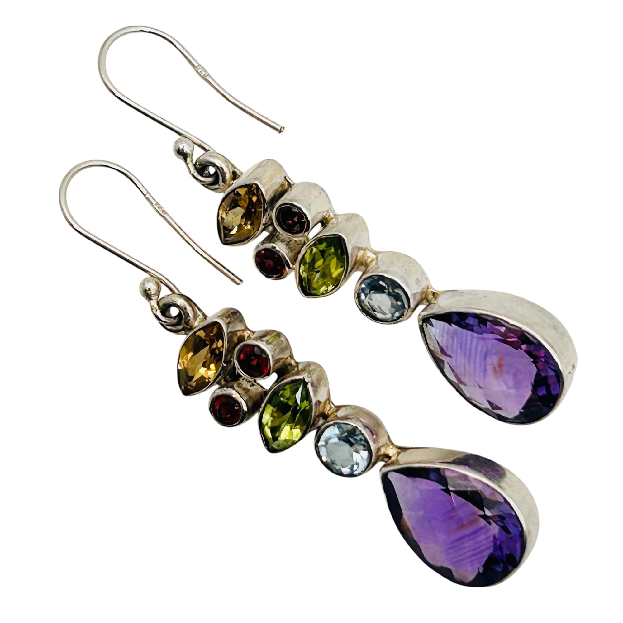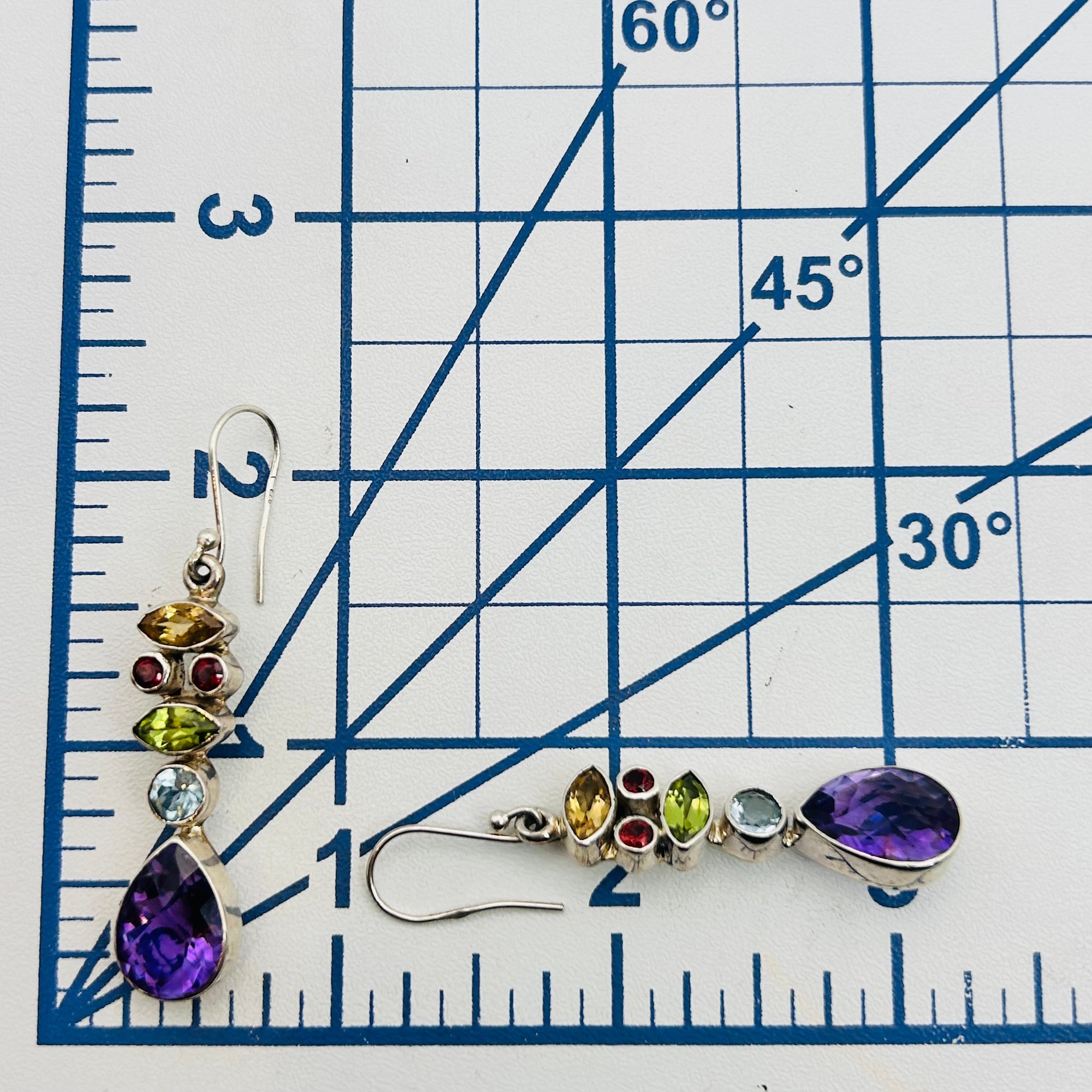 YS Sterling amethyst topaz peridot garnet citrine hook back earrings. 9.00g