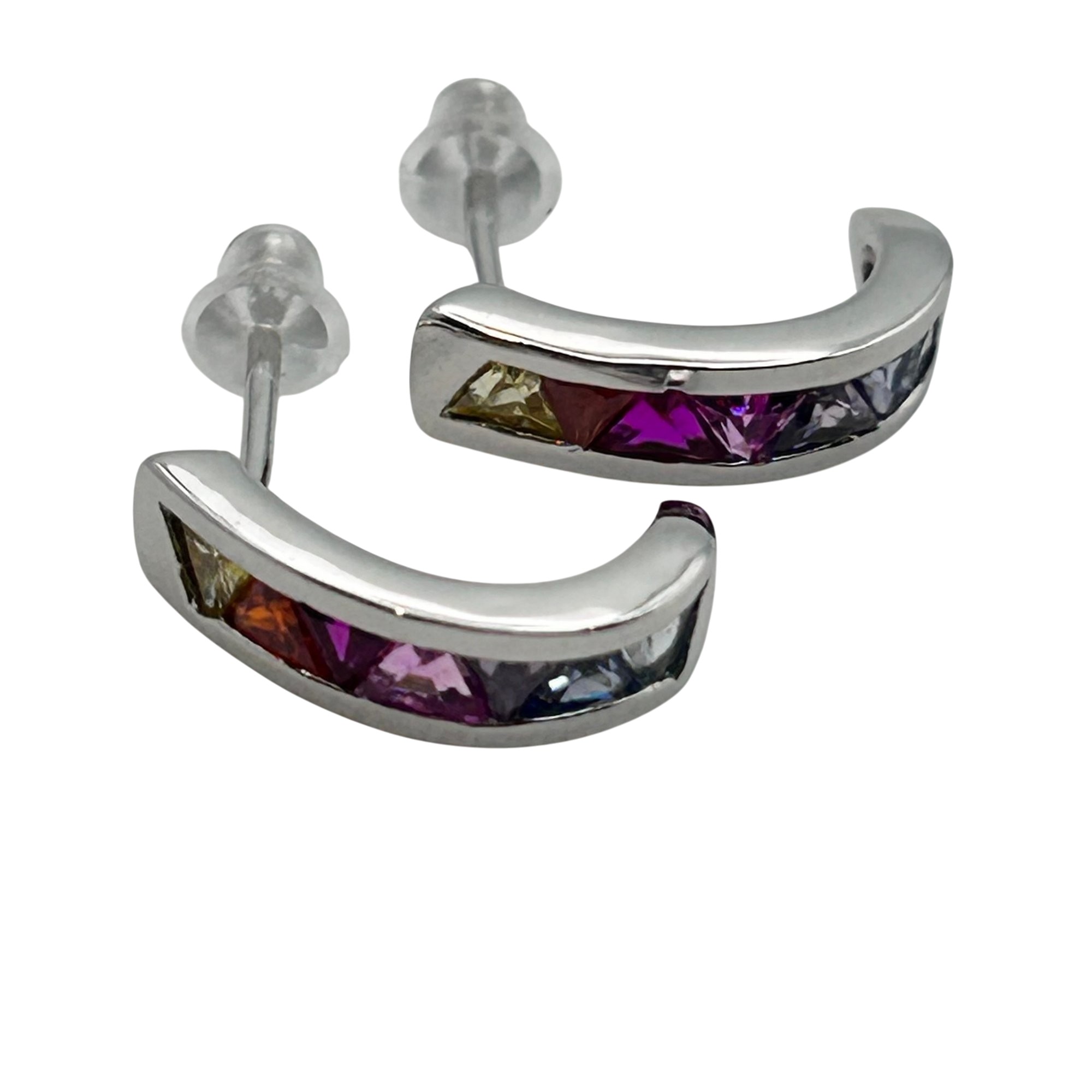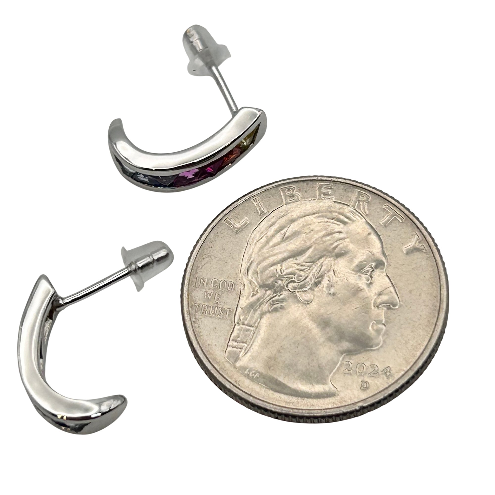 DW Sterling pink/blue topaz half hoop stud earrings. 2.20g