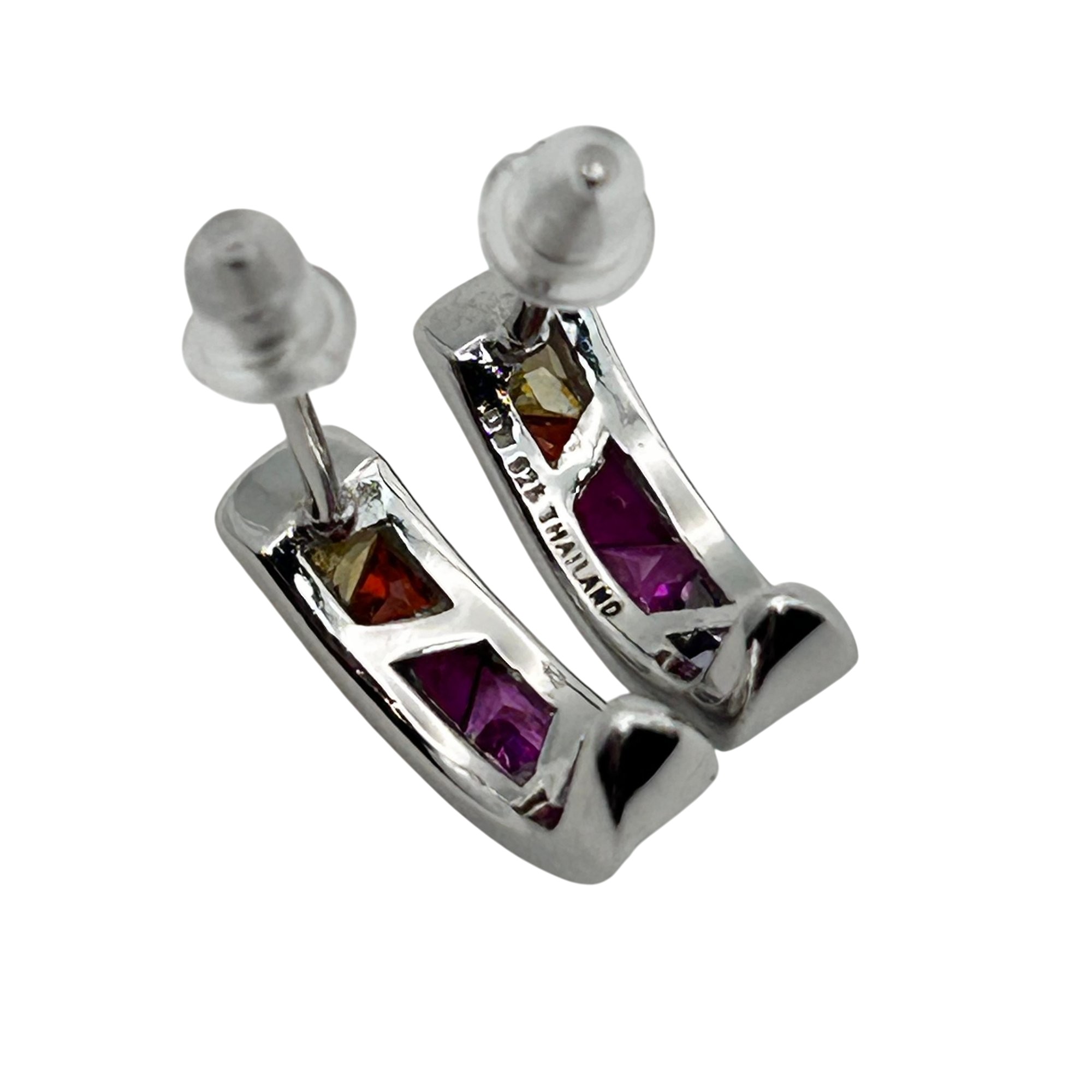 DW Sterling Pink/blue Topaz Half Hoop Stud Earrings