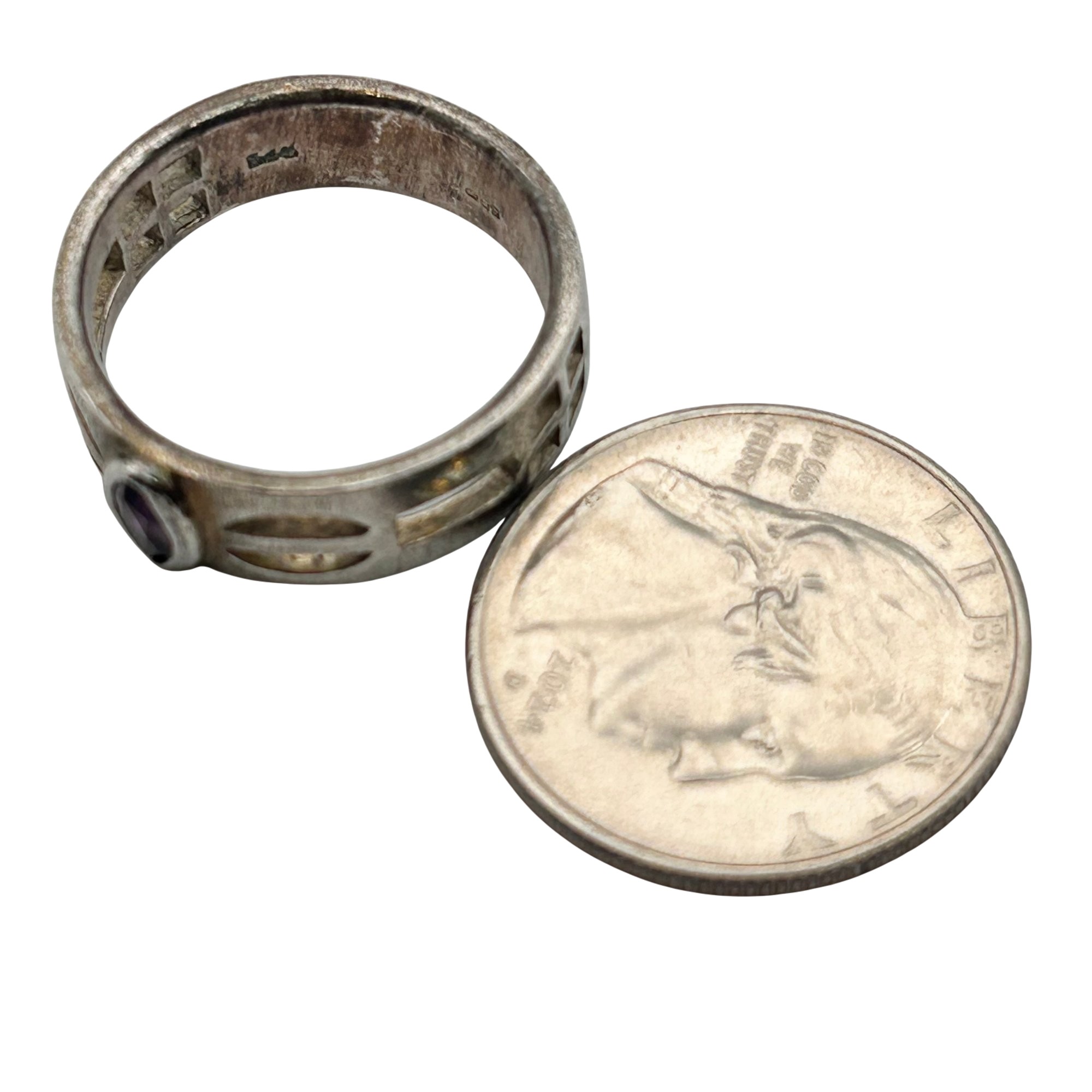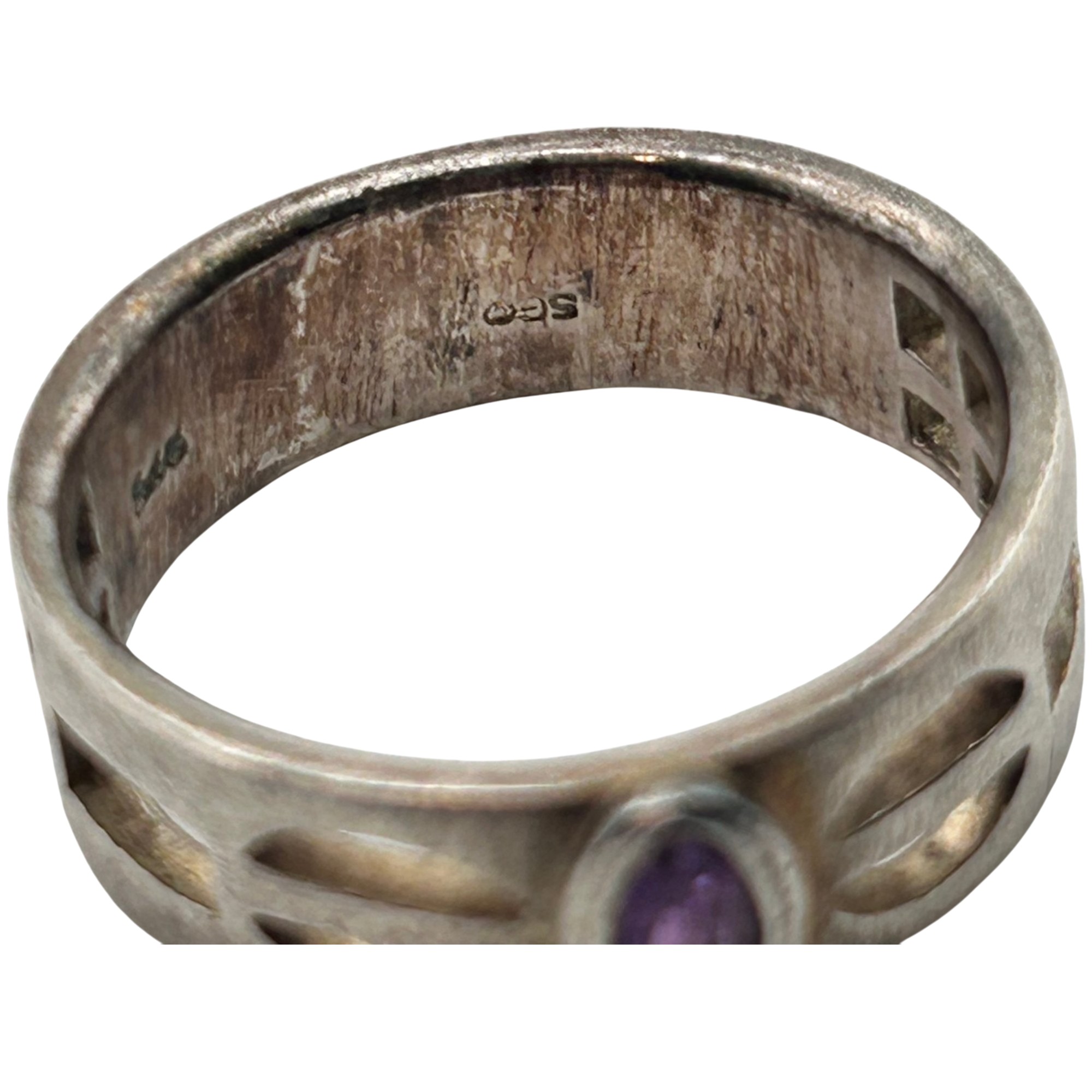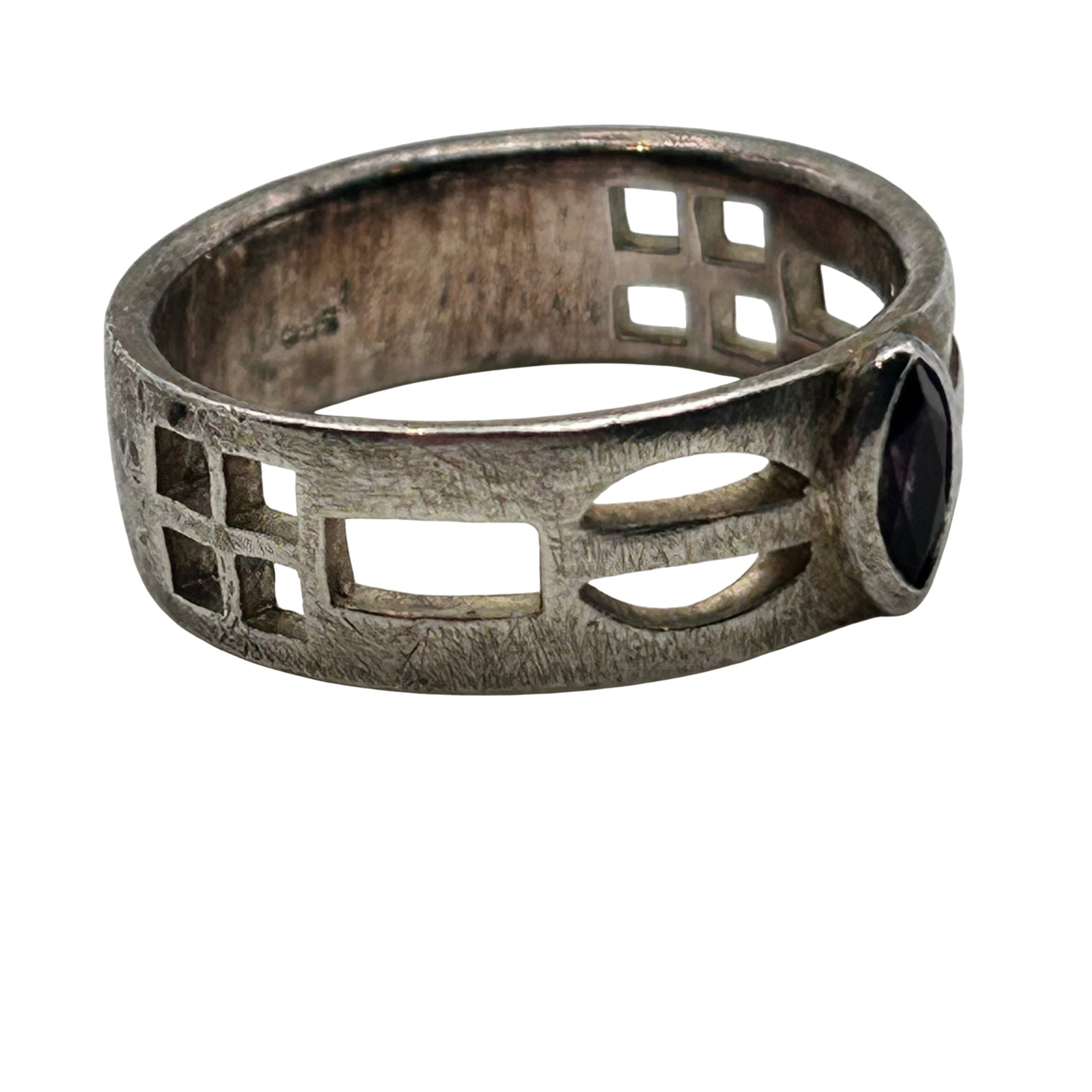 SGG sterling marquise amethyst shape cut out ring. Size 10. 6.60g