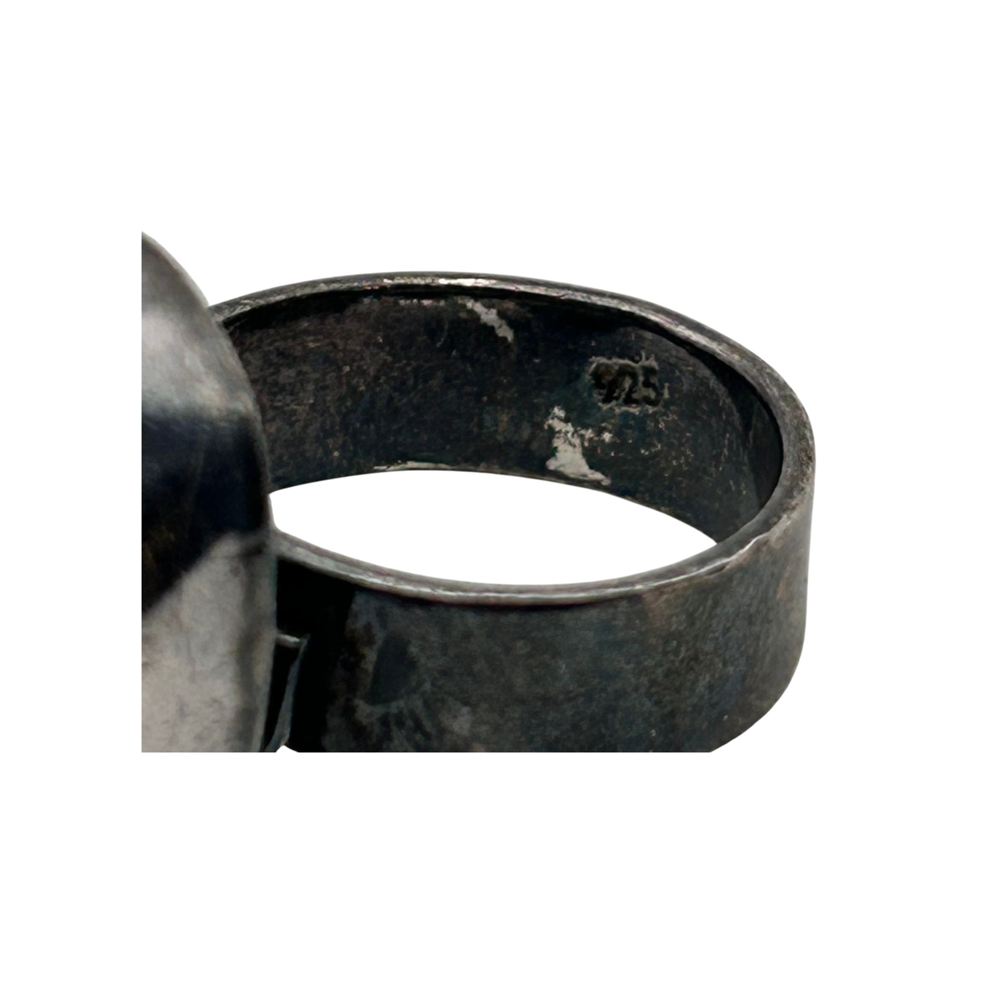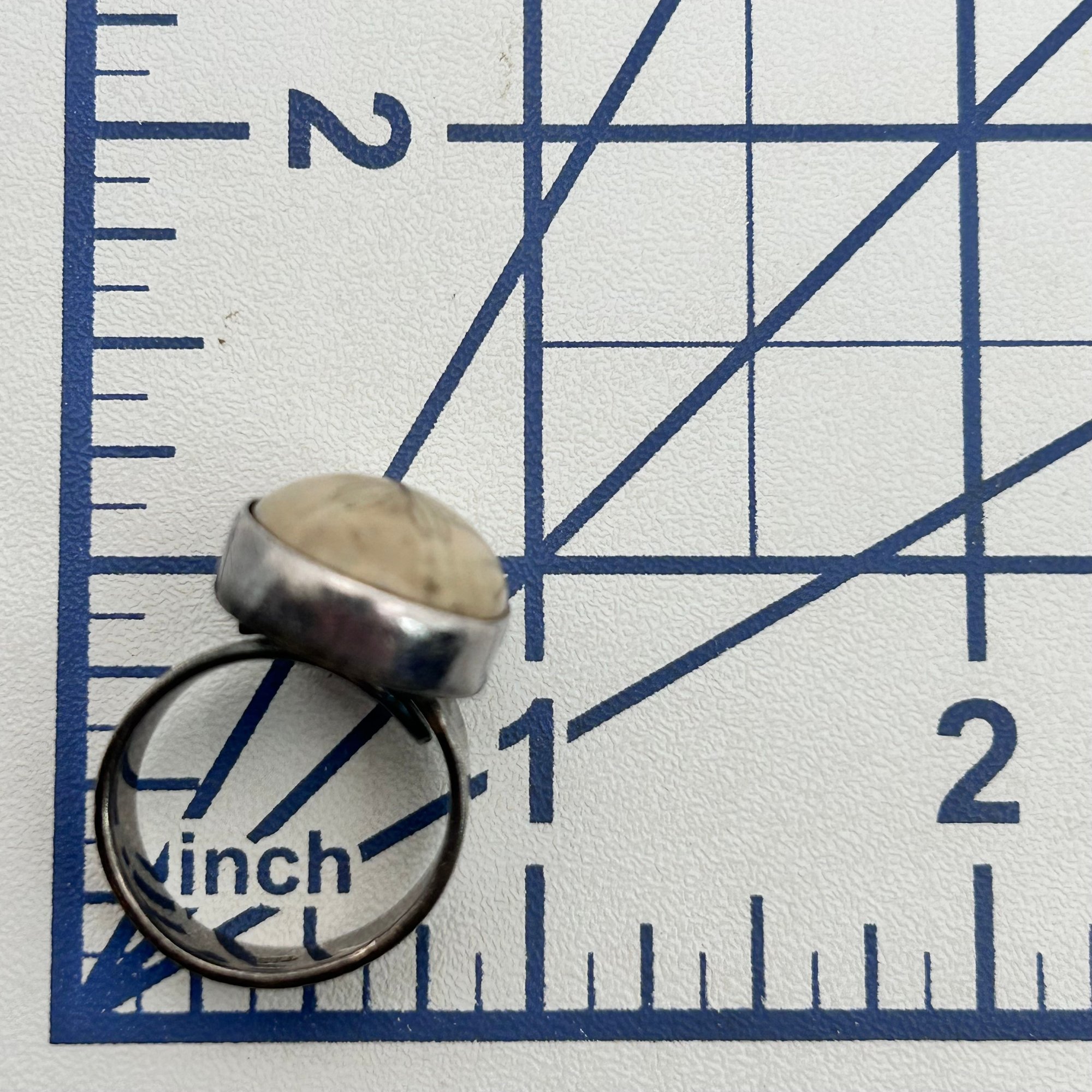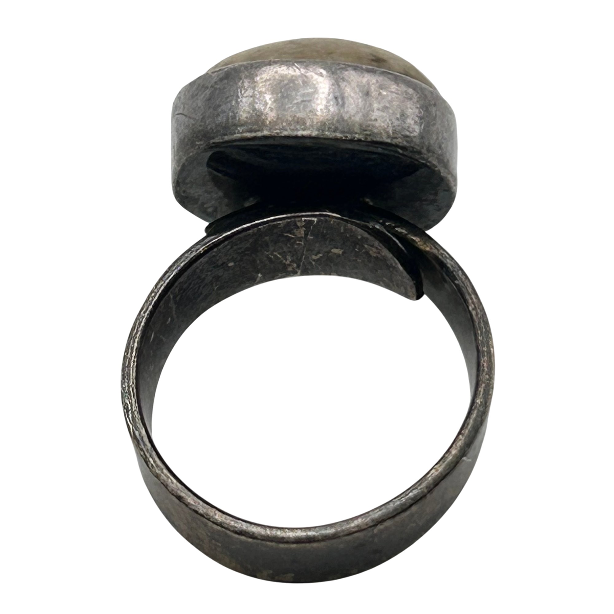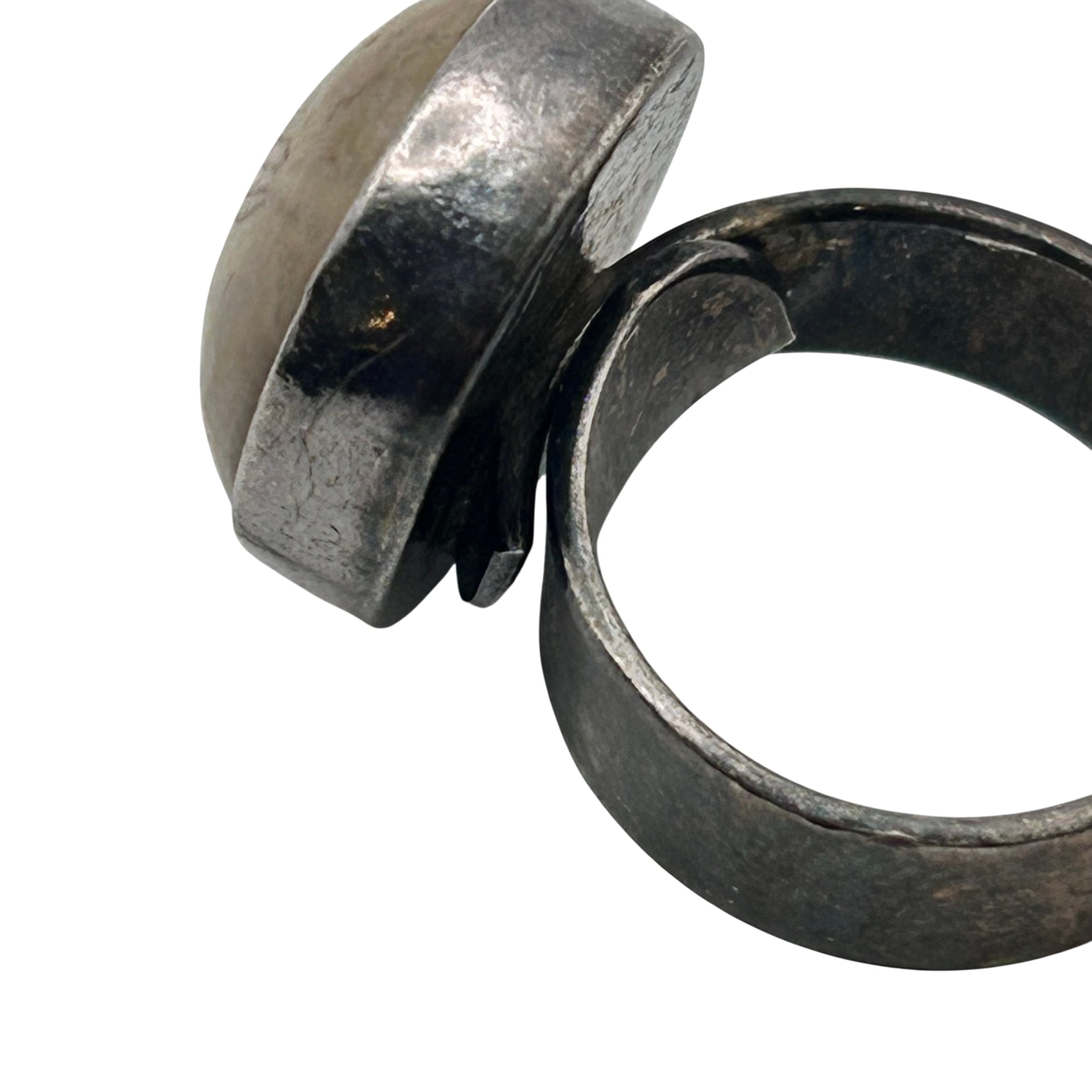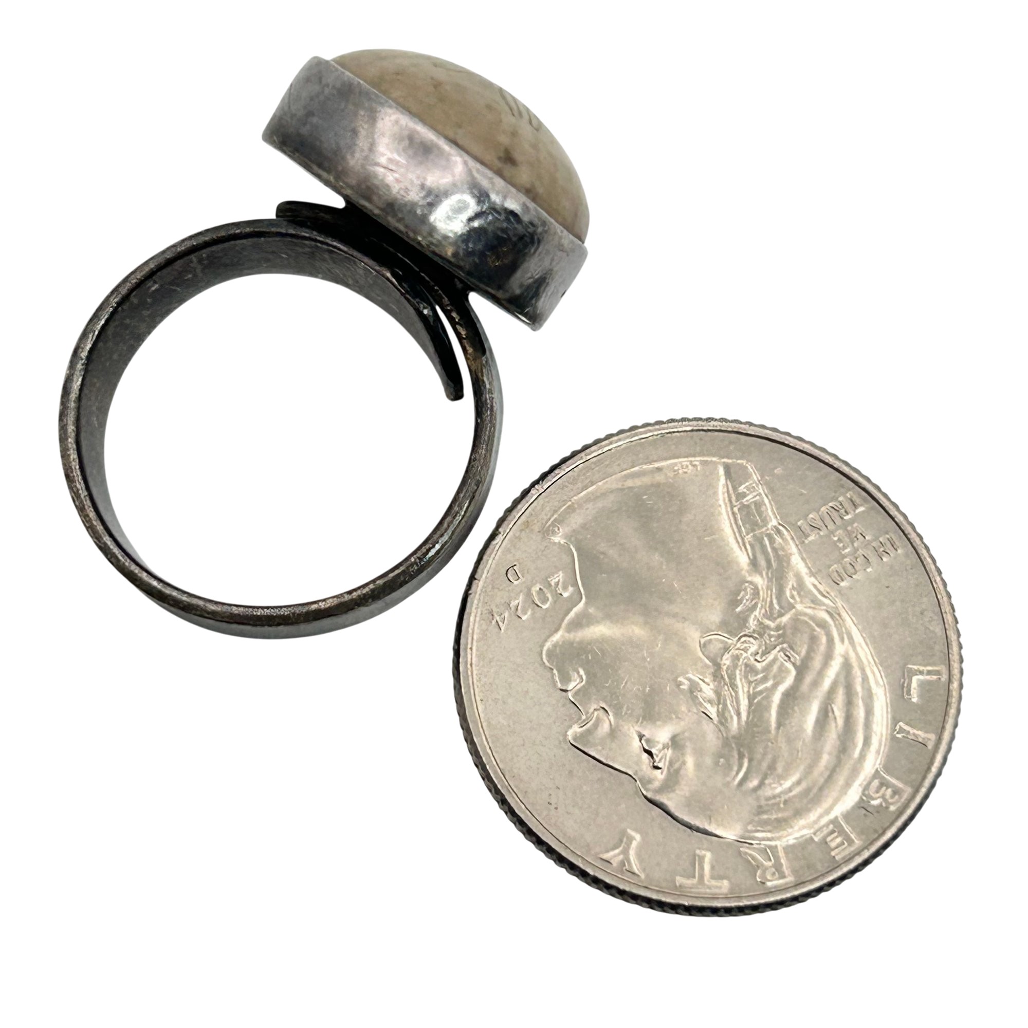 Sterling fossilized sand dollar adjustable ring. 10.00g
