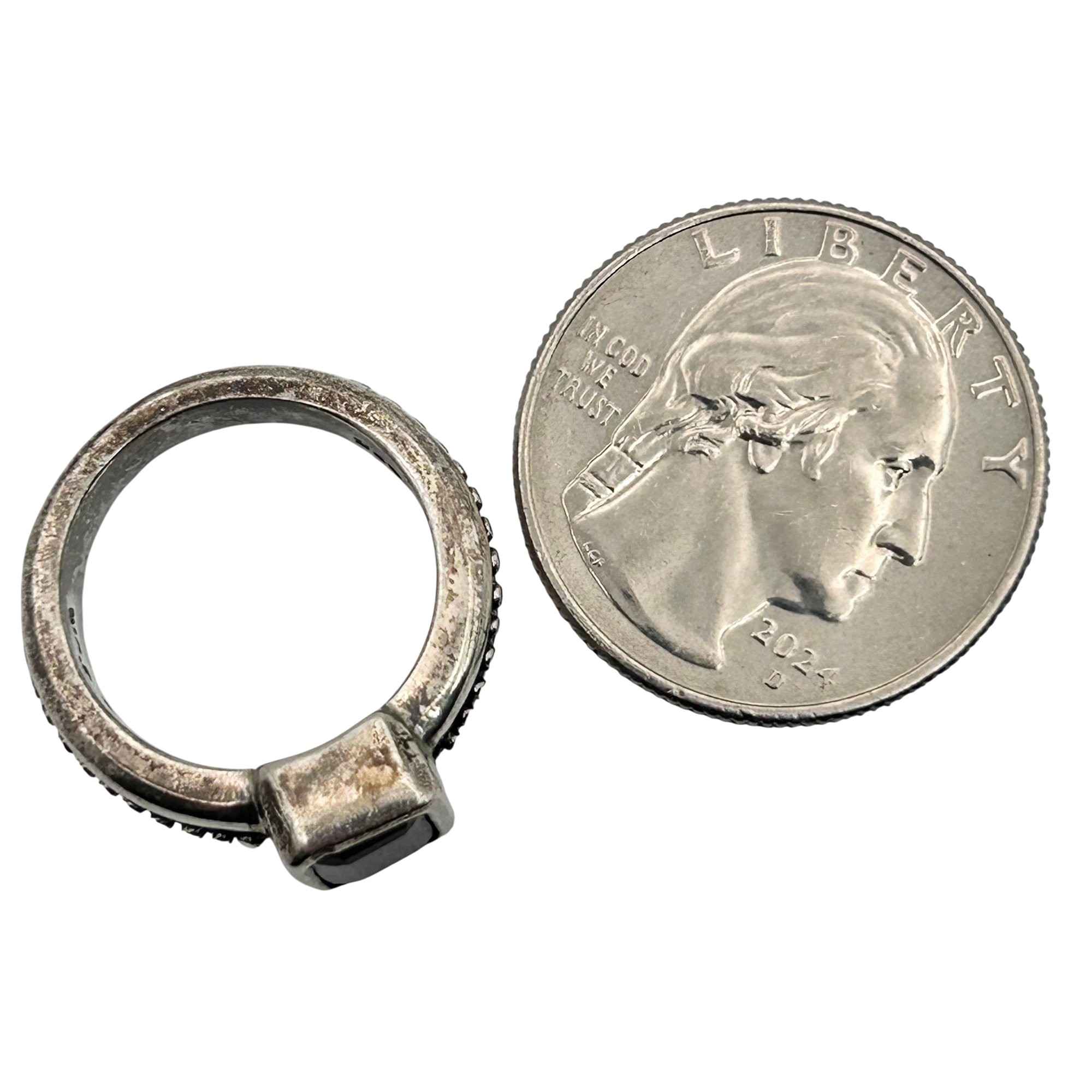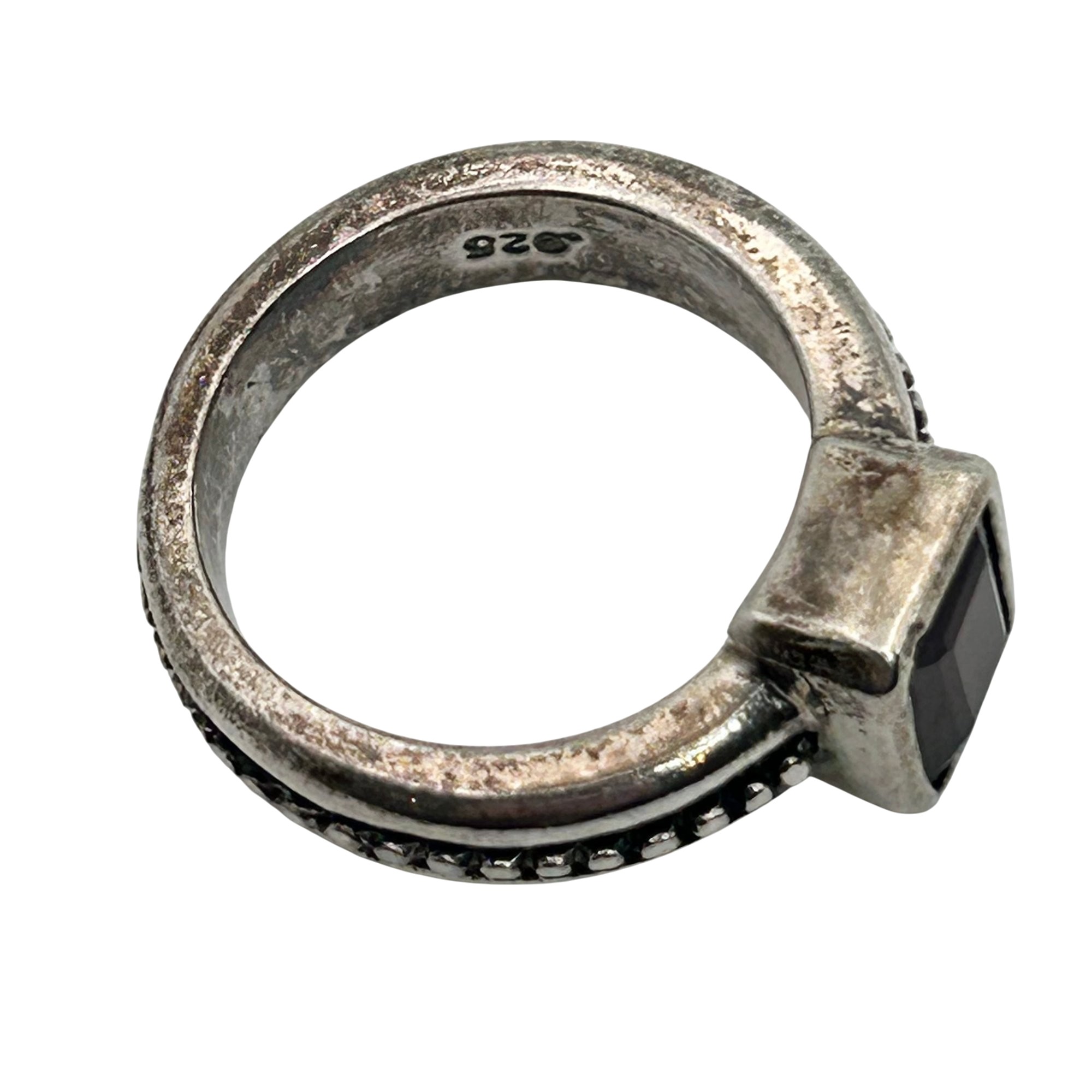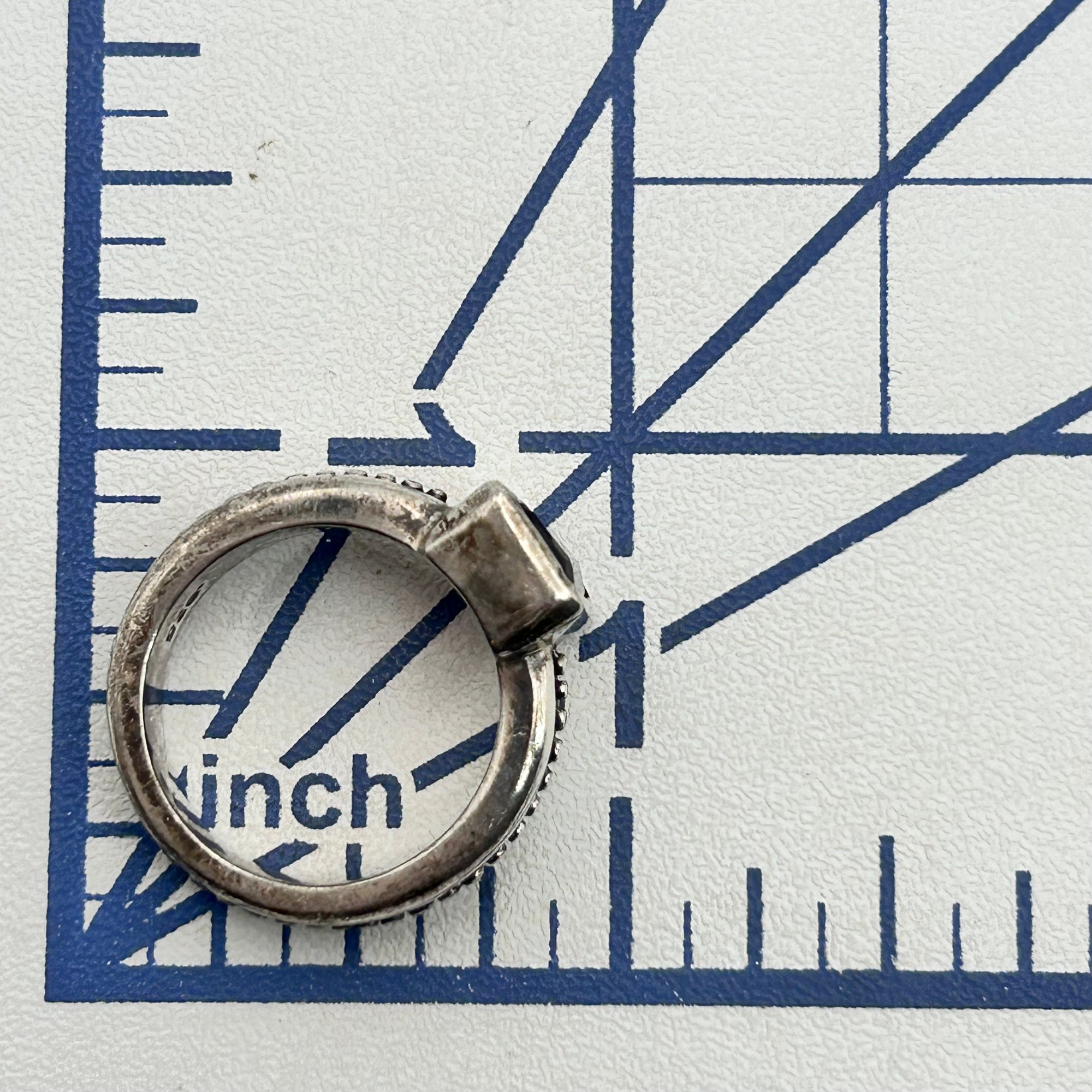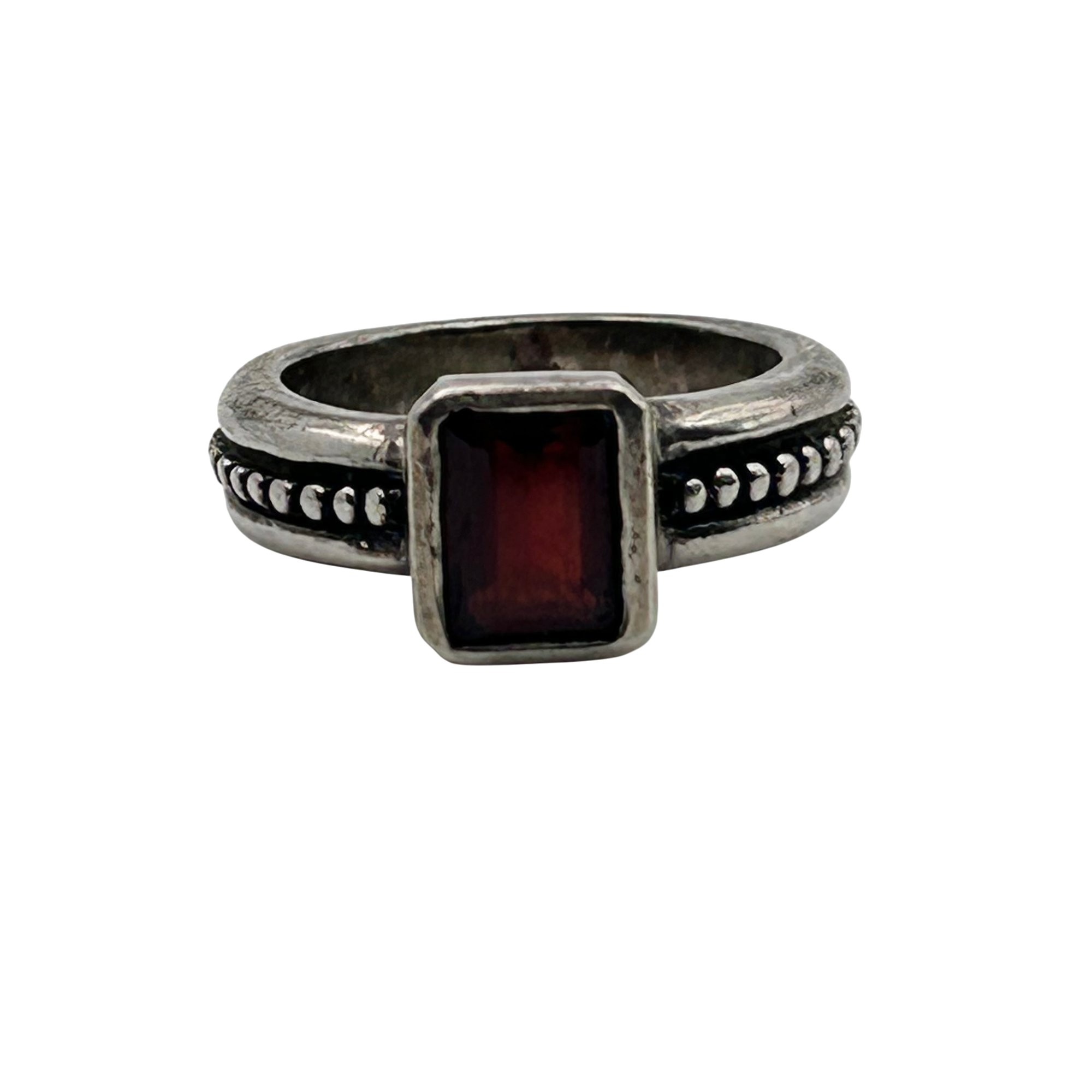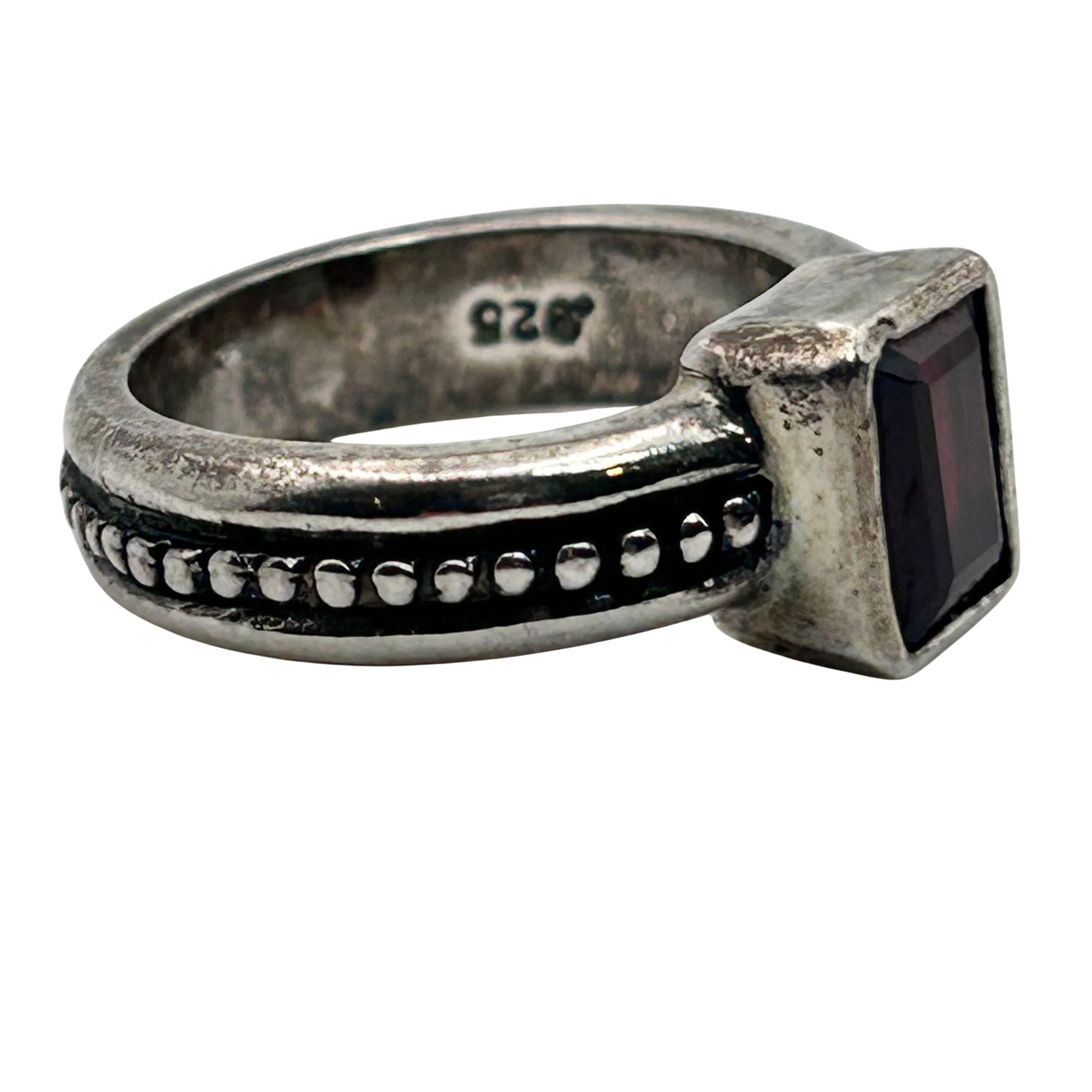 Sterling garnet studded band ring Signed. Size 6. 7.20g