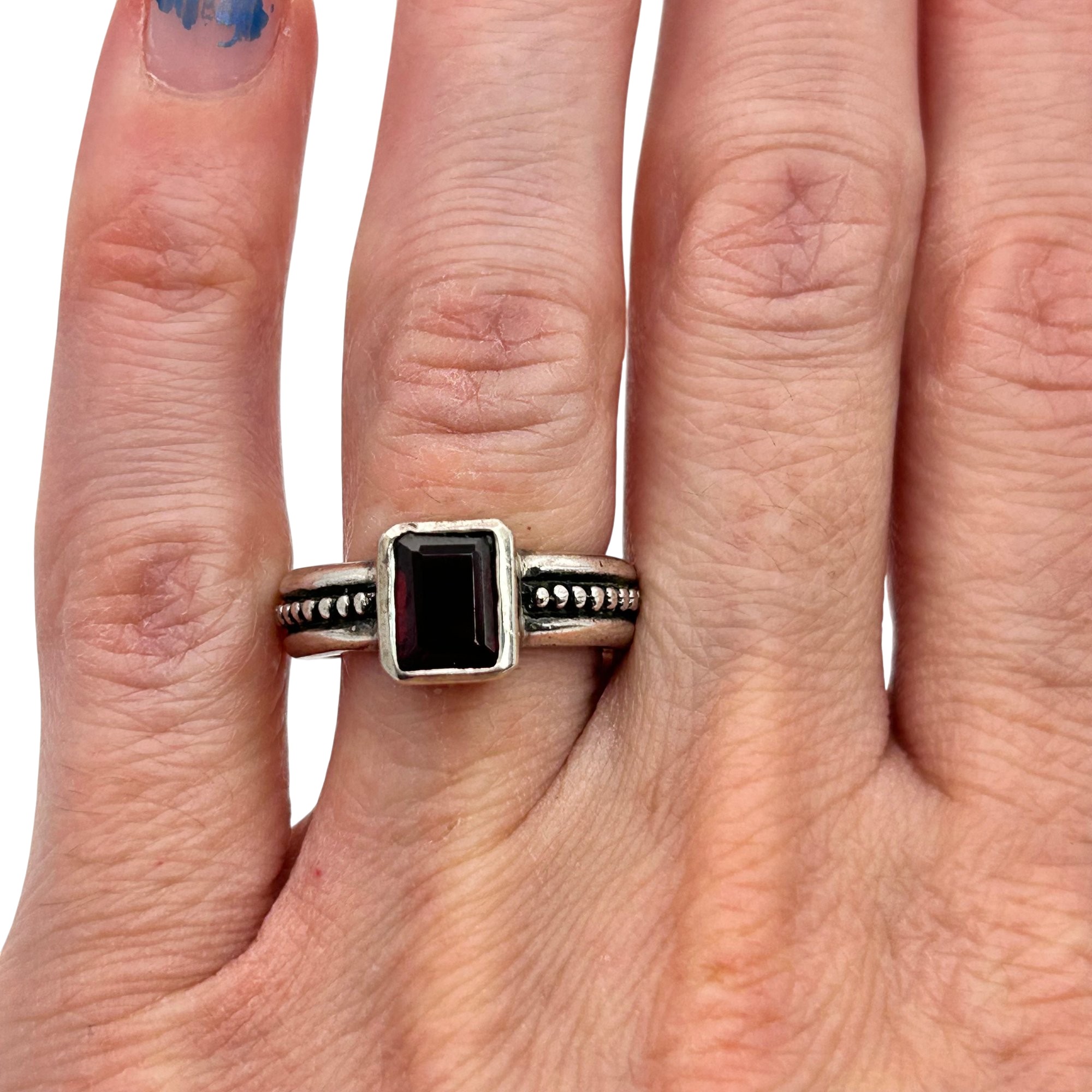 Sterling Garnet Studded Band Ring Signed. Size 6