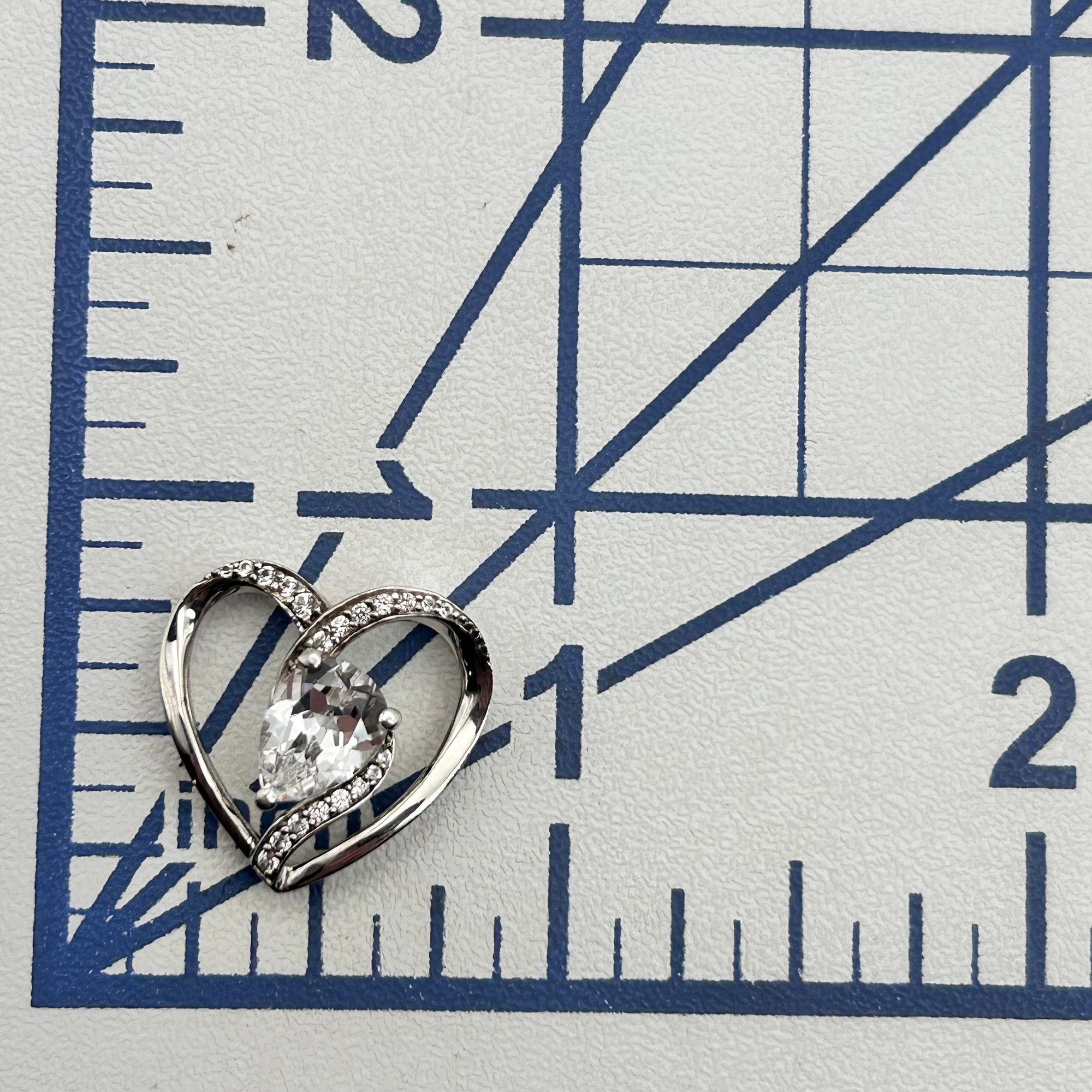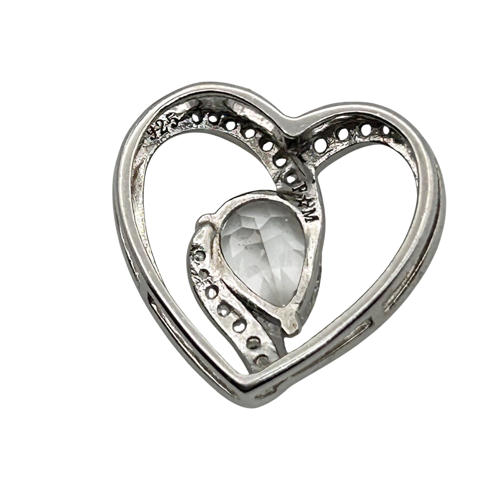 PM Sterling clear sapphire heart pendant. 1.80g