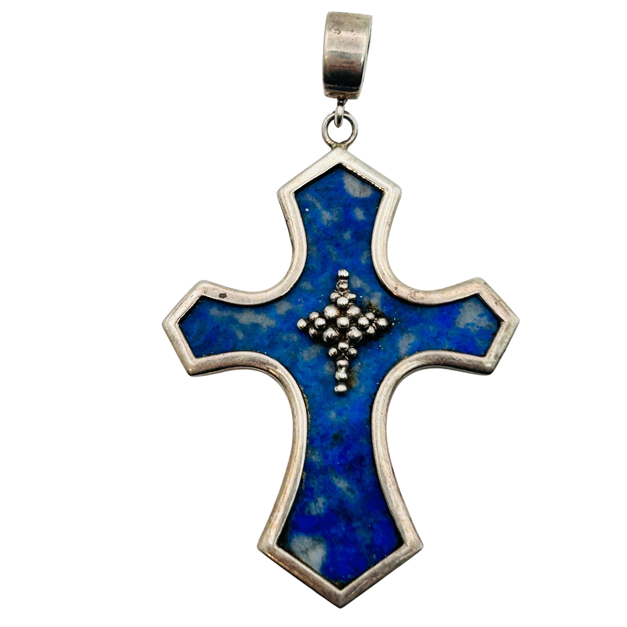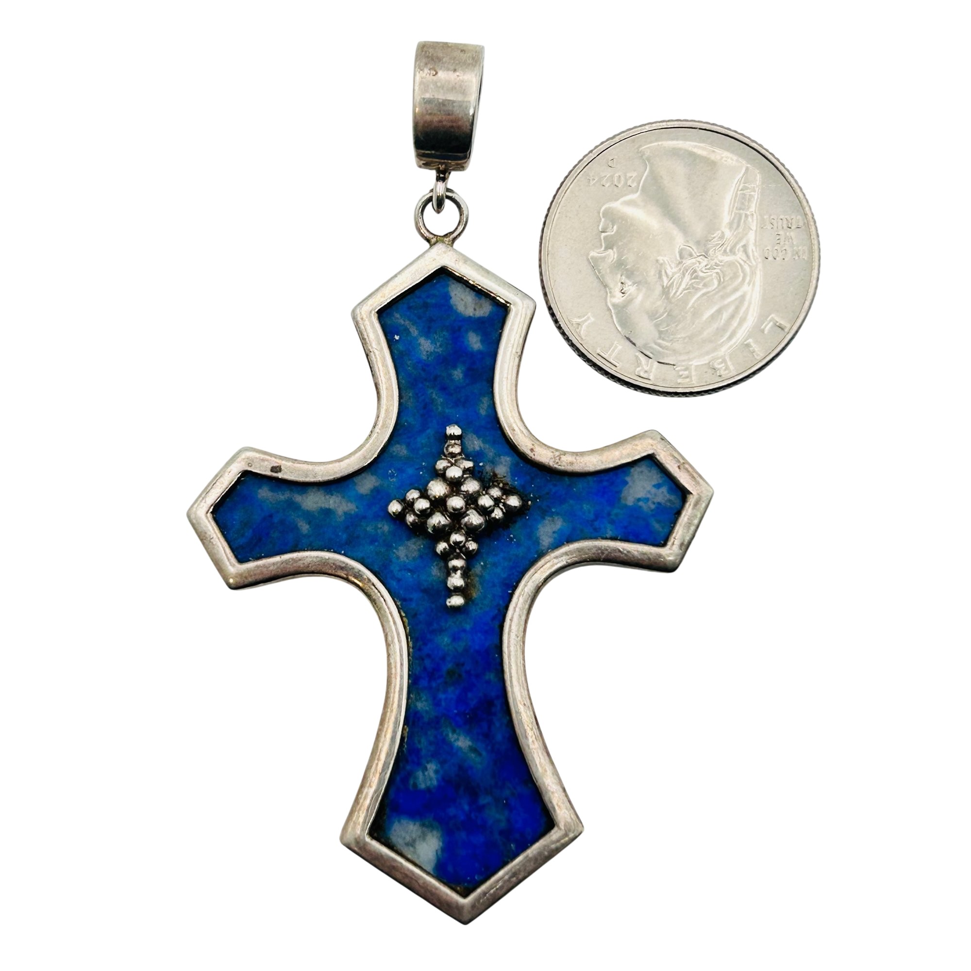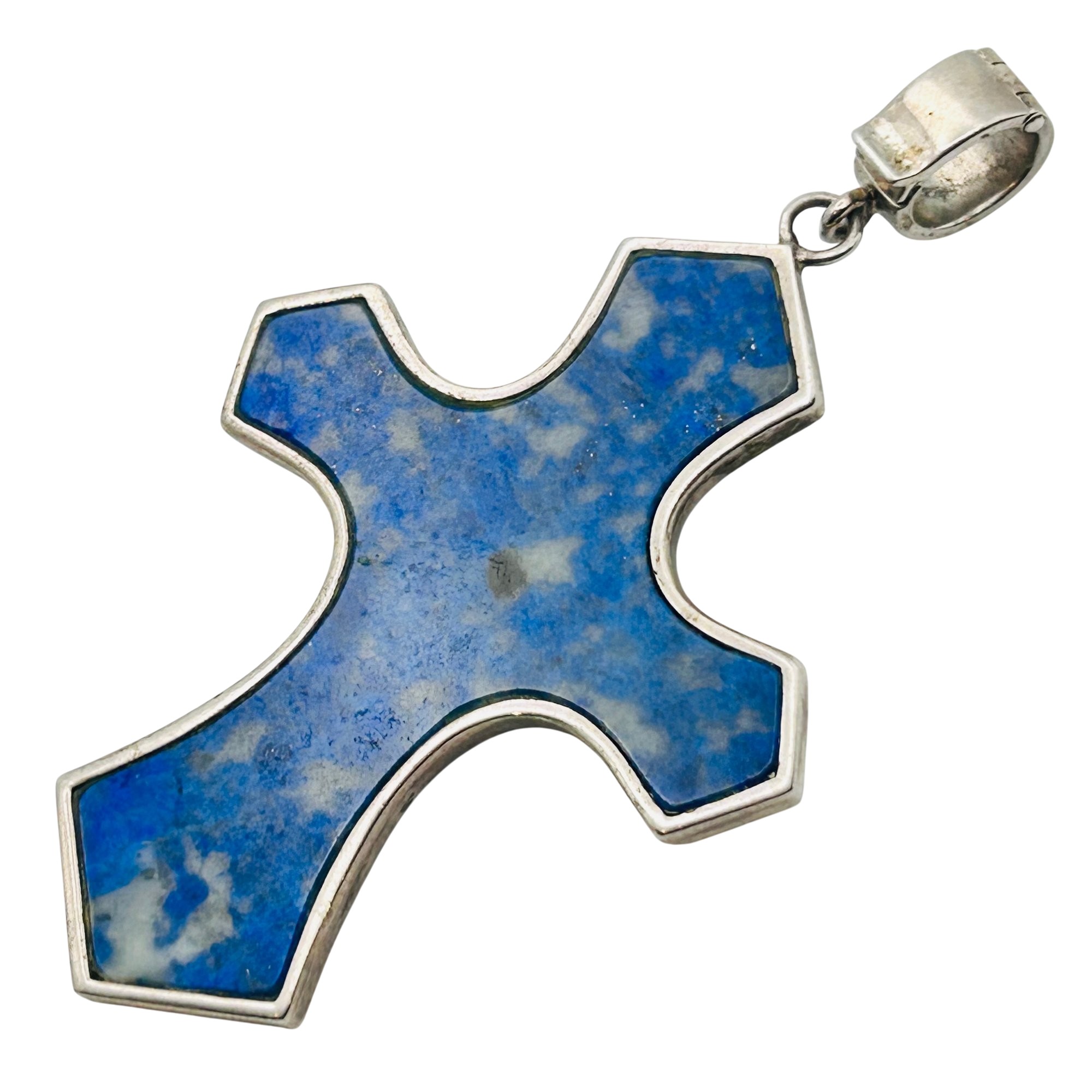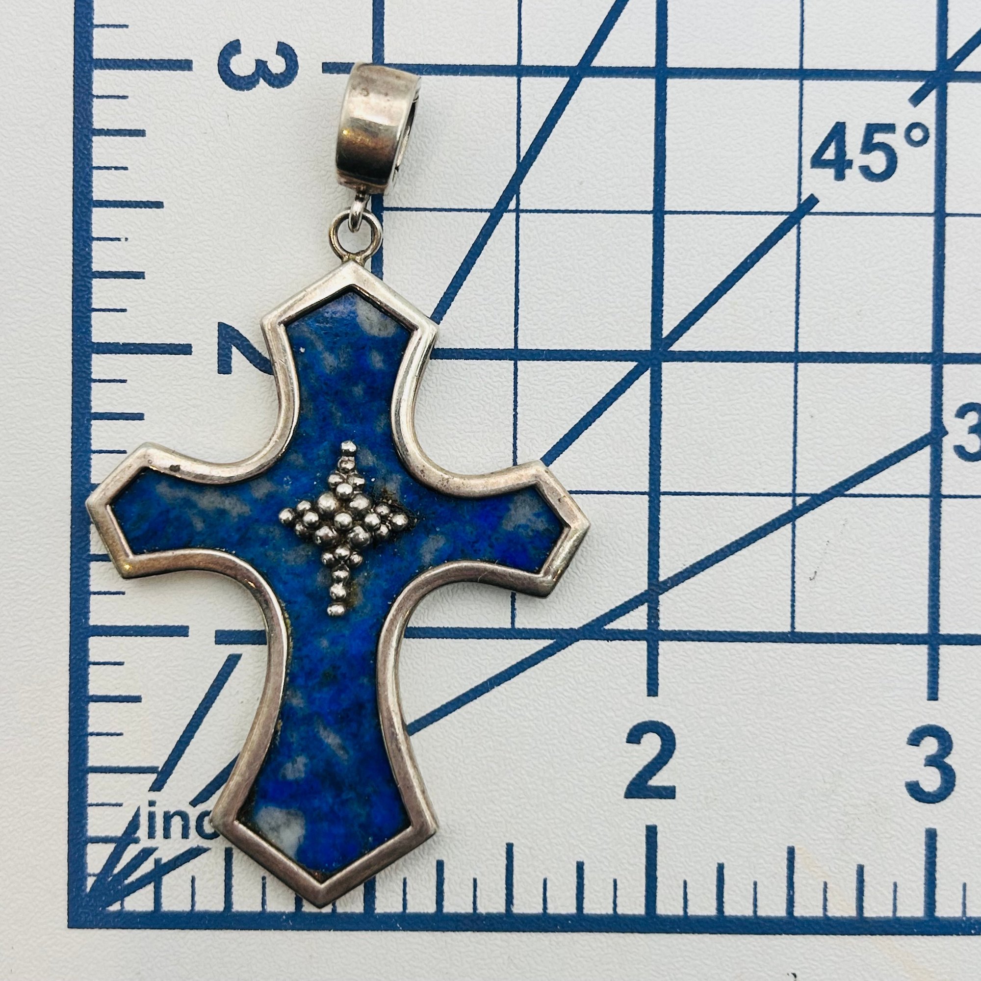 WJ Sterling lapis lazuli cross pendant. 16.90g