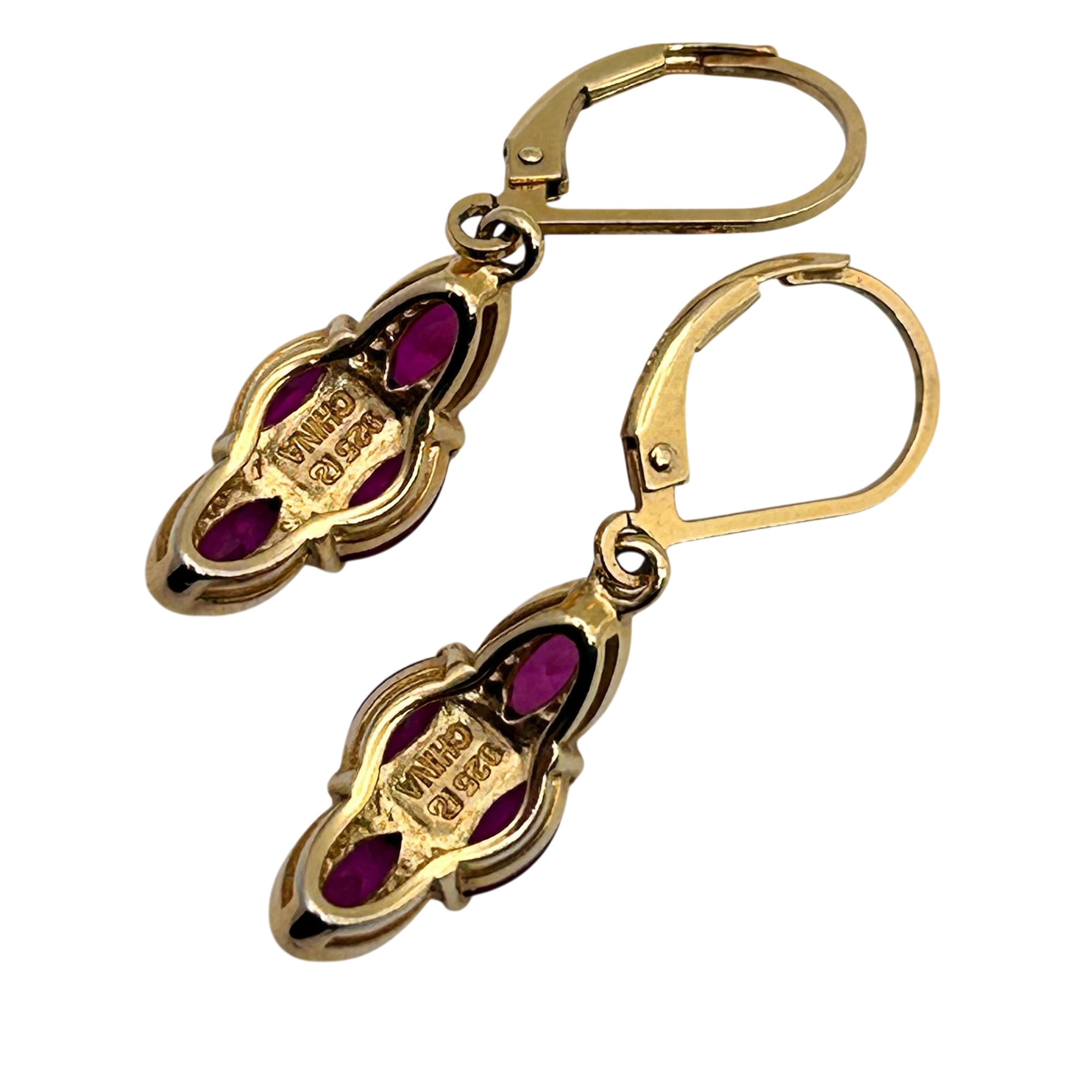 Sterling ruby lever back earrings. 3.70g