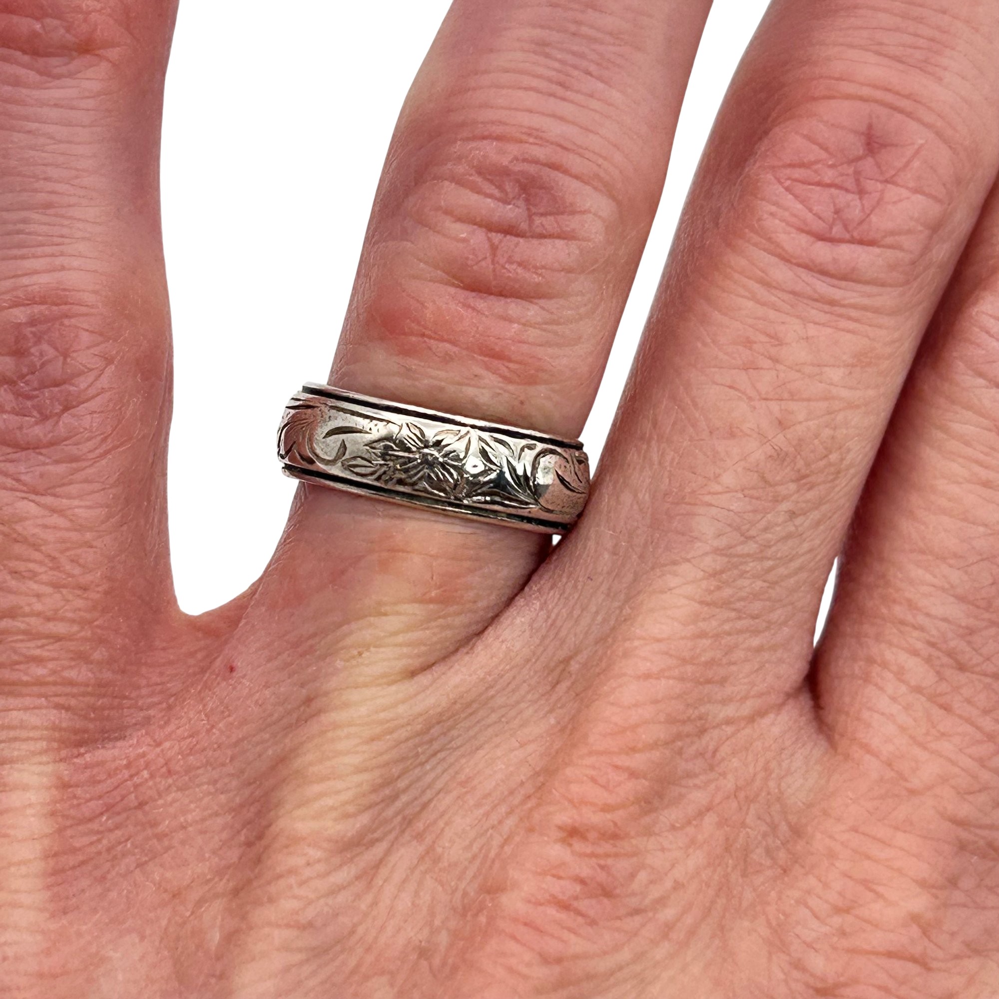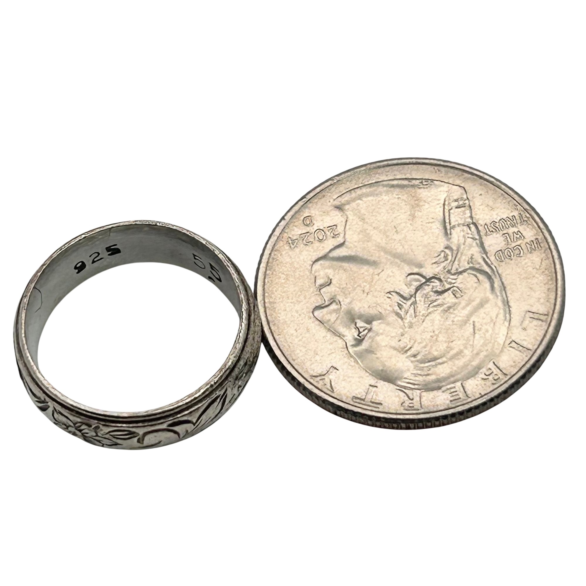 DF Sterling Flower Detail Band Ring. Size 5.5