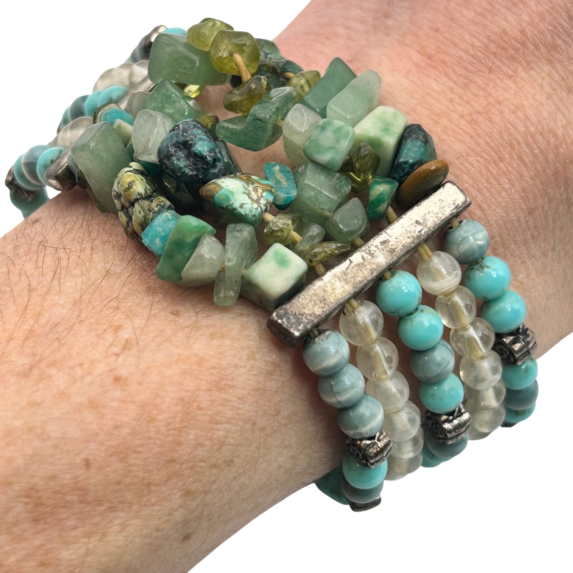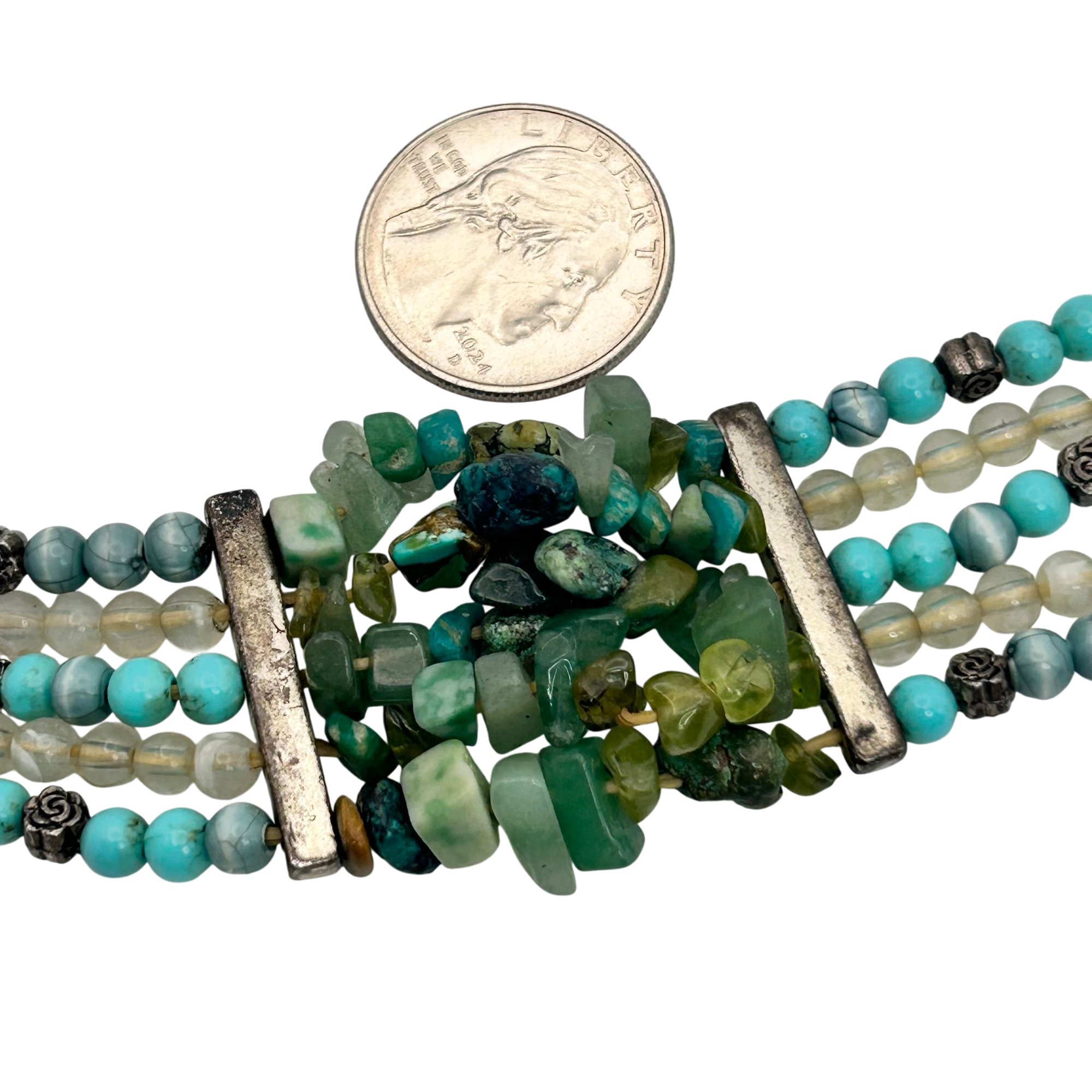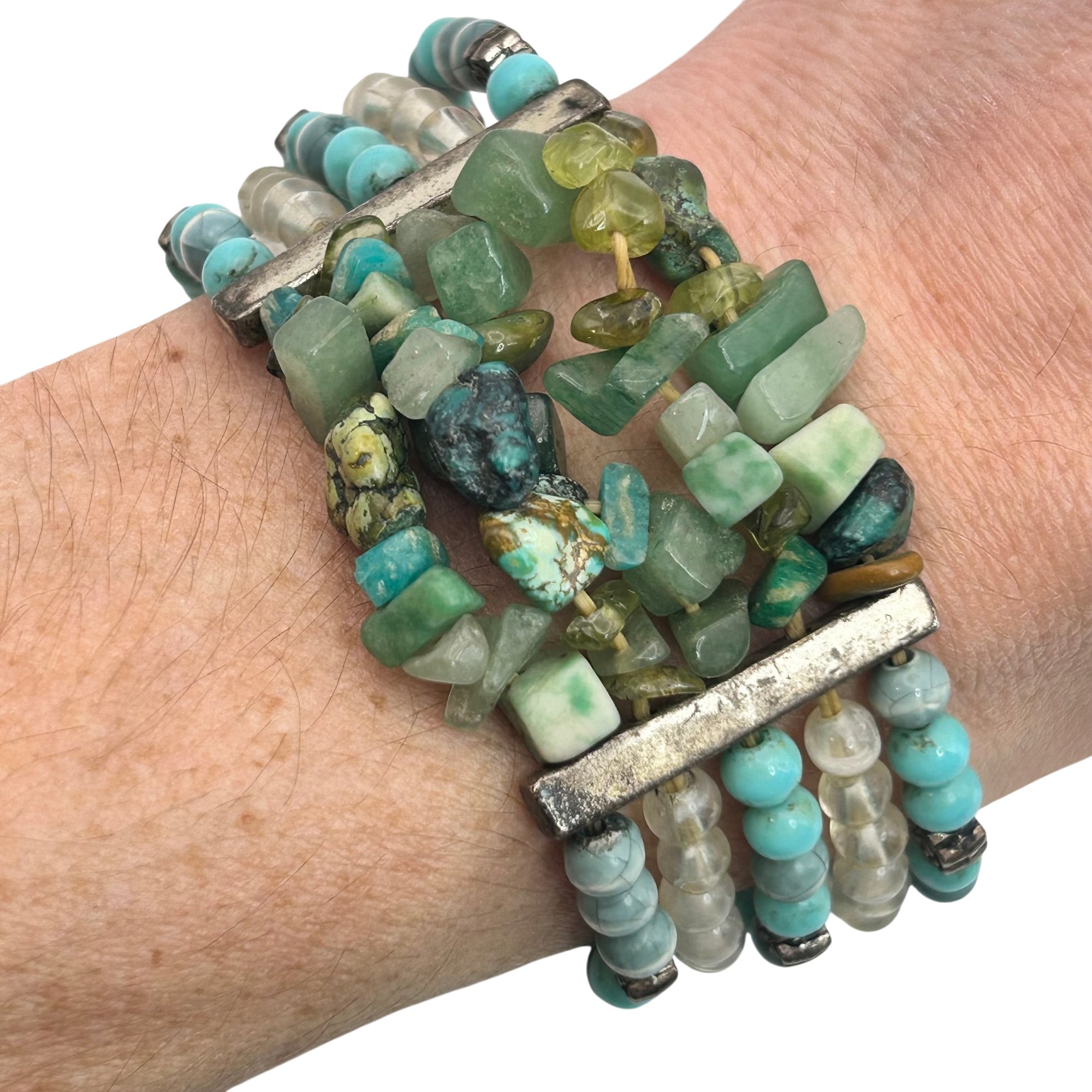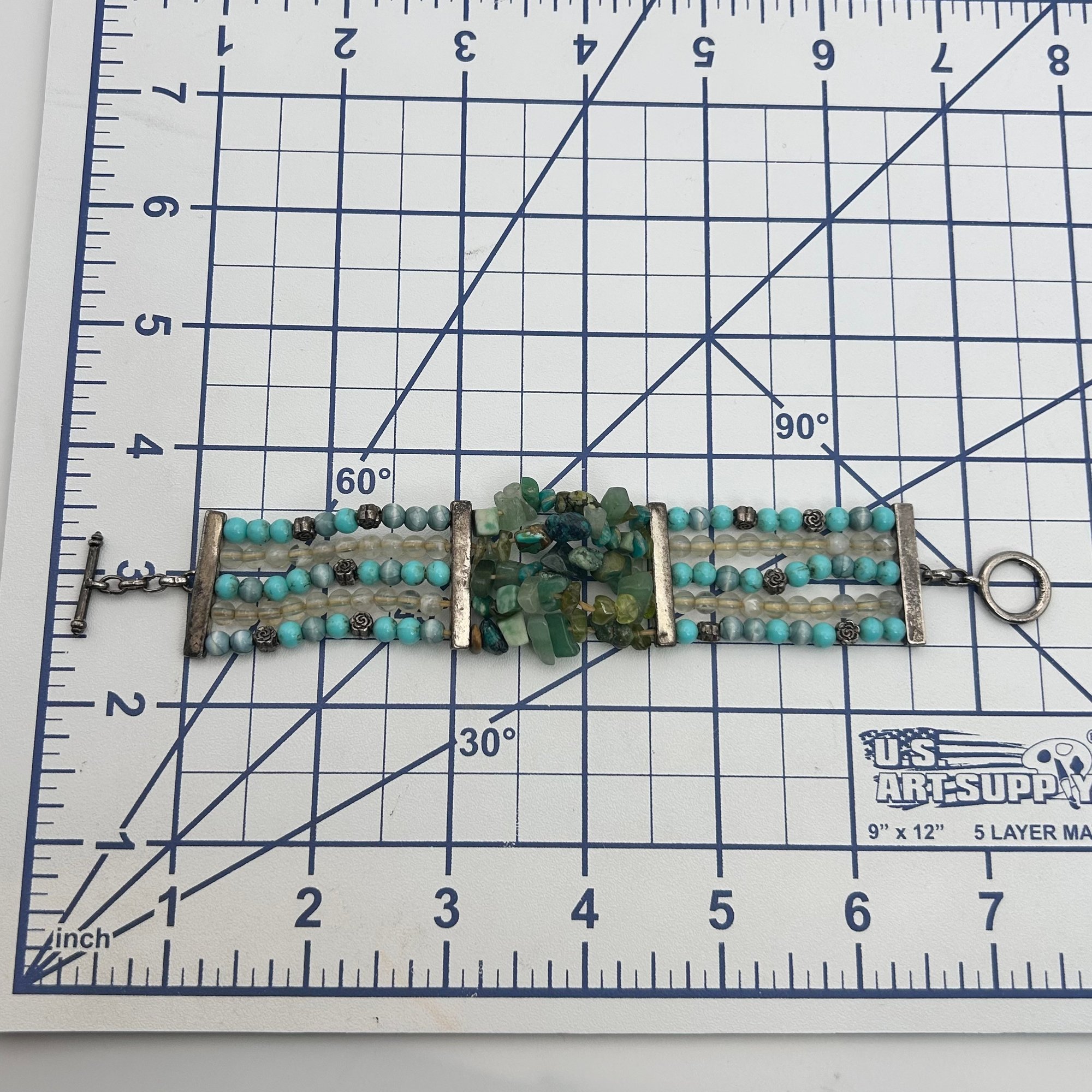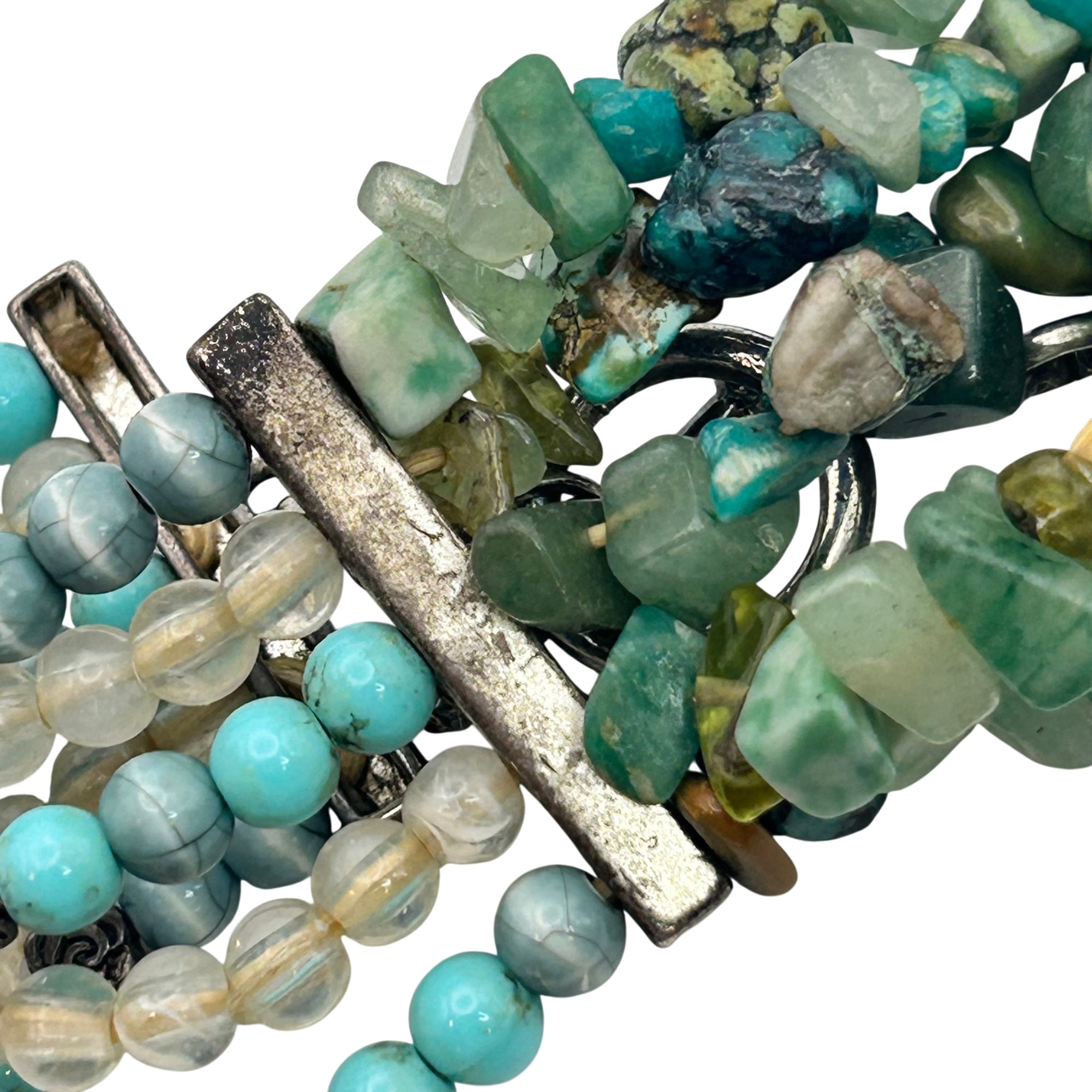Sterling jade and turquoise toggle clasp stretchy bracelet. 28.60g