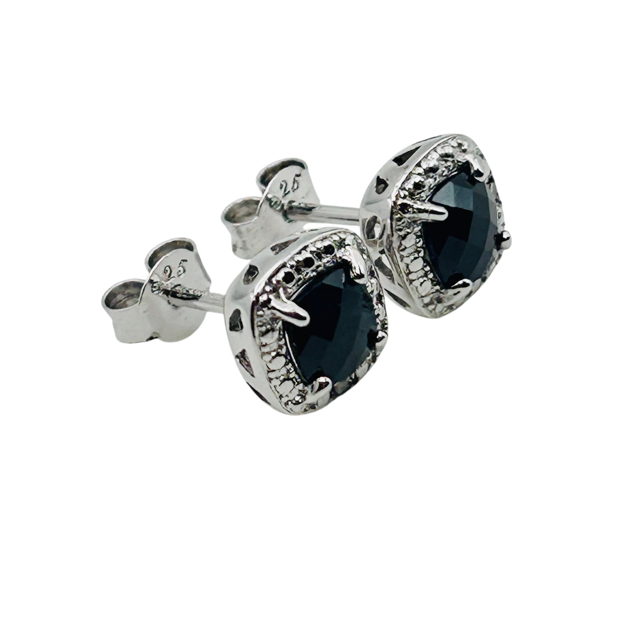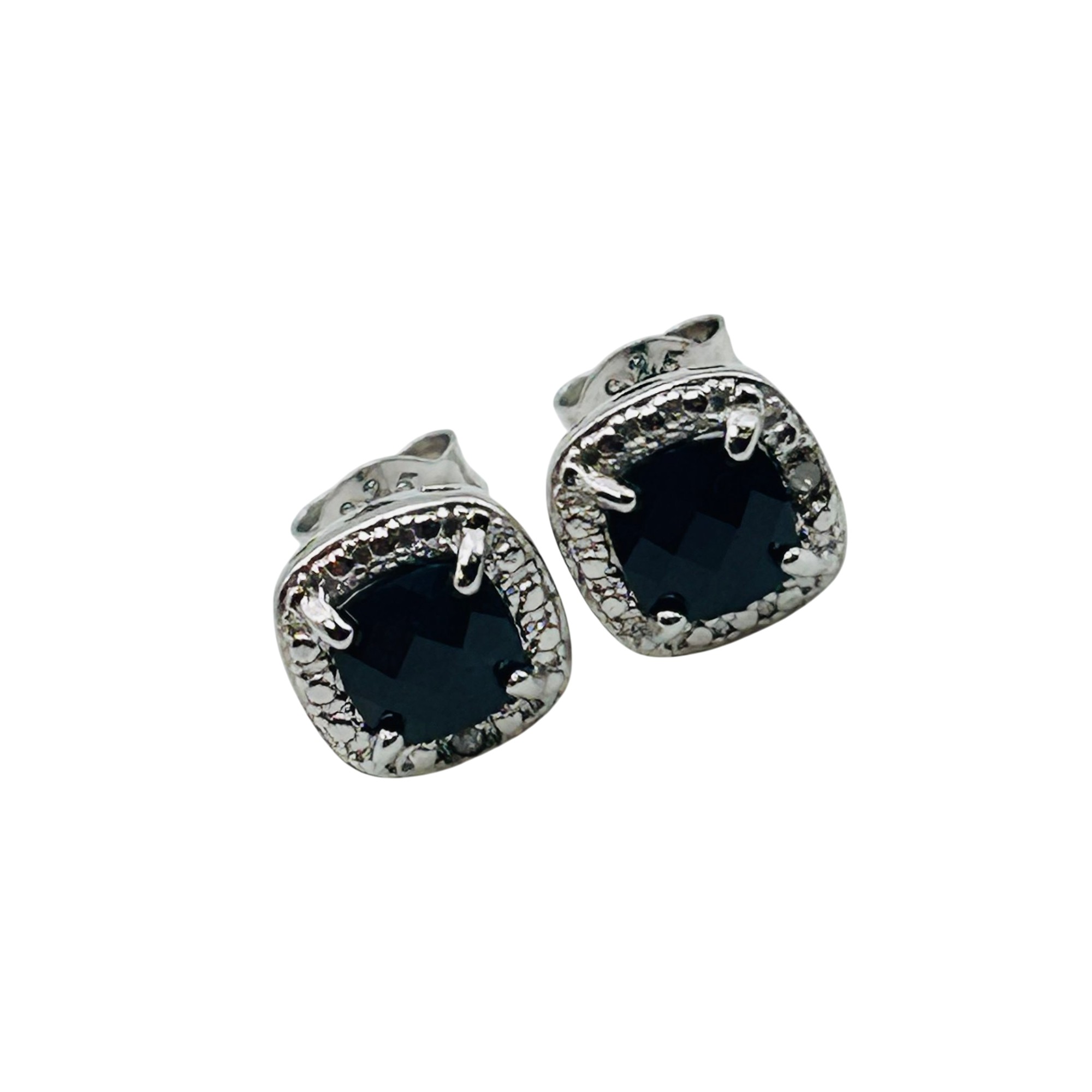 DBJ Sterling sapphire and diamond accent stud earrings. 1.90g