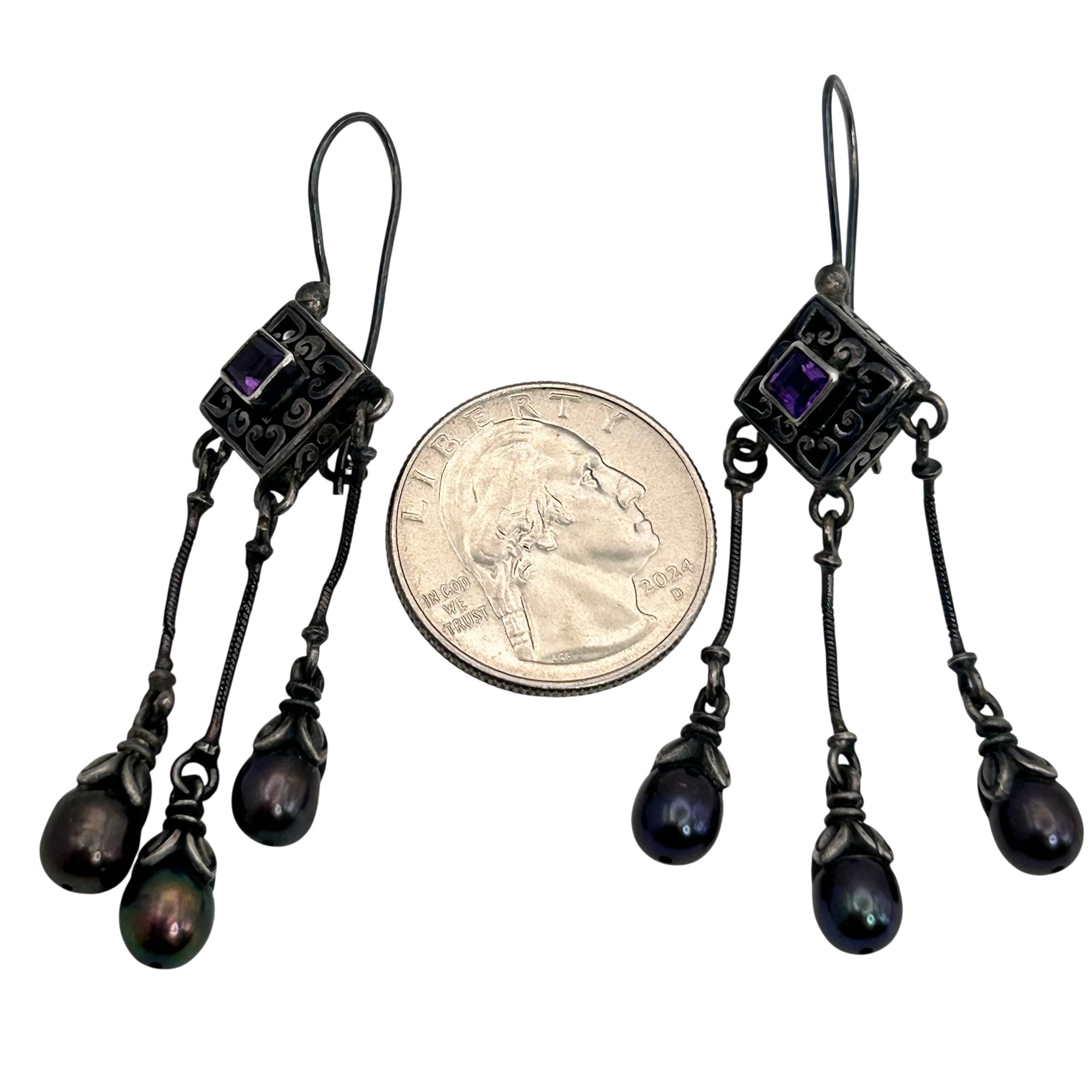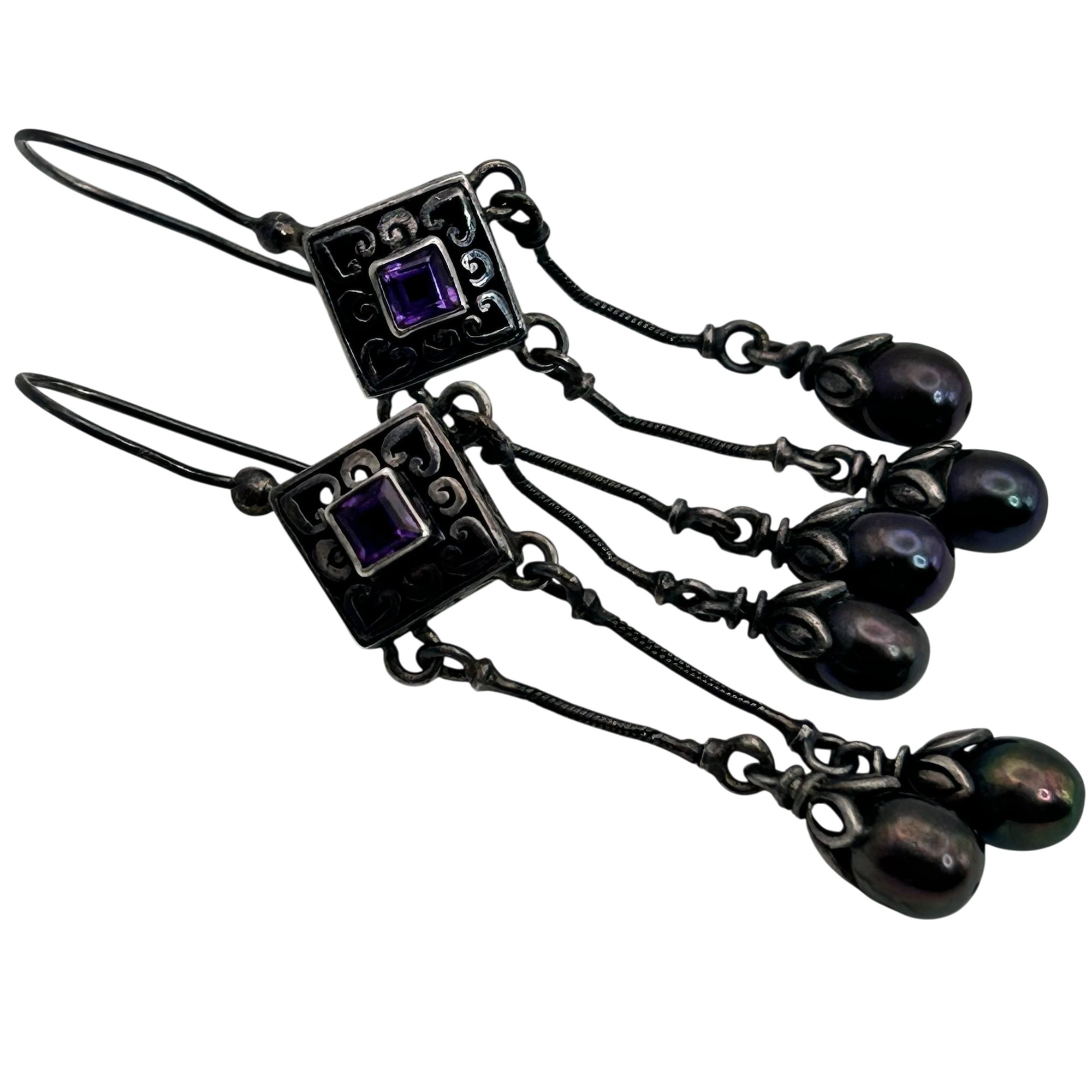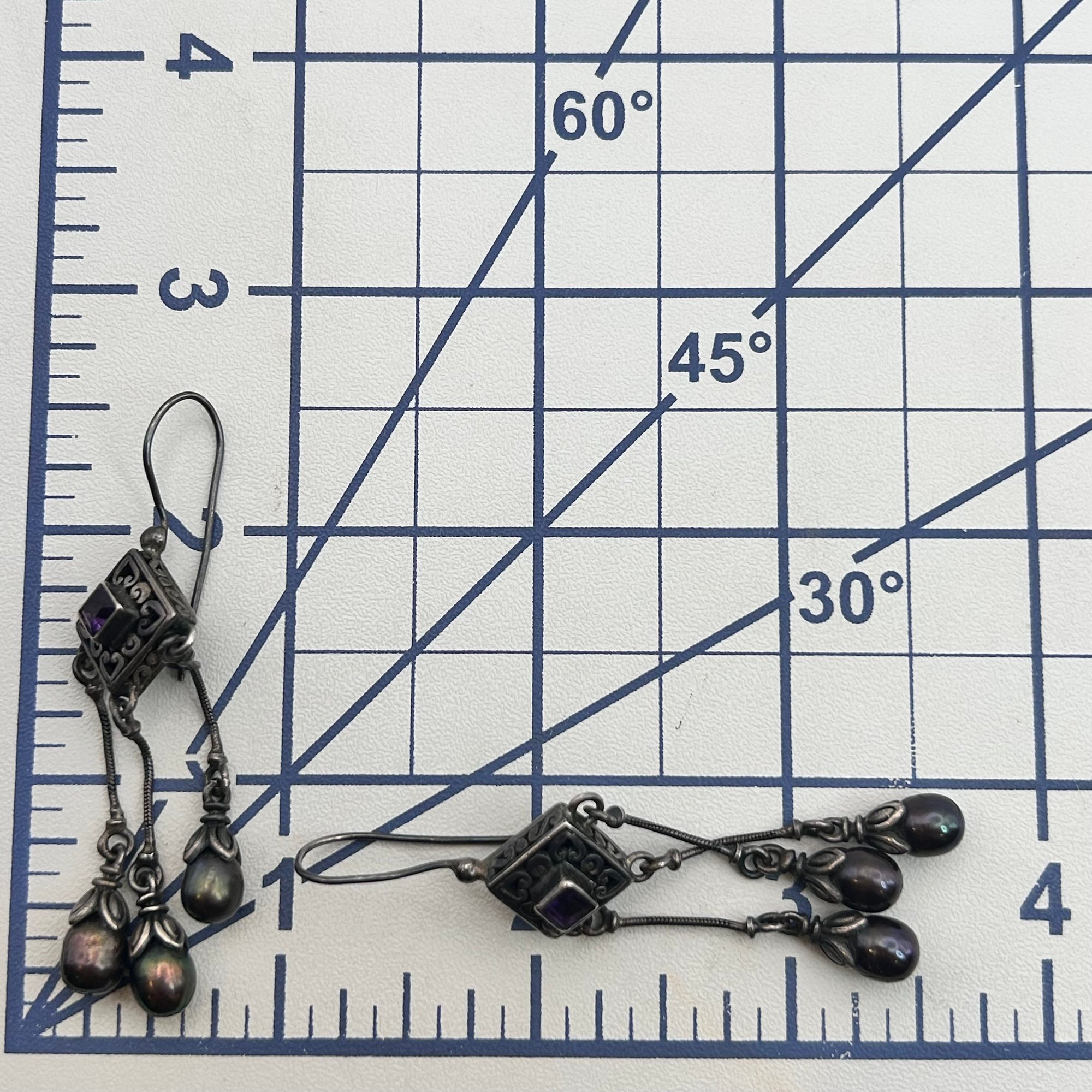 ID Sterling amethyst and pearl dangle earrings. 13.60g