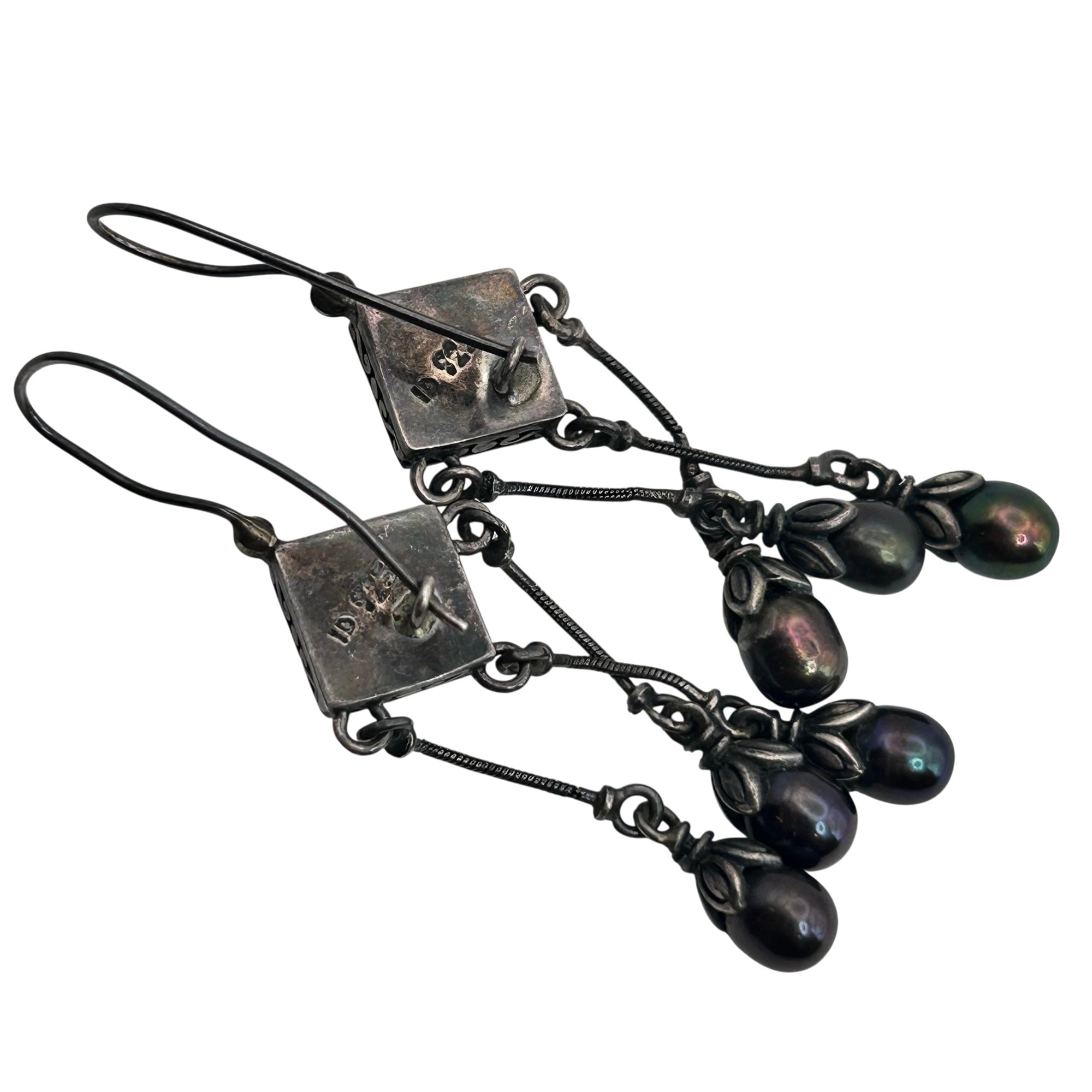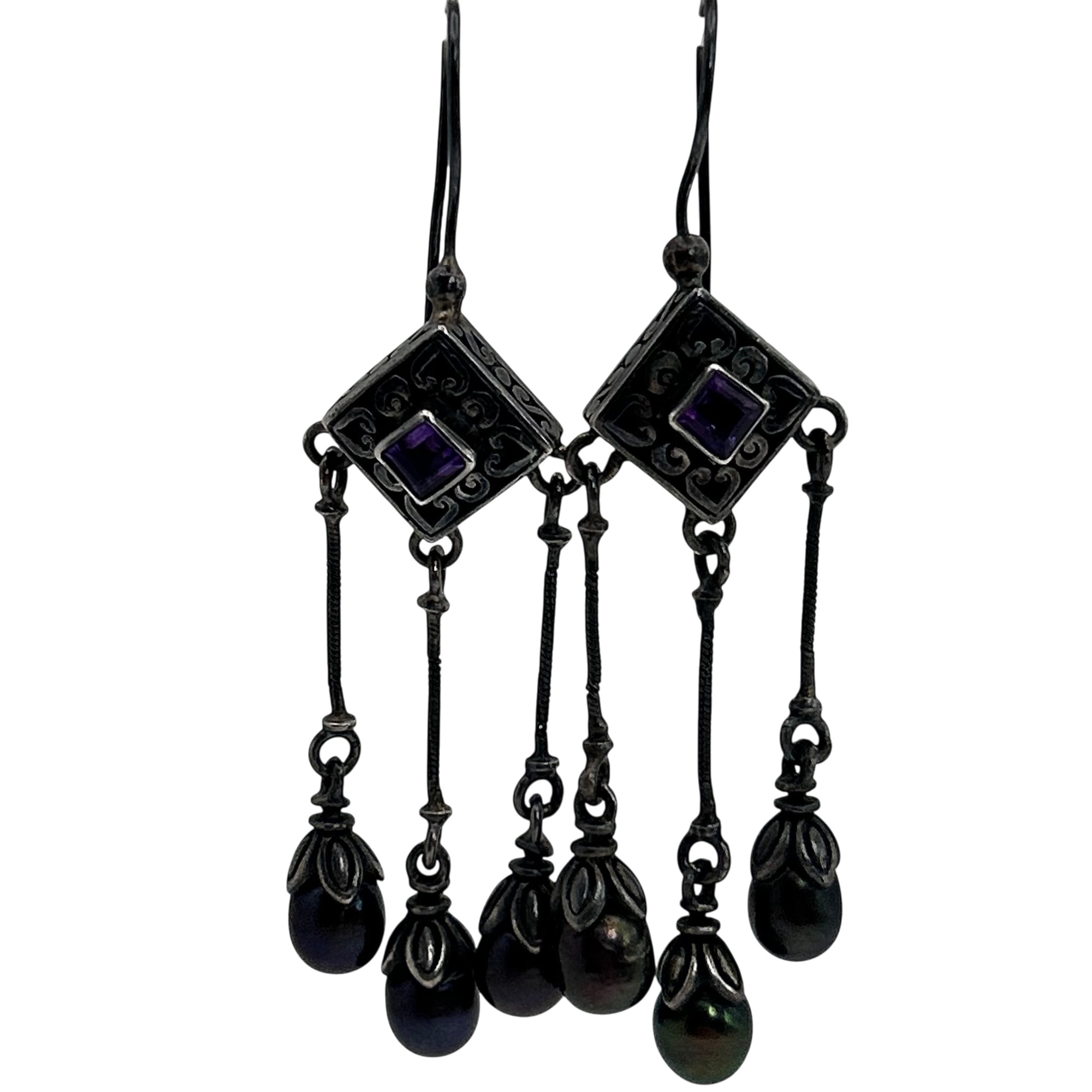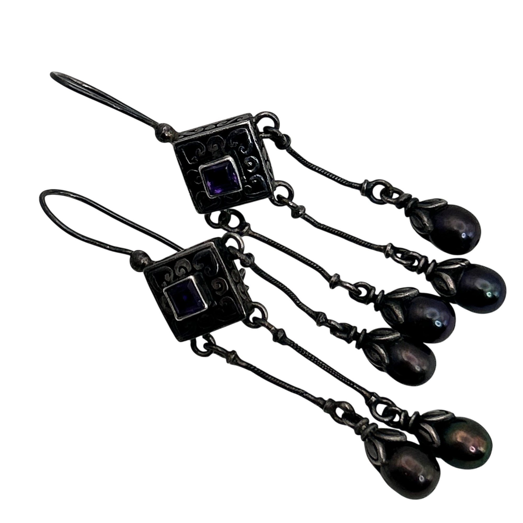 ID Sterling amethyst and pearl dangle earrings. 13.60g