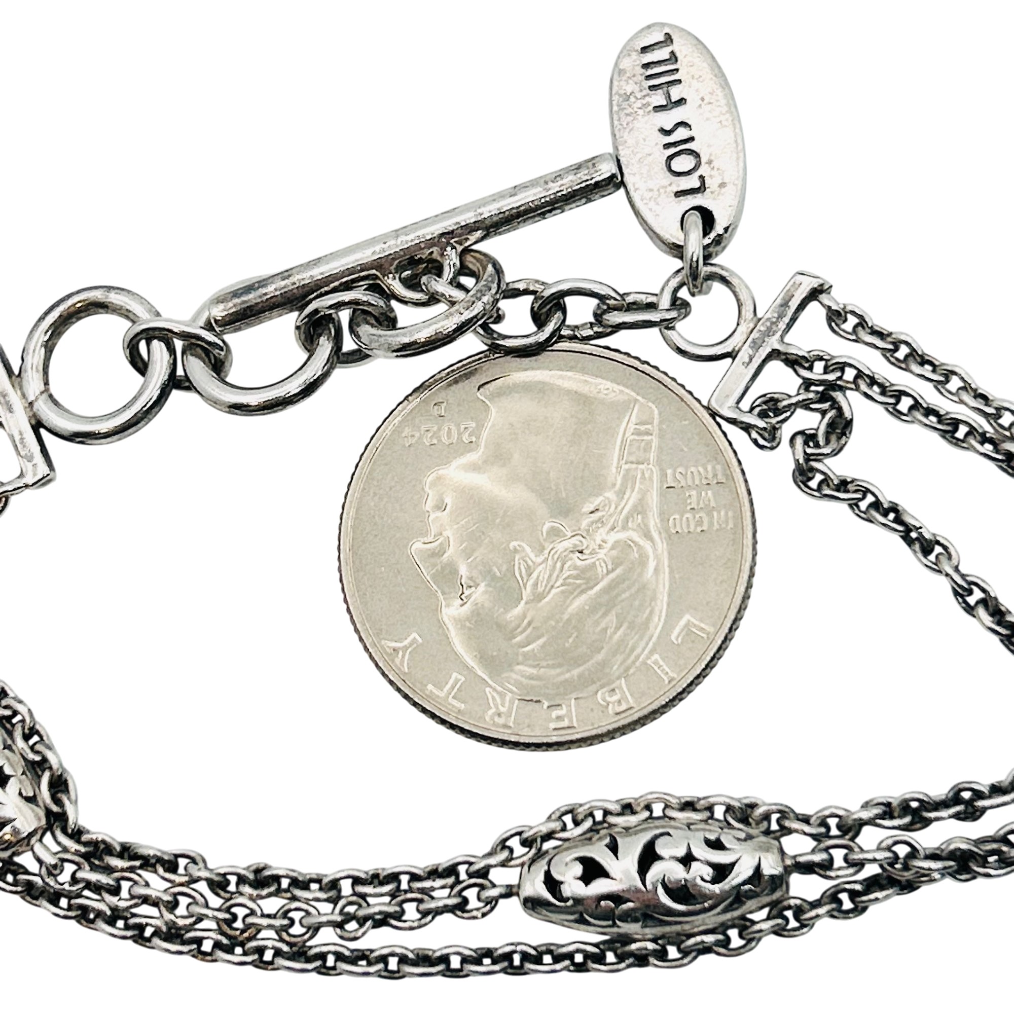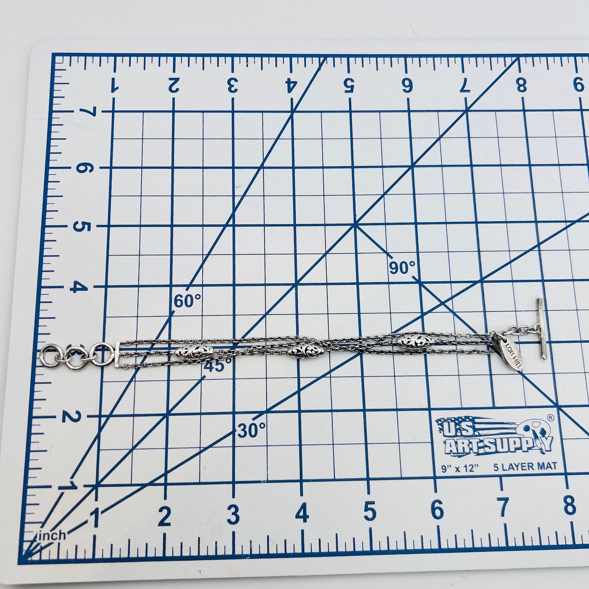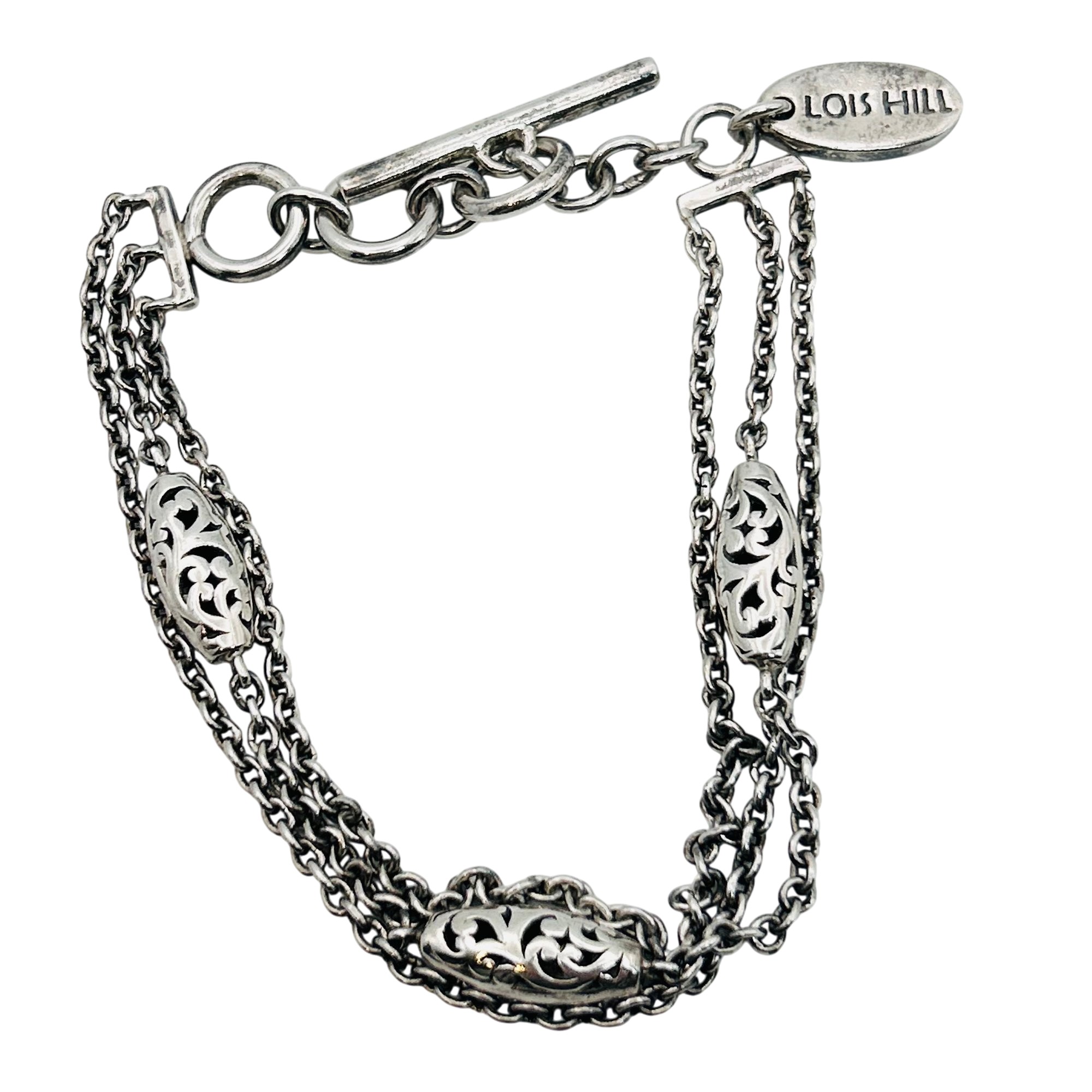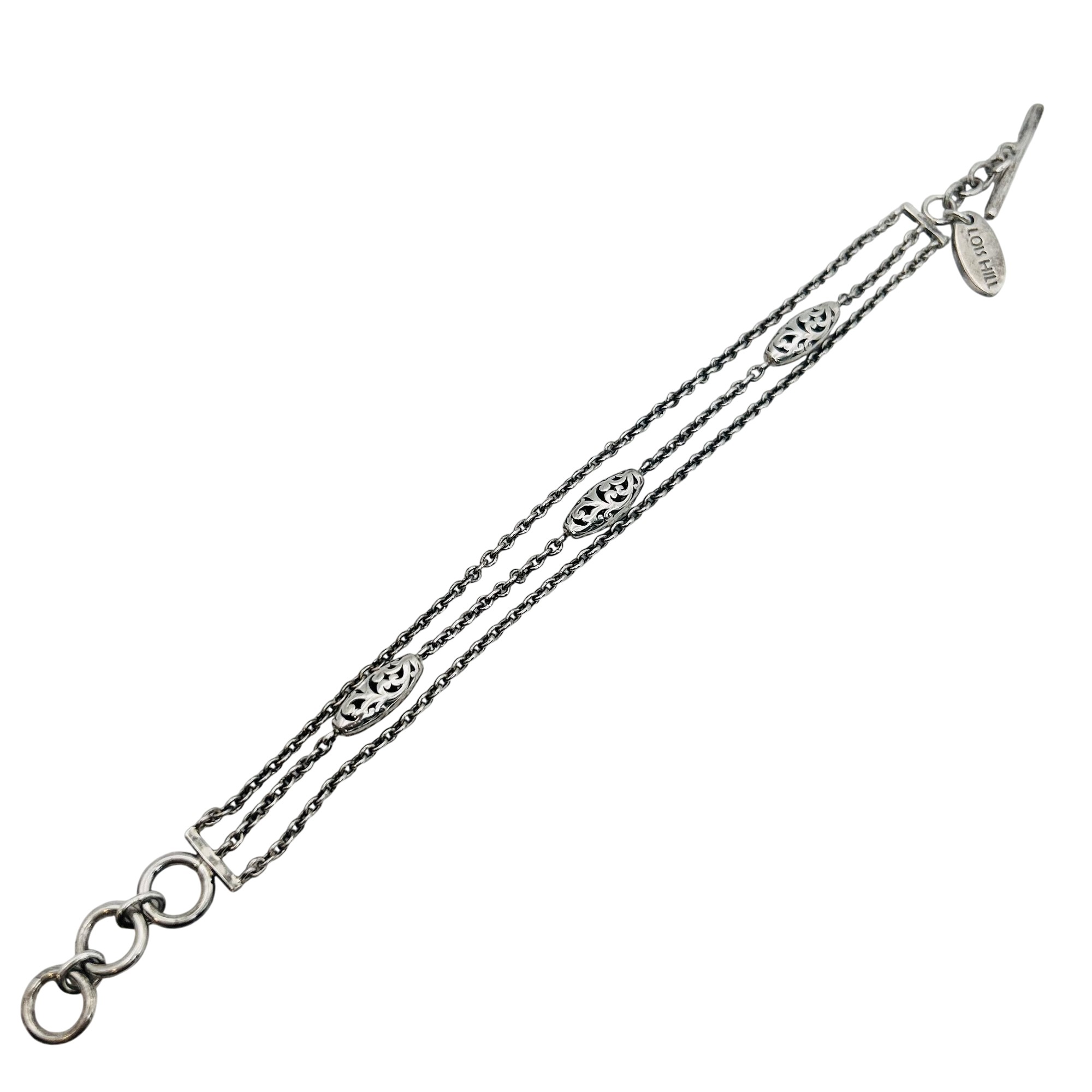 Lois Hill Sterling triple cable chain toggle clasp bracelet. 15.20g