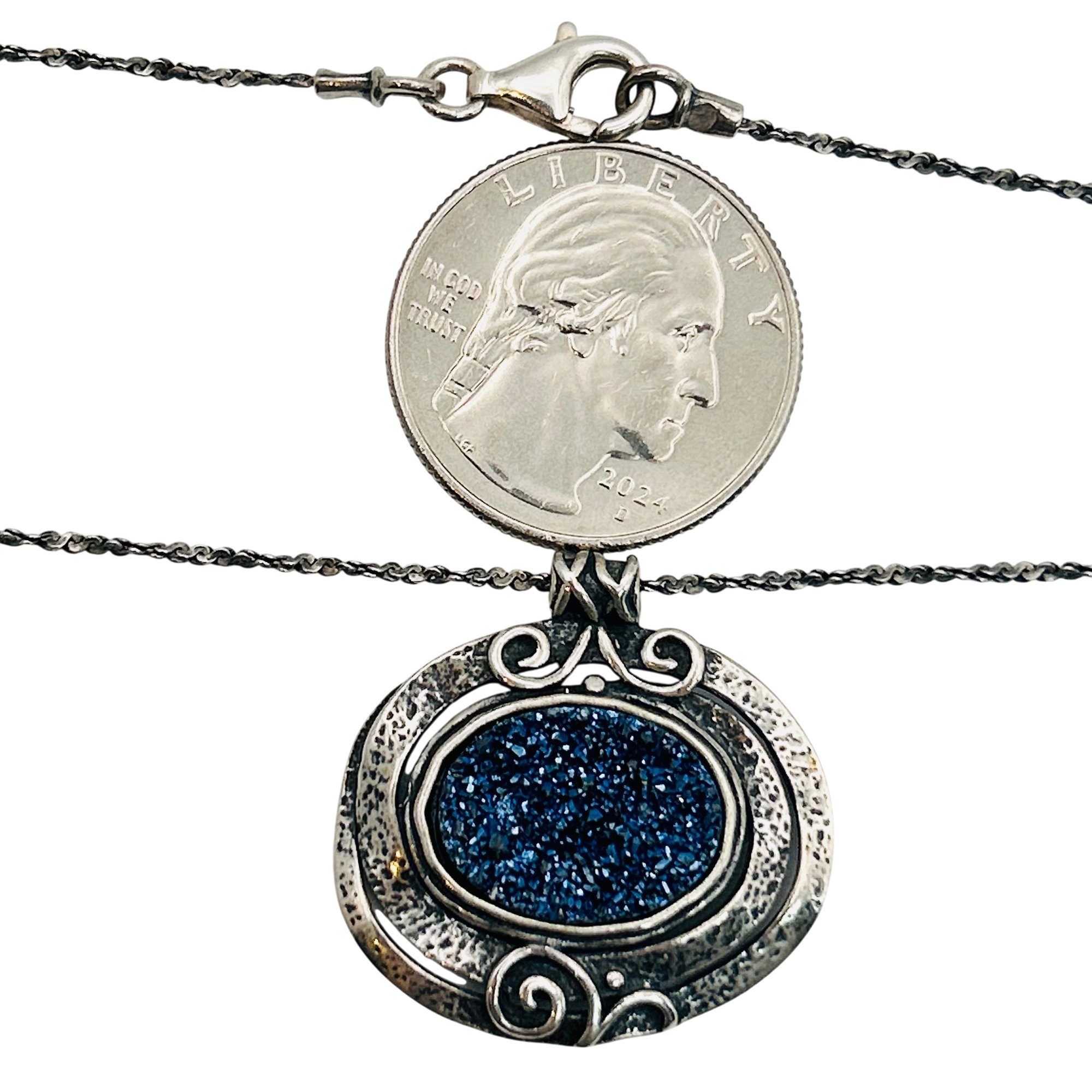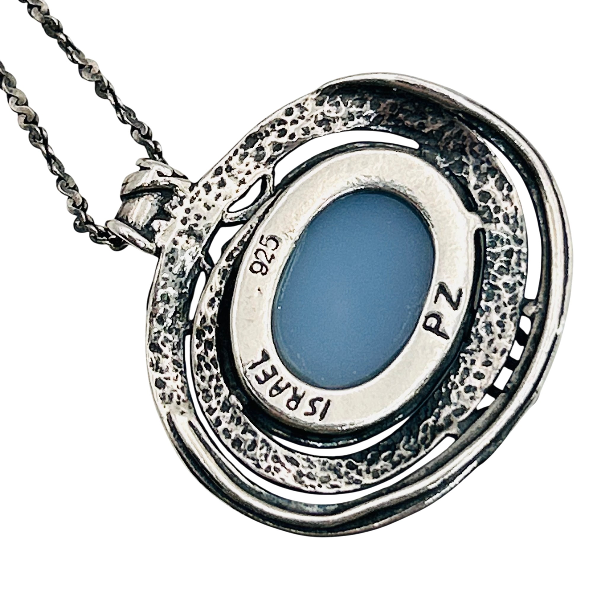 Israel PZ Sterling blue sparkle stone twist chain necklace. 8.80g