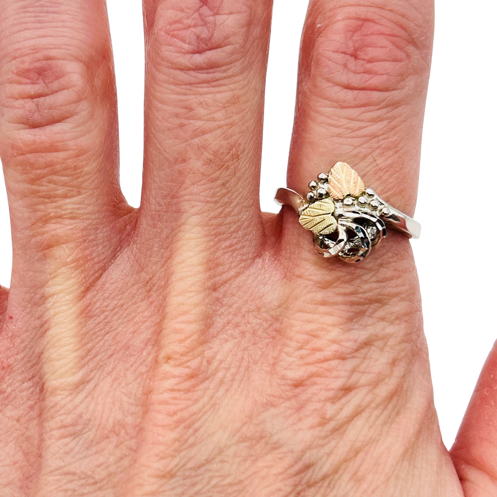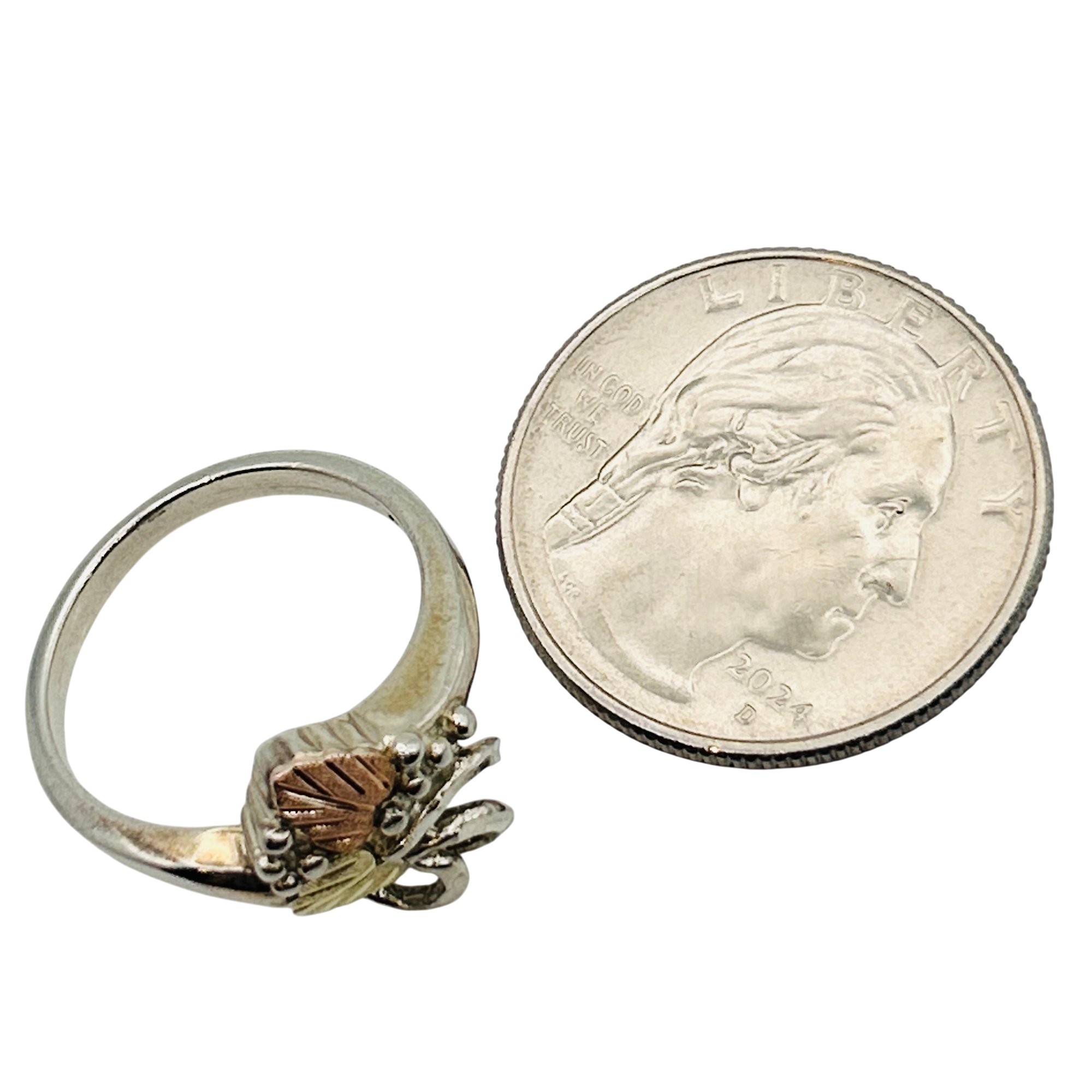 Black Hills sterling 12k gold leaf ring. Size 7. 3.40g