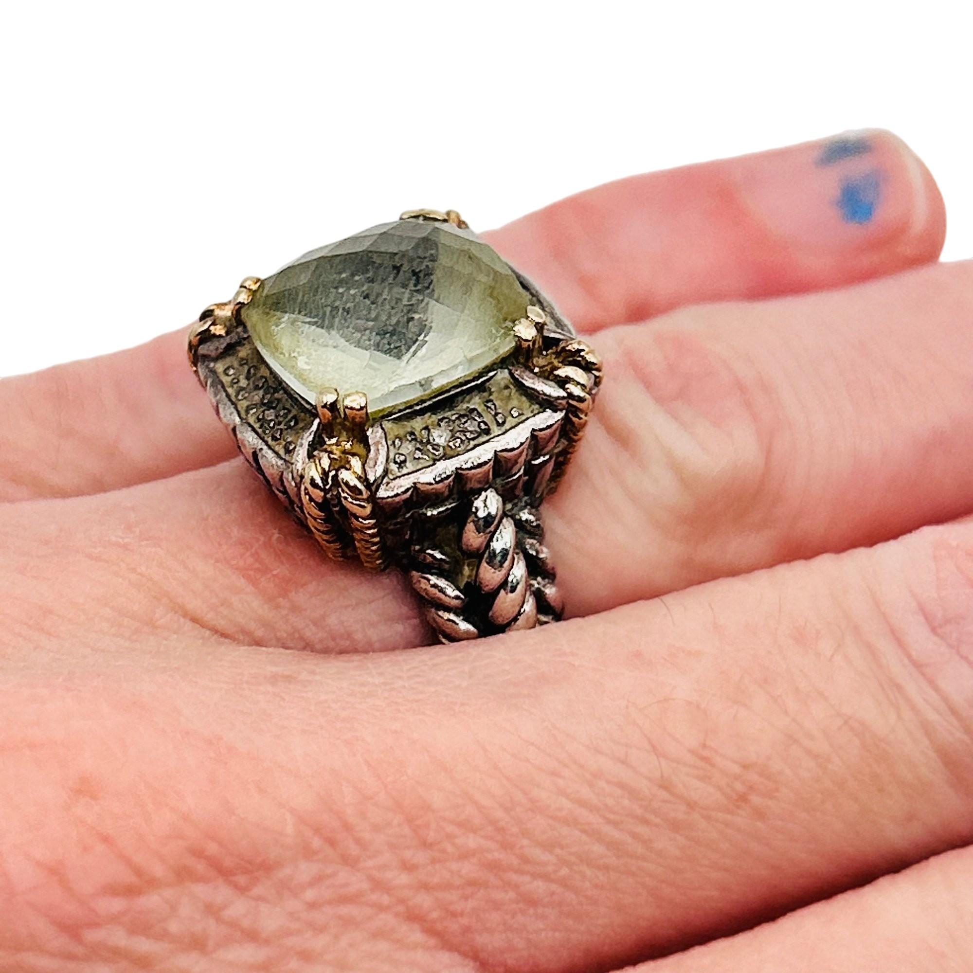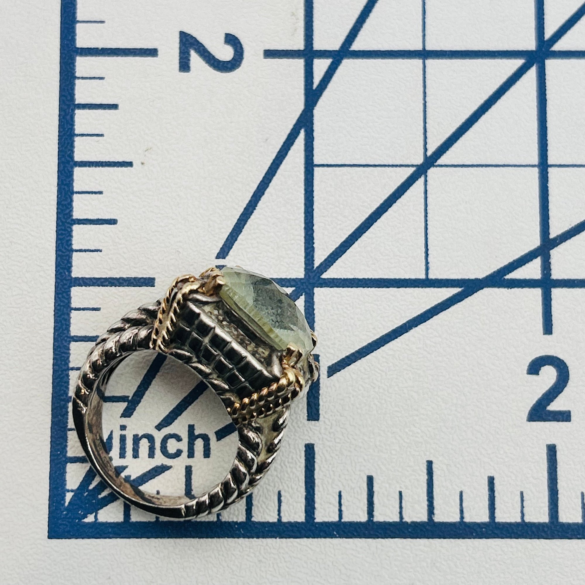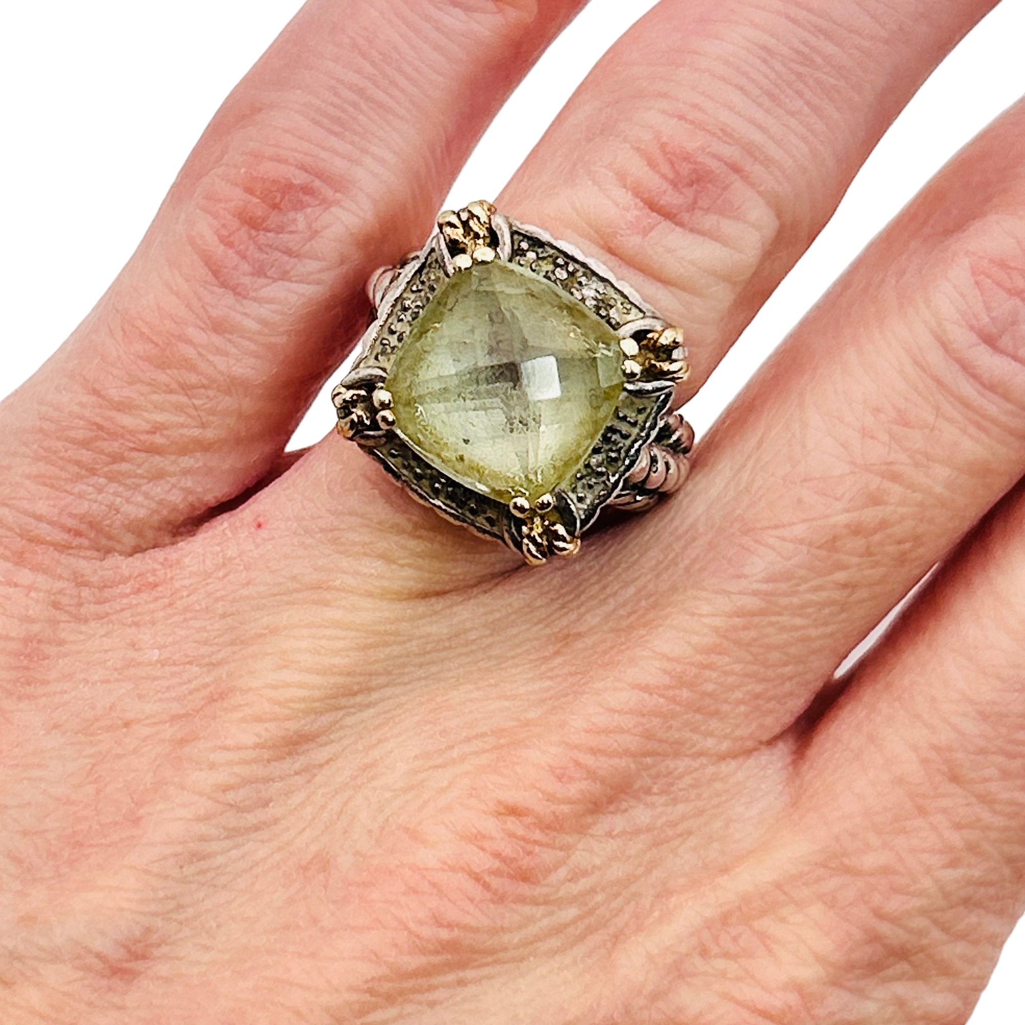 T&C Sterling 14k golf green Prasiolite statement ring. Size 5. 10.80g