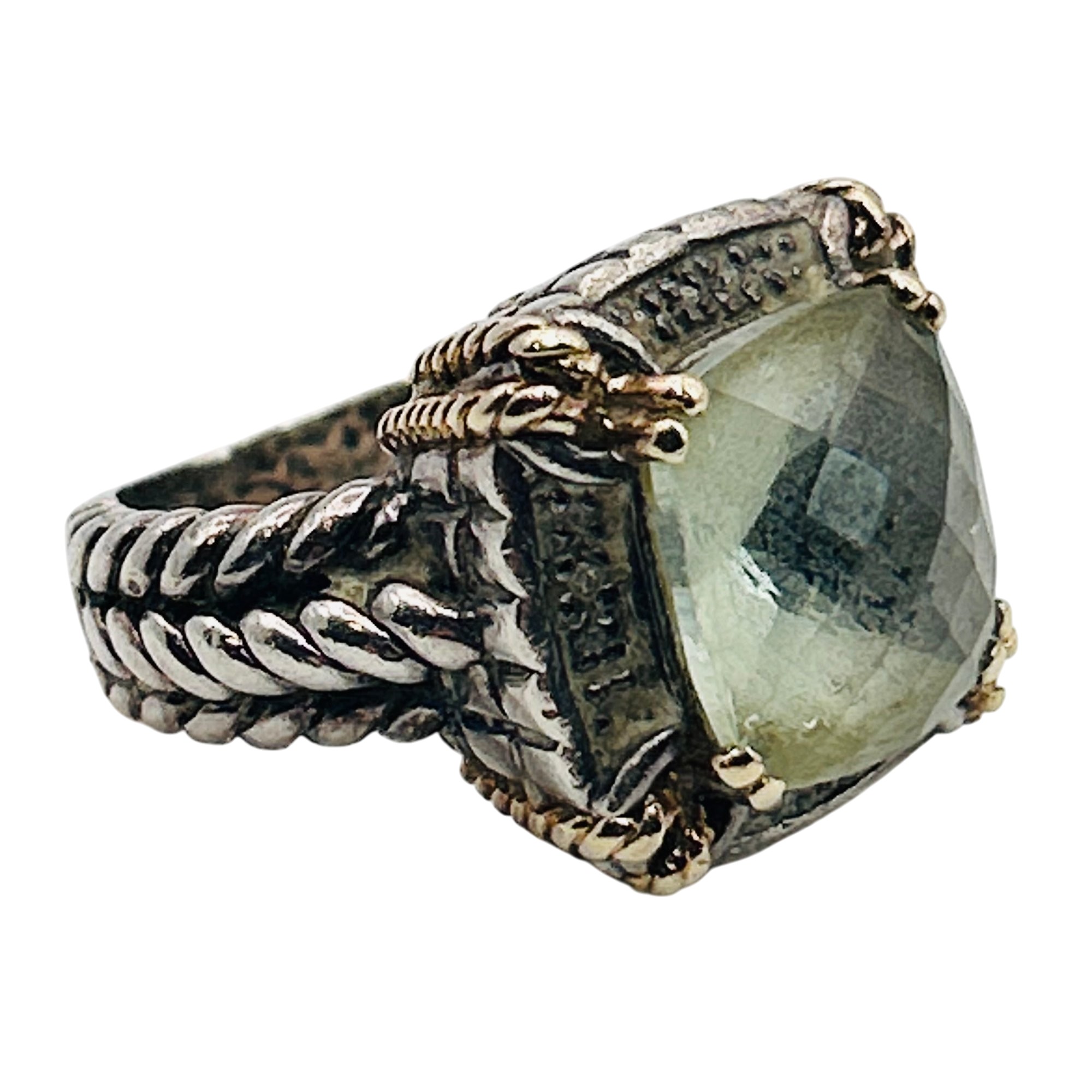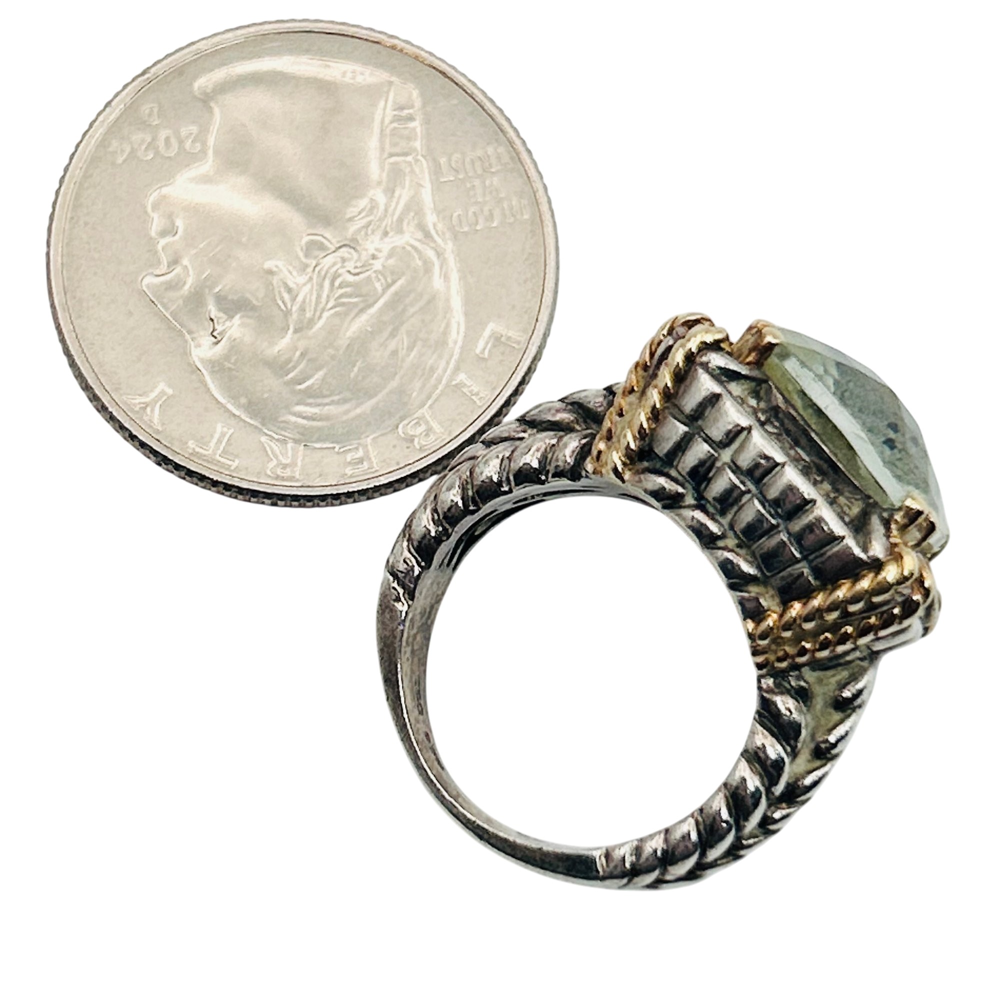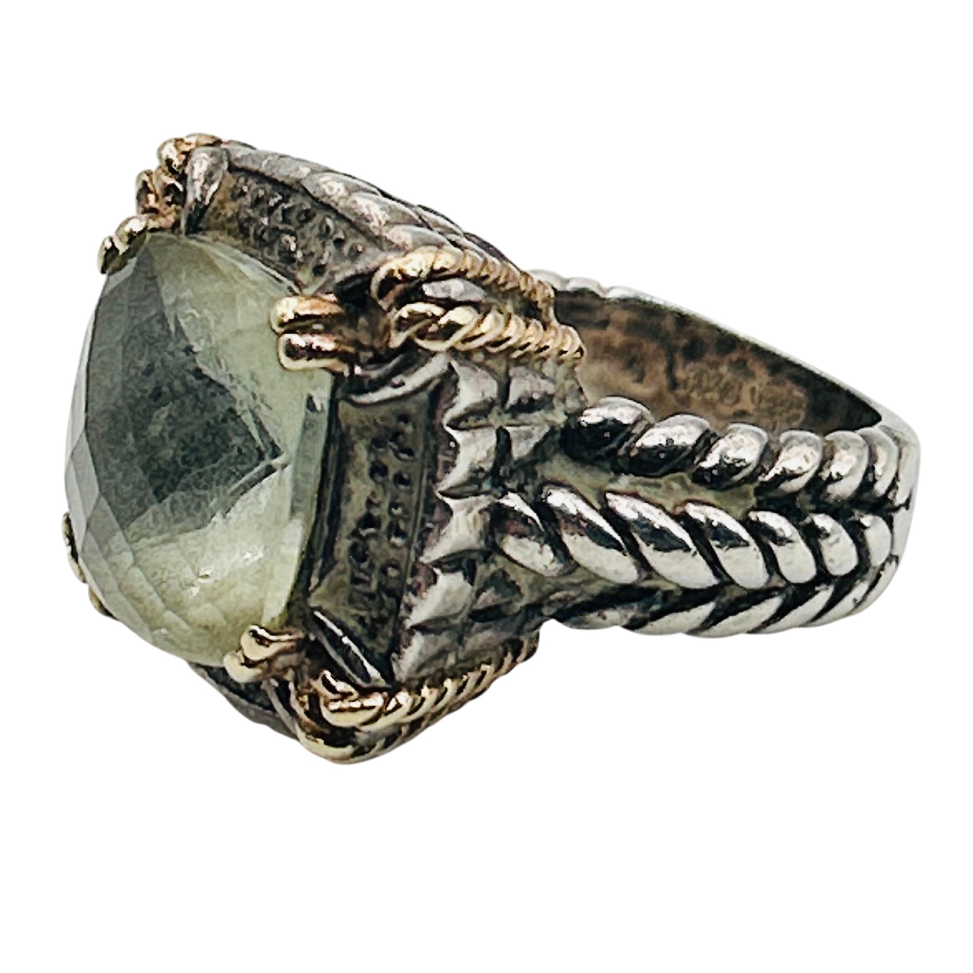 T&C Sterling 14k golf green Prasiolite statement ring. Size 5. 10.80g