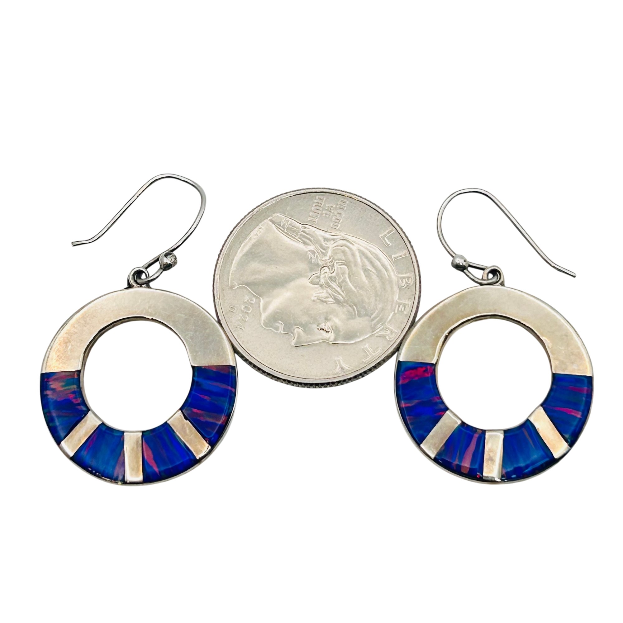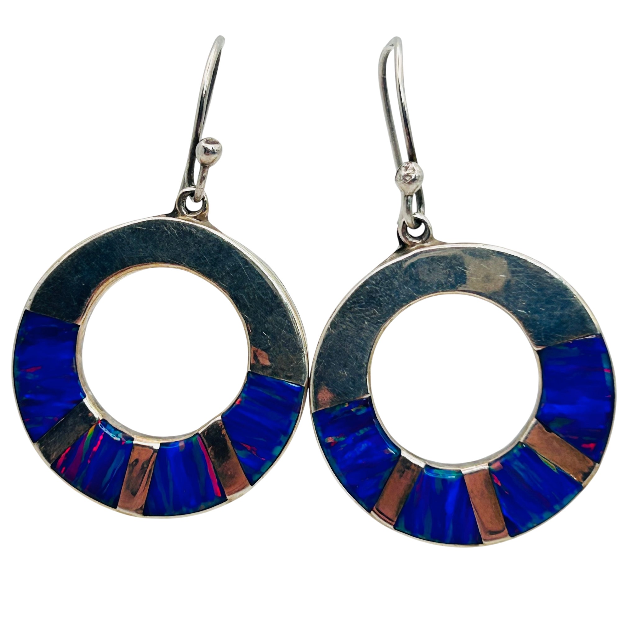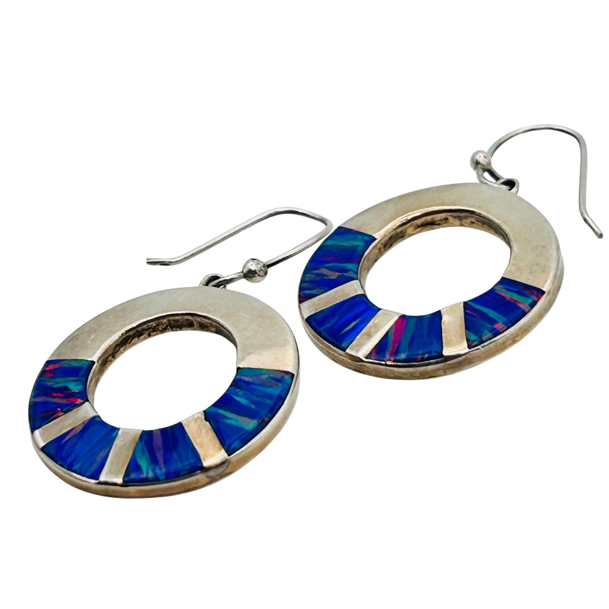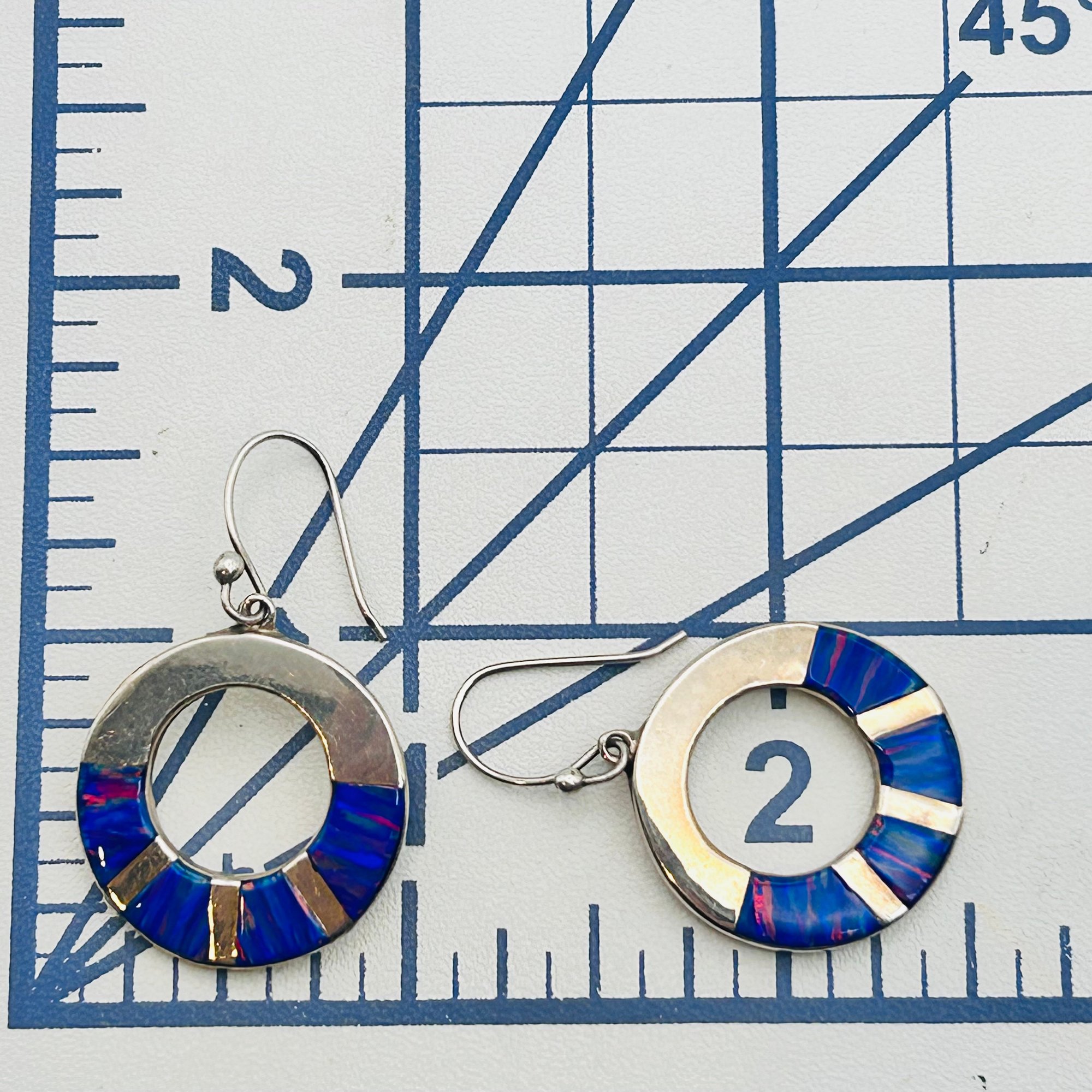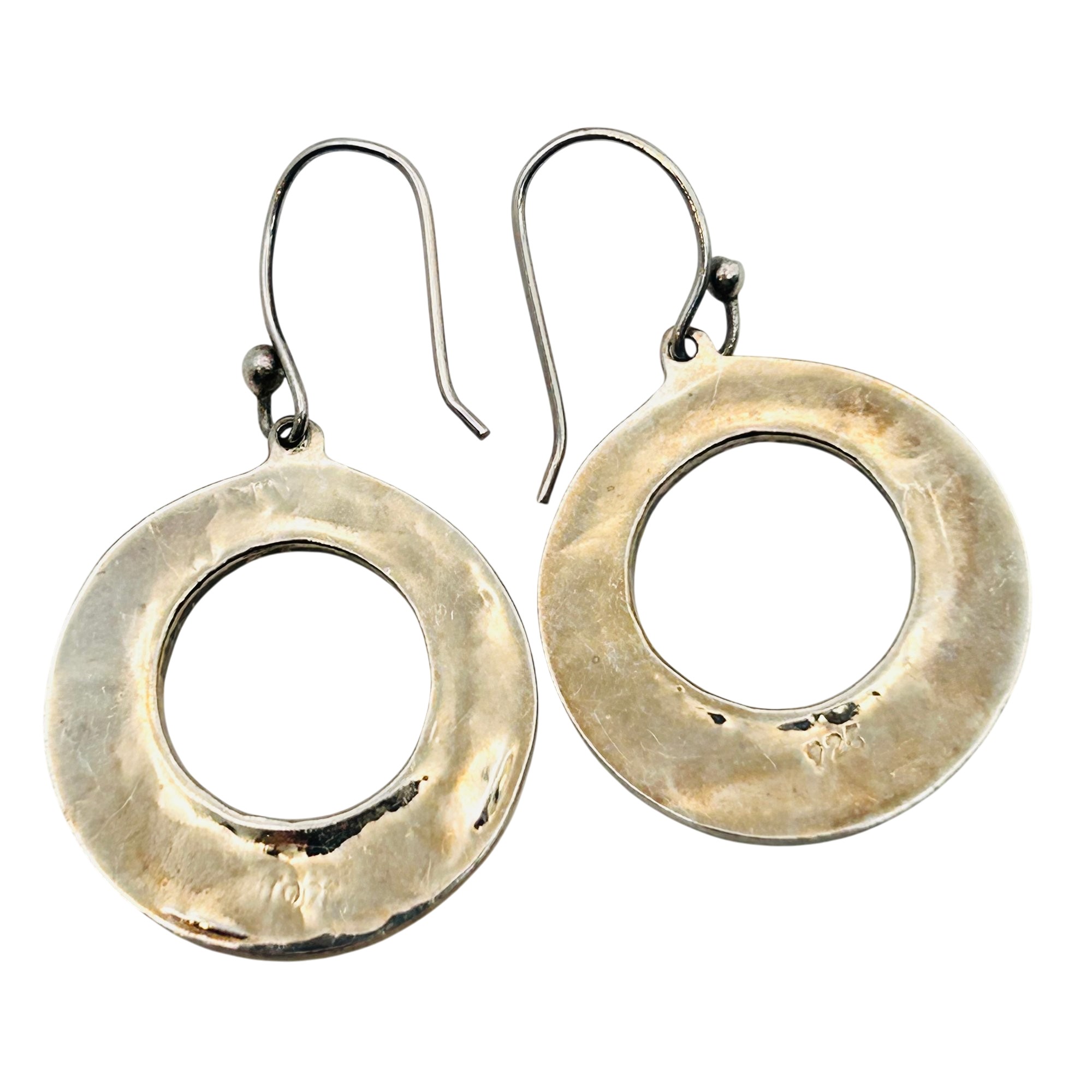 Sterling southwest opal round cut out hook back earrings. 3.60g