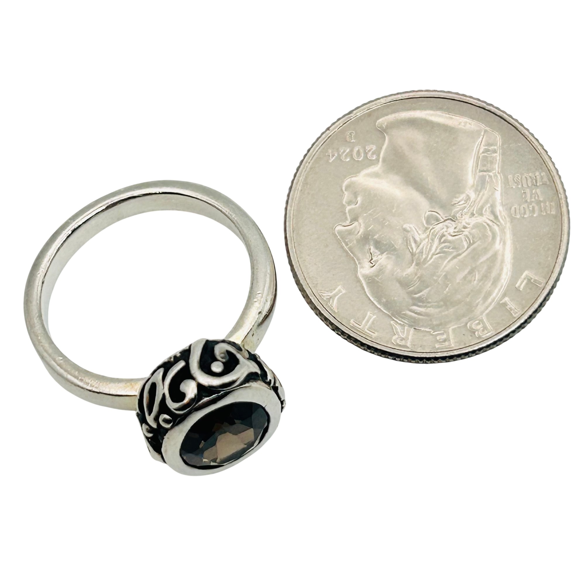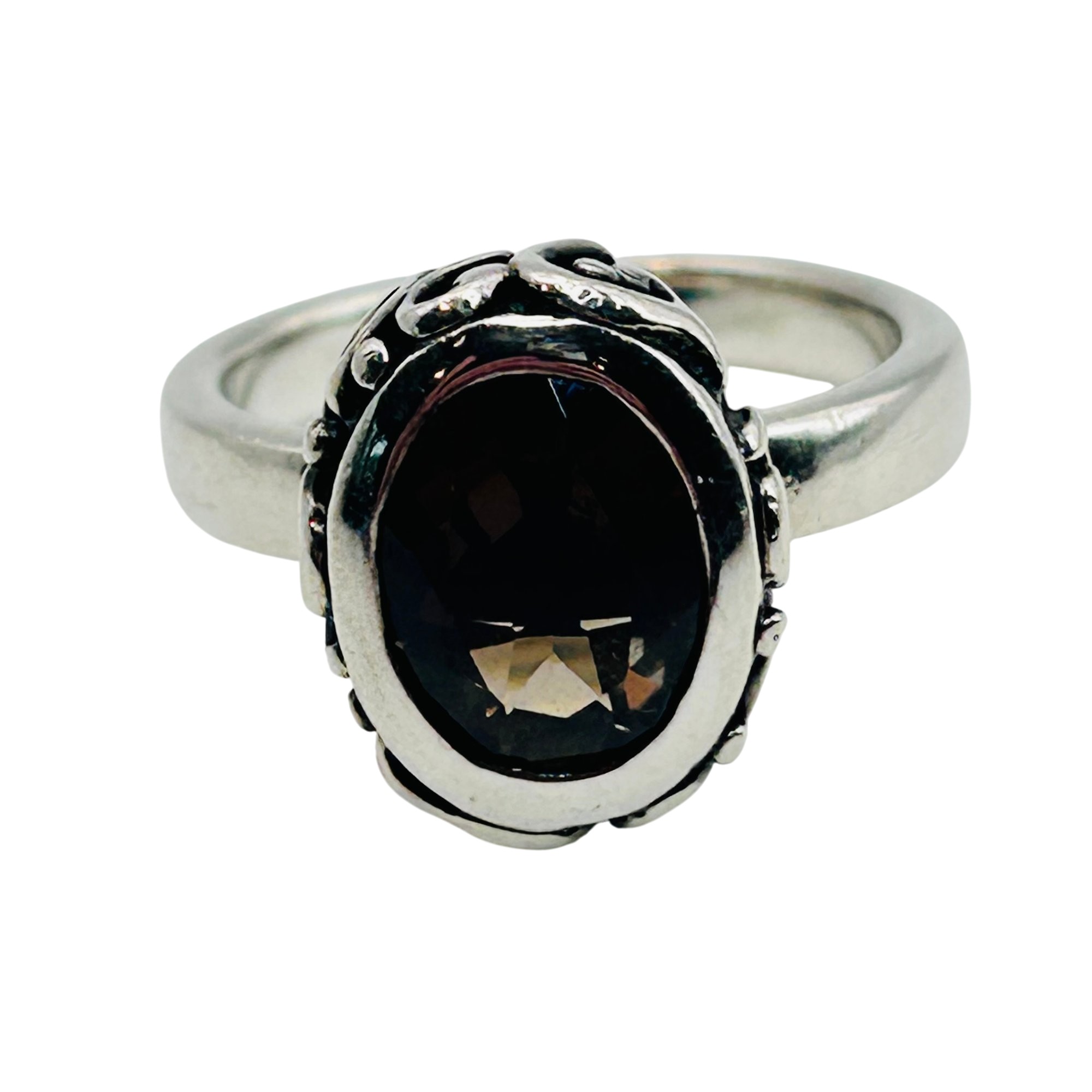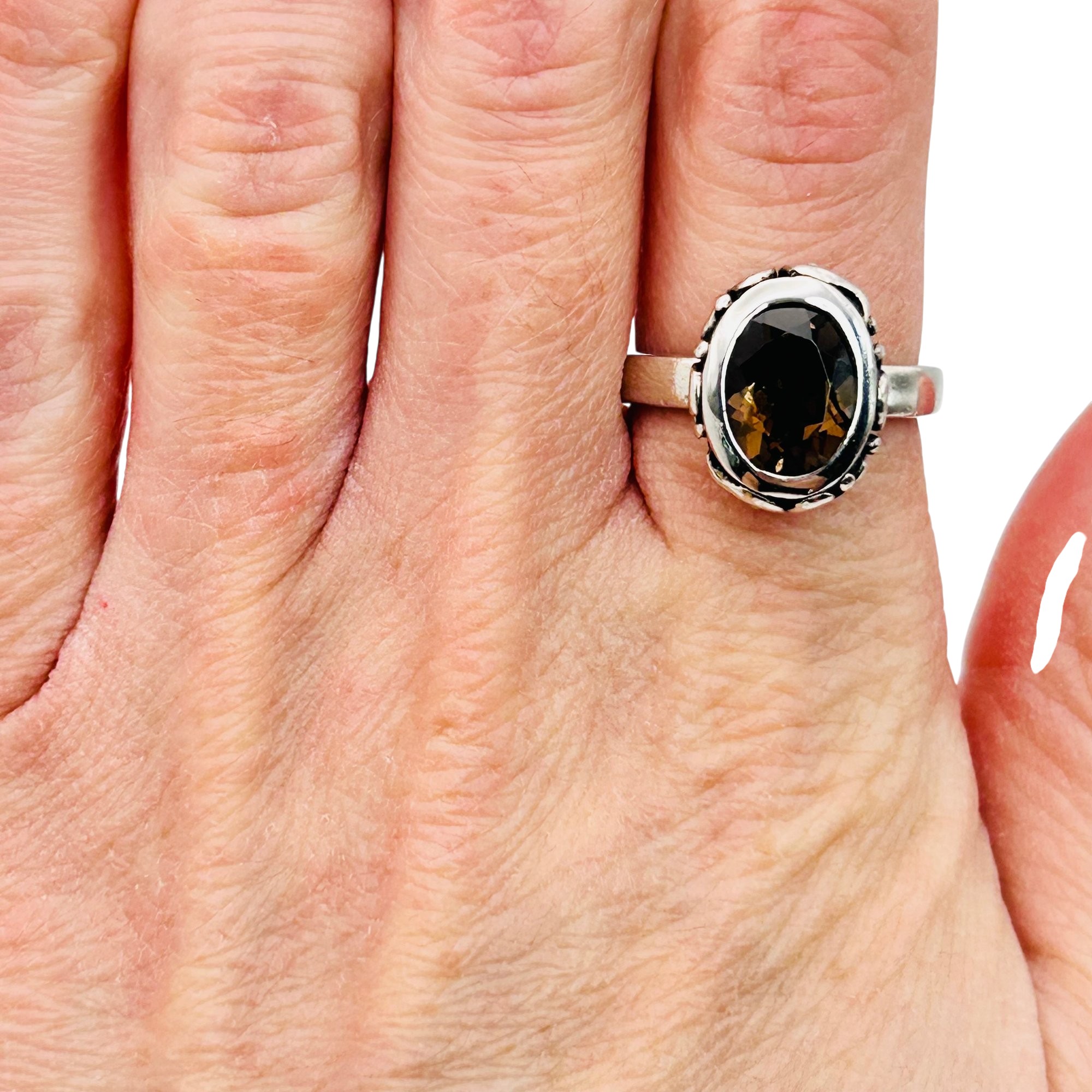 Sterling Smoky quartz oval ring. Size 7. 7.10g
