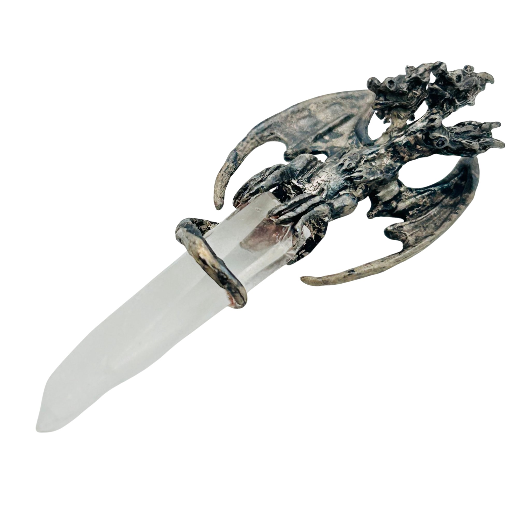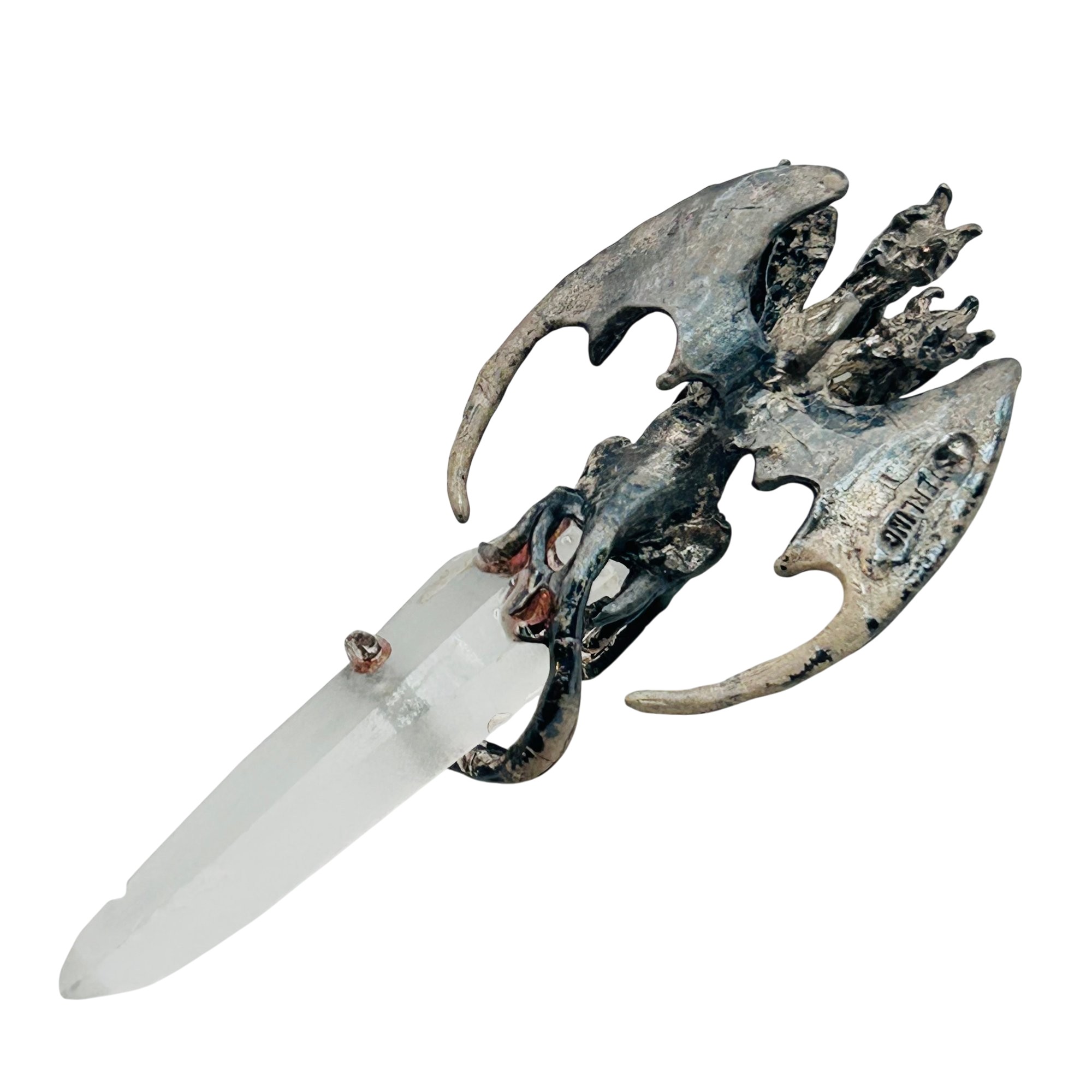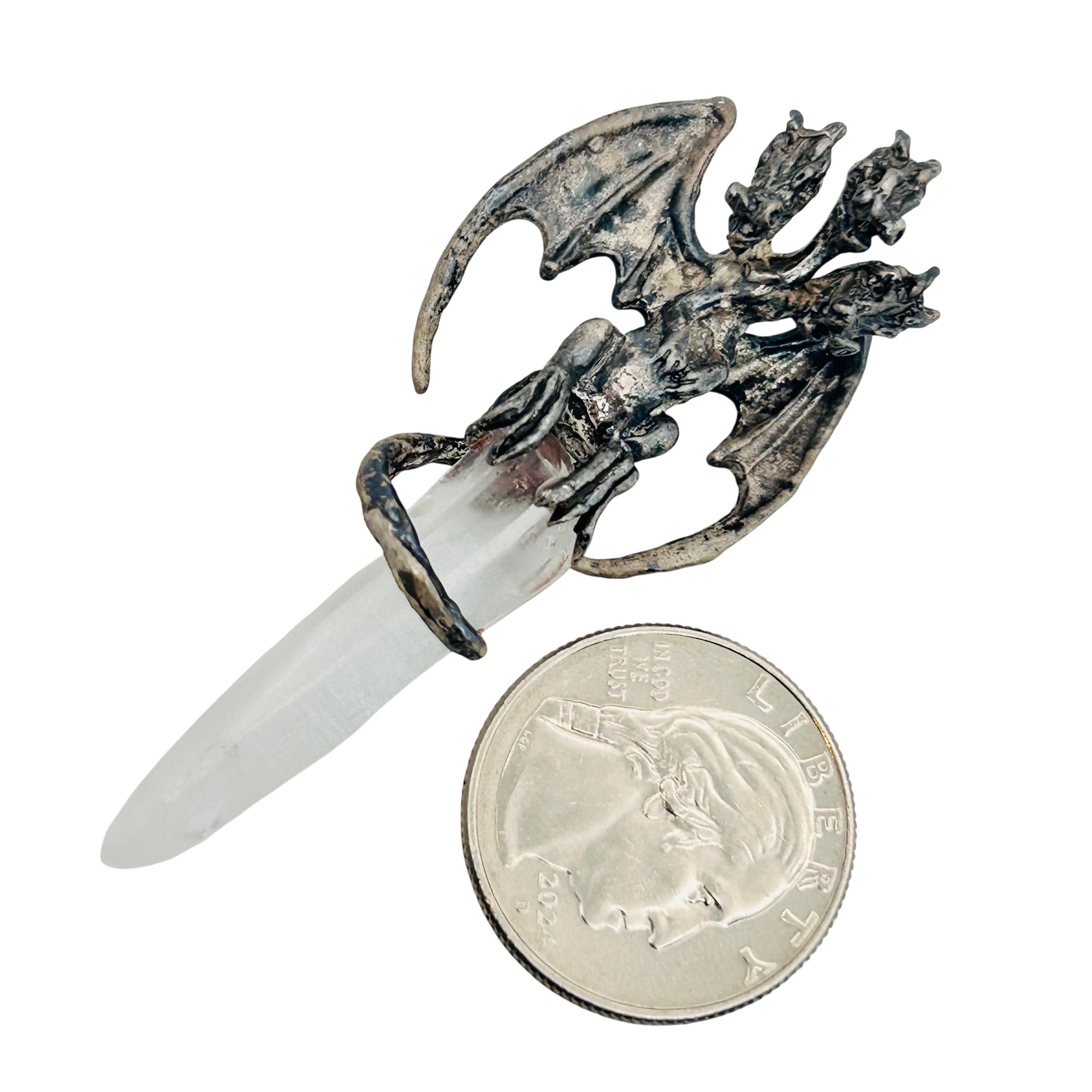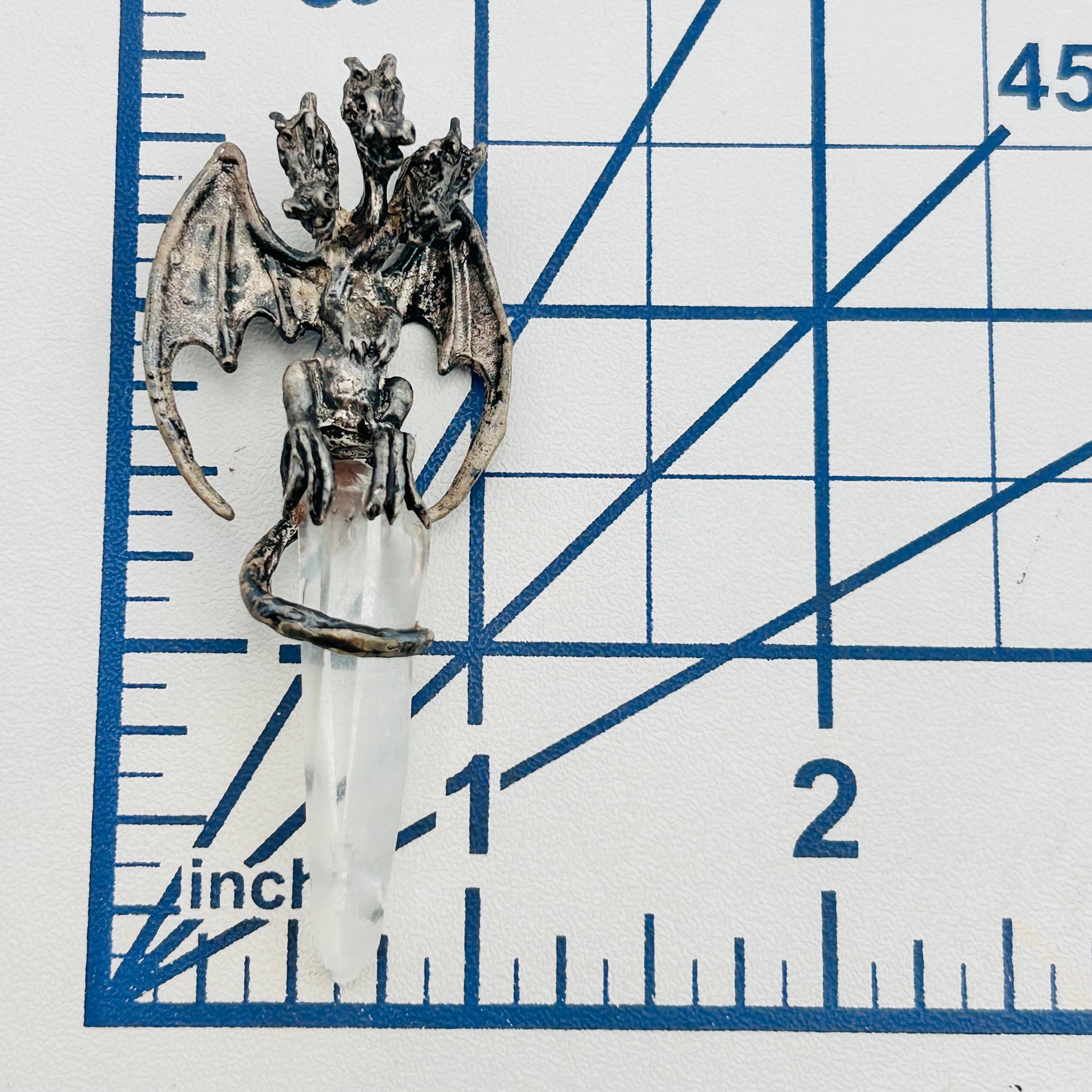 Sterling quartz three headed dragon pendant. 14.10g