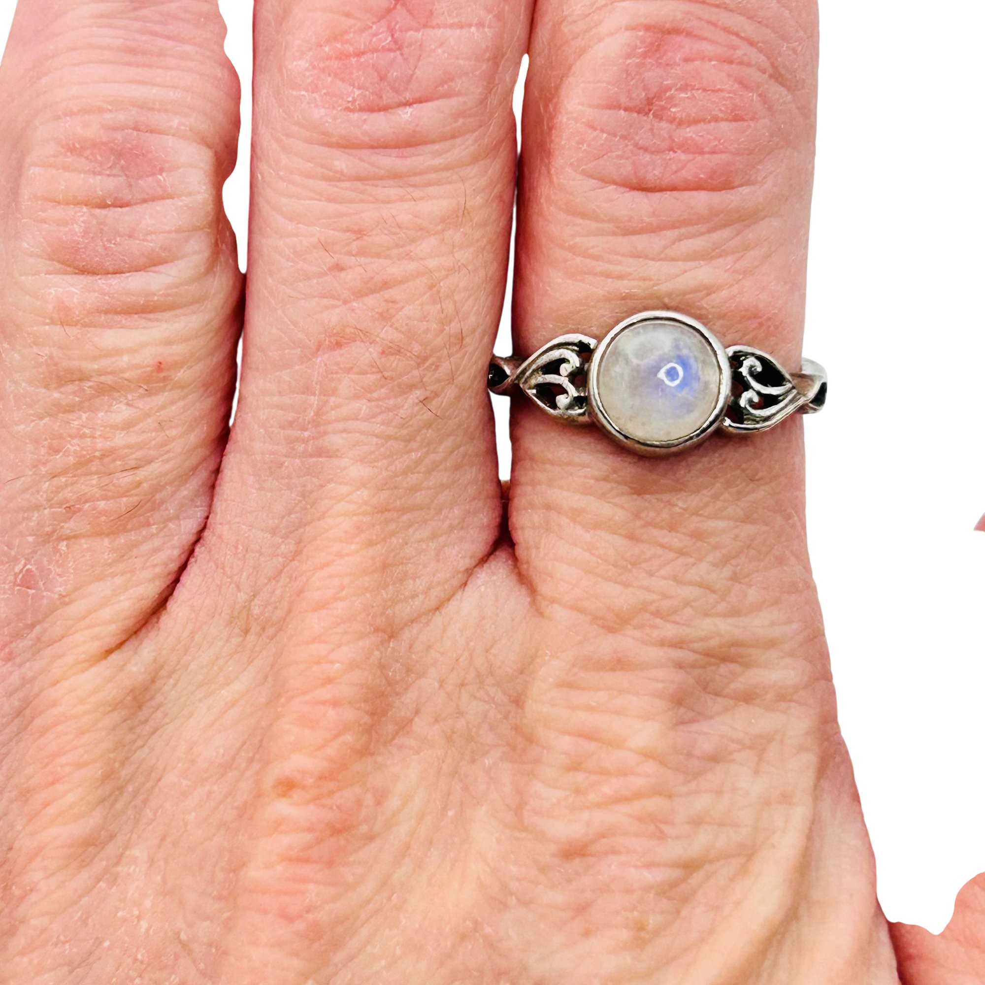 Sterling Moonstone Round Ring. Size 6.5