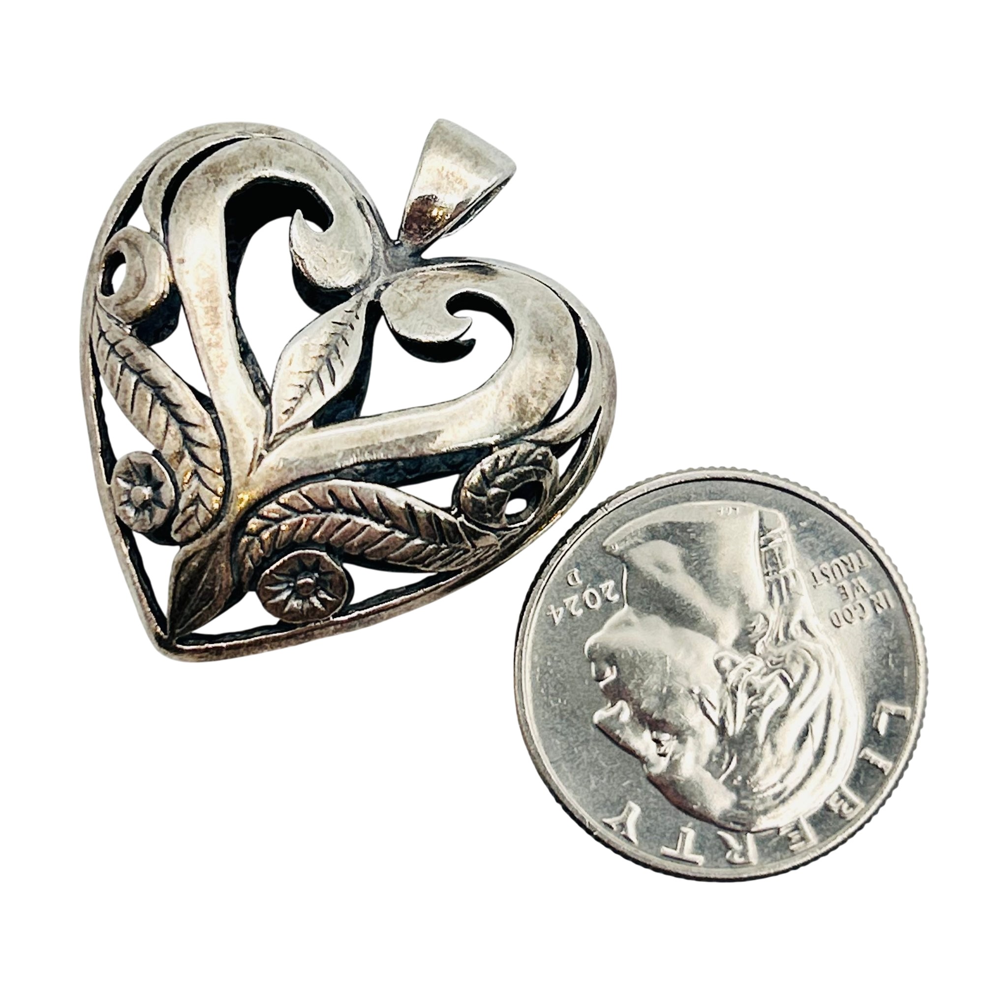 Sterling heart cut out pendant. 11.00g