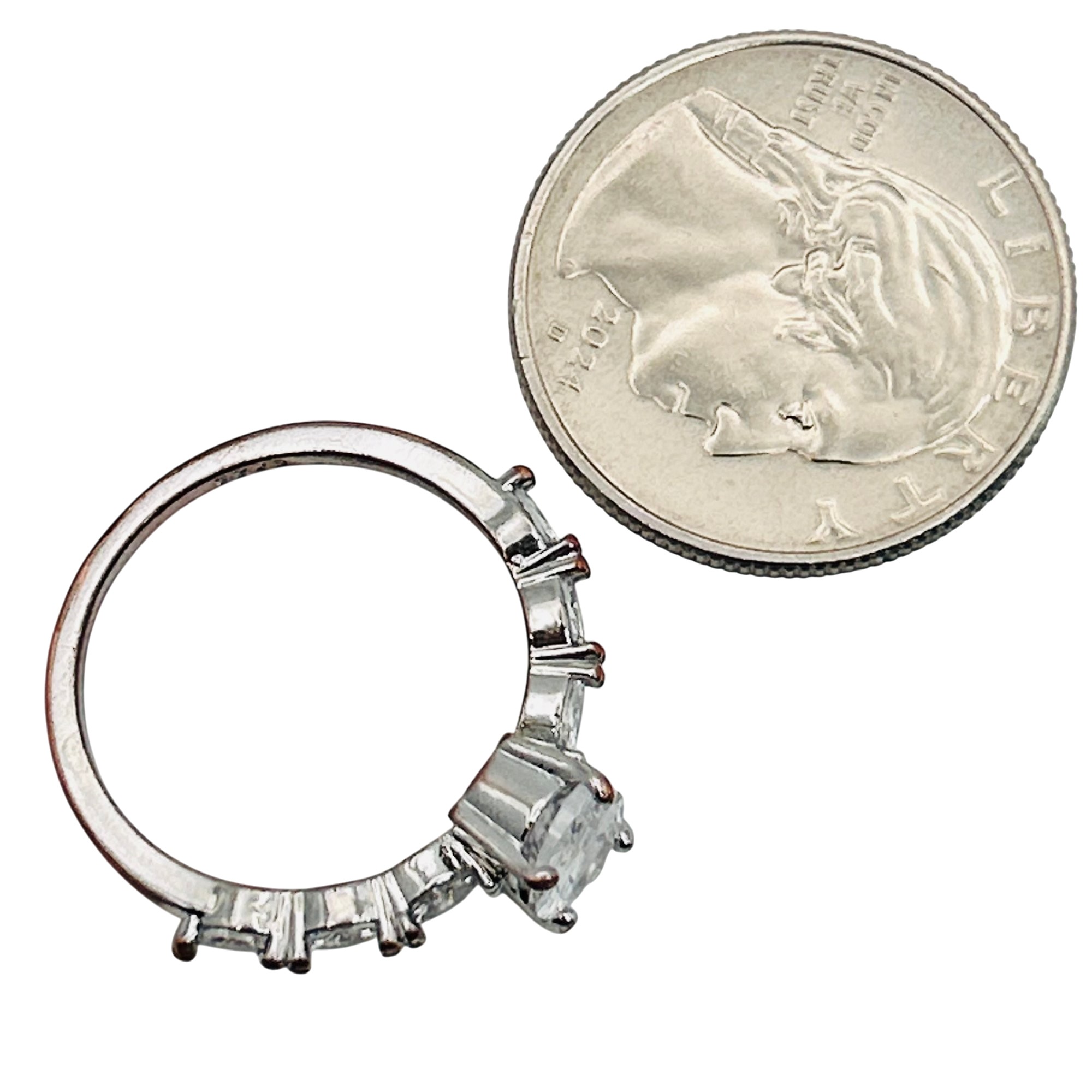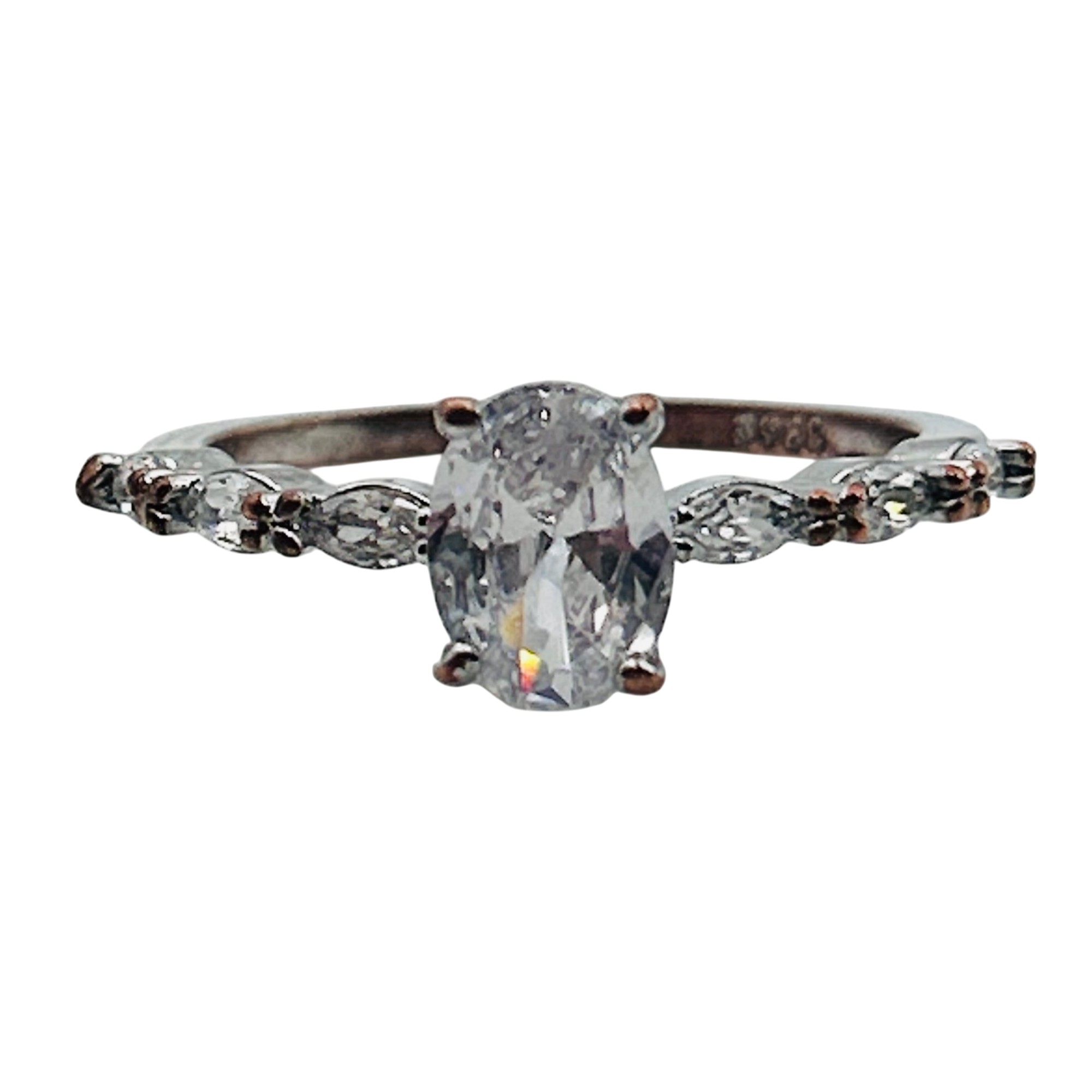 Sterling rhinestone oval ring. Size 9. 2.50g