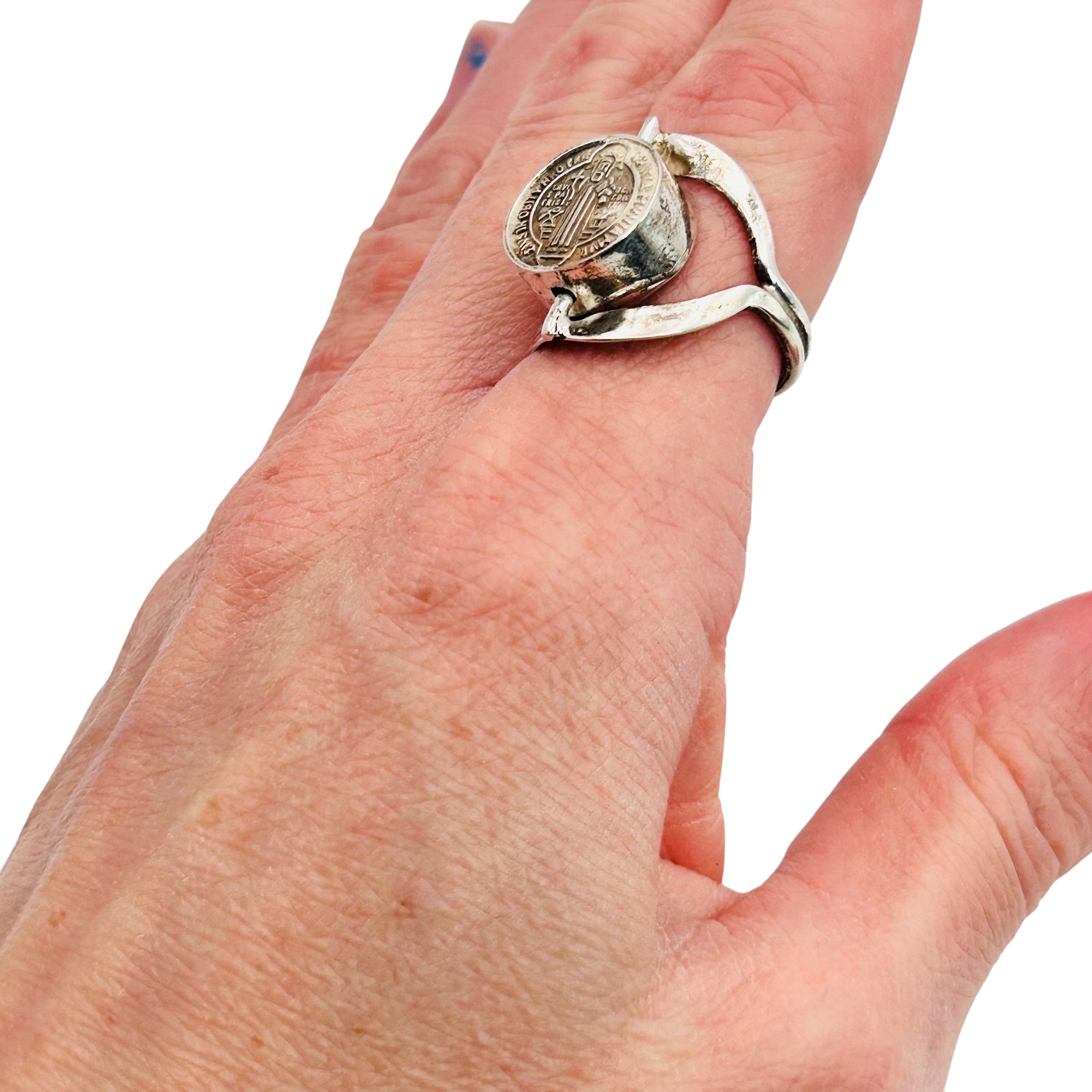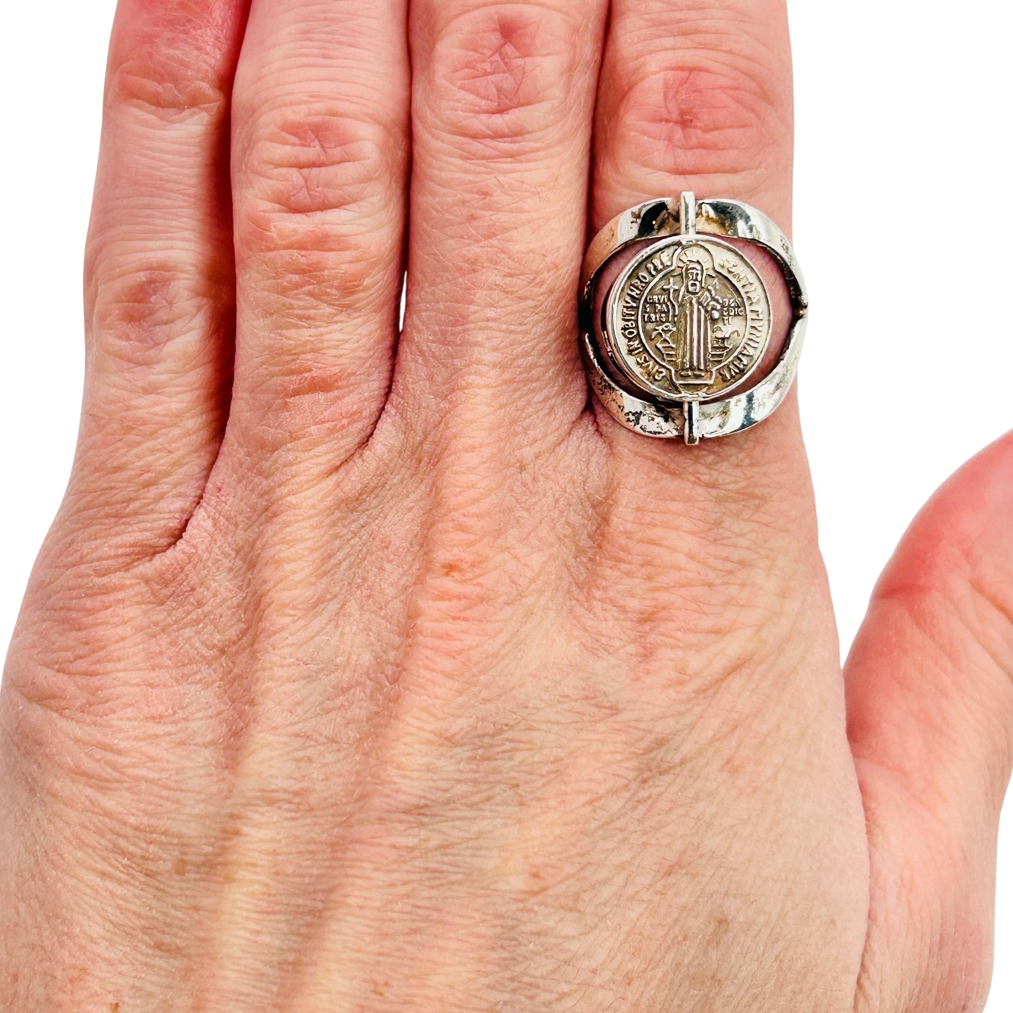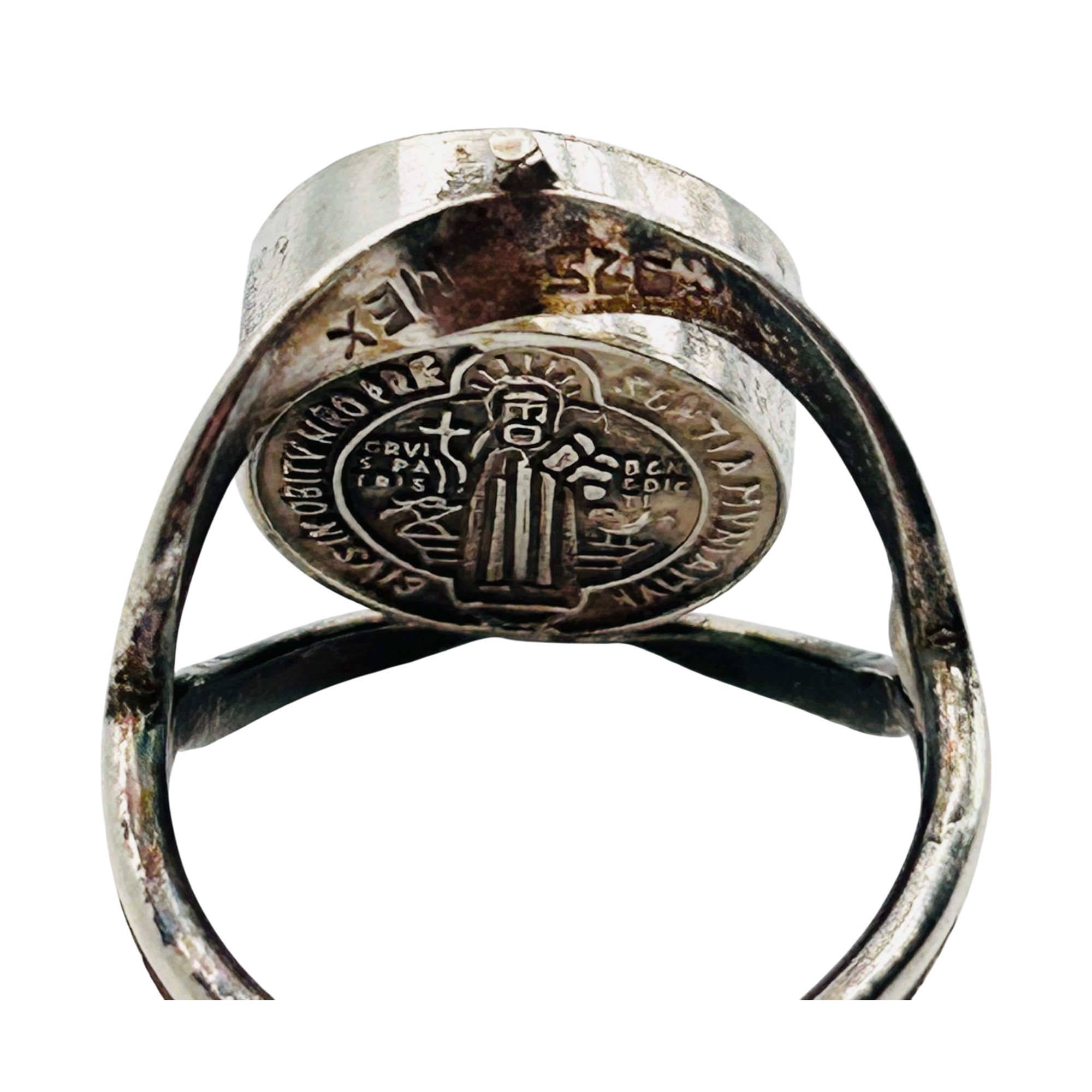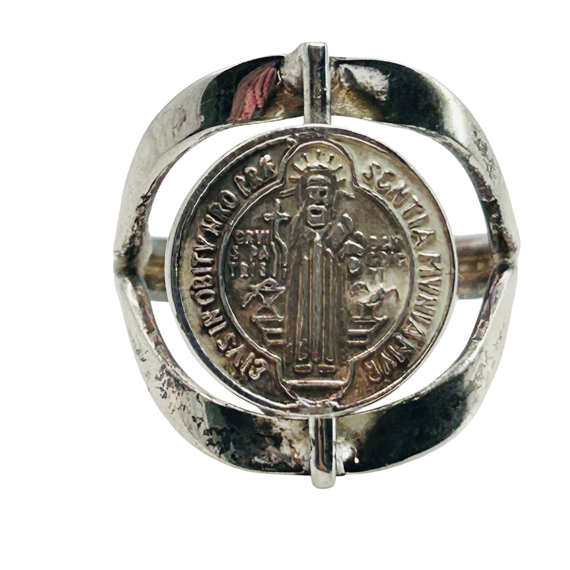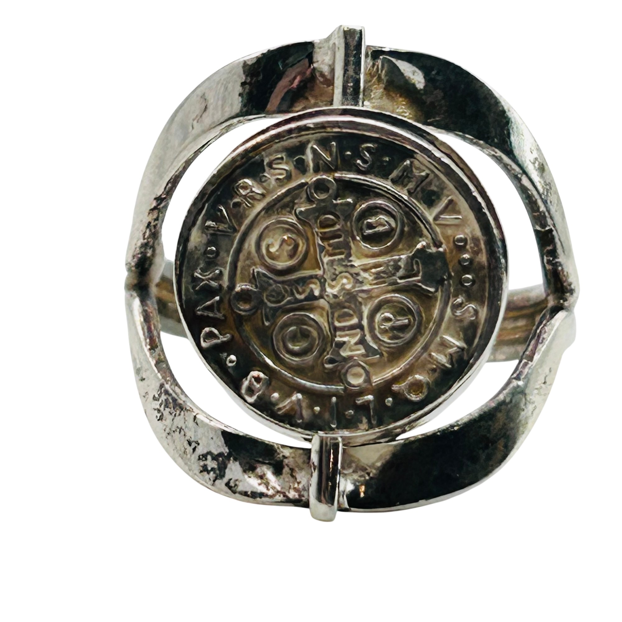 Mexico Sterling st. Benedict abbreviated spin ring. Size 7. 5.20g