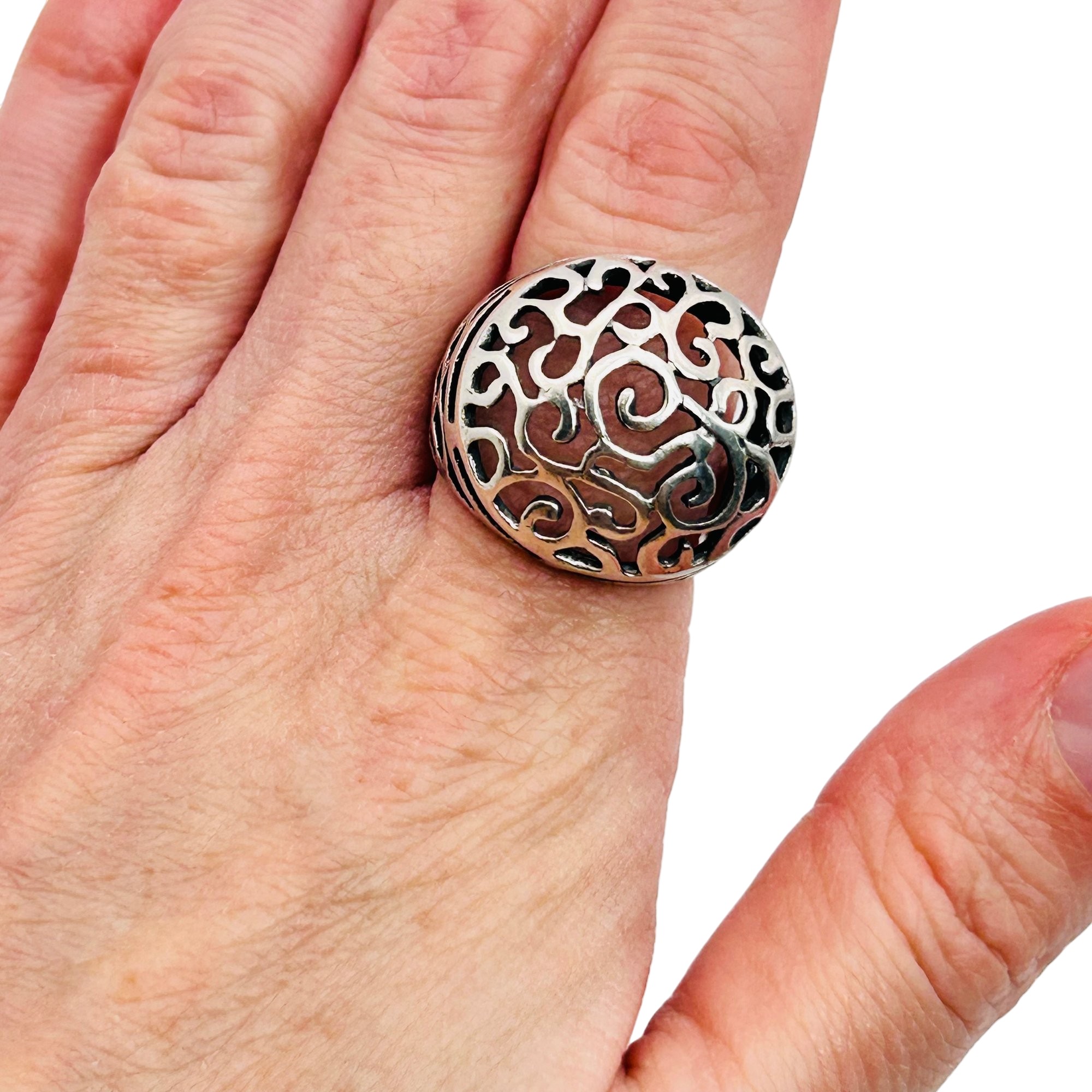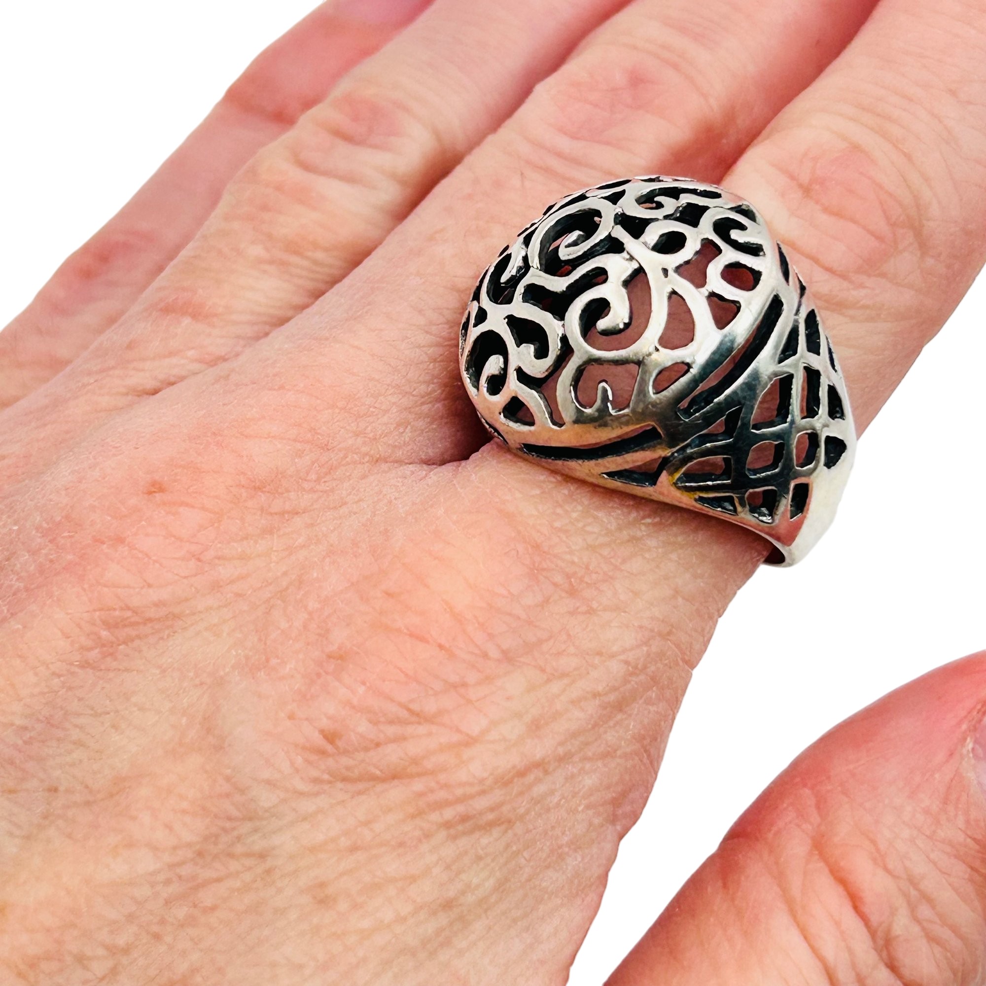 Mexico Sterling filigree dome ring. Size 9. 9.07g