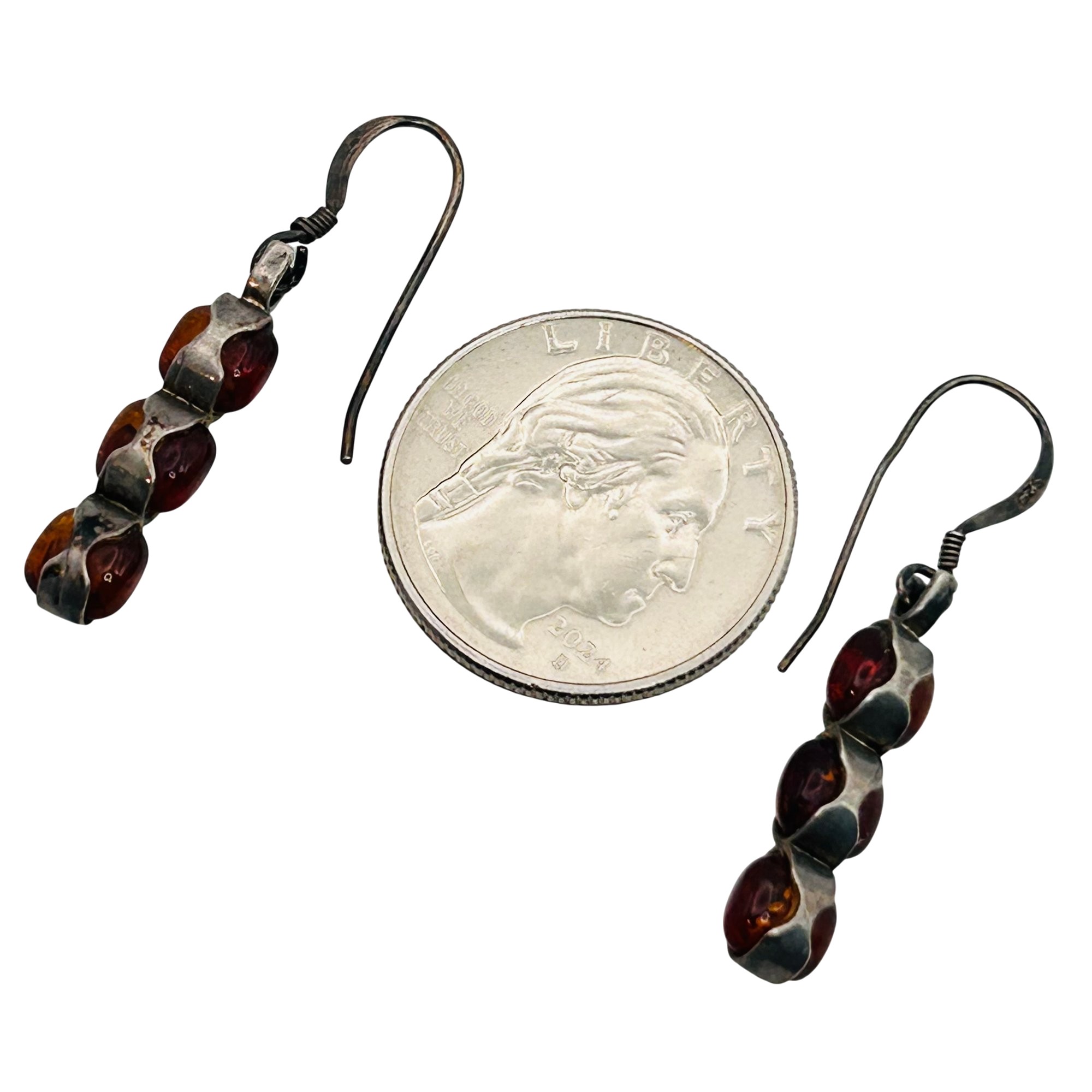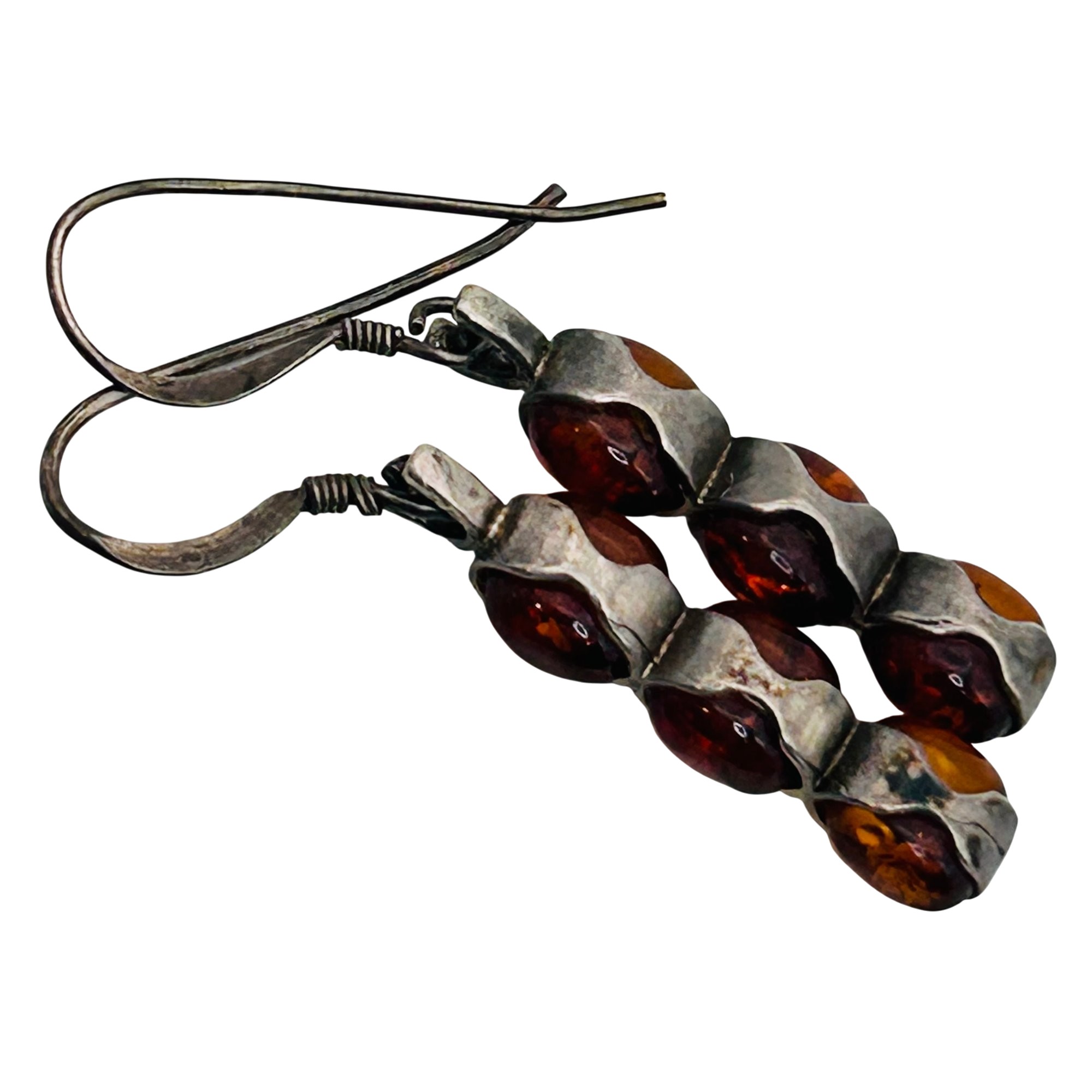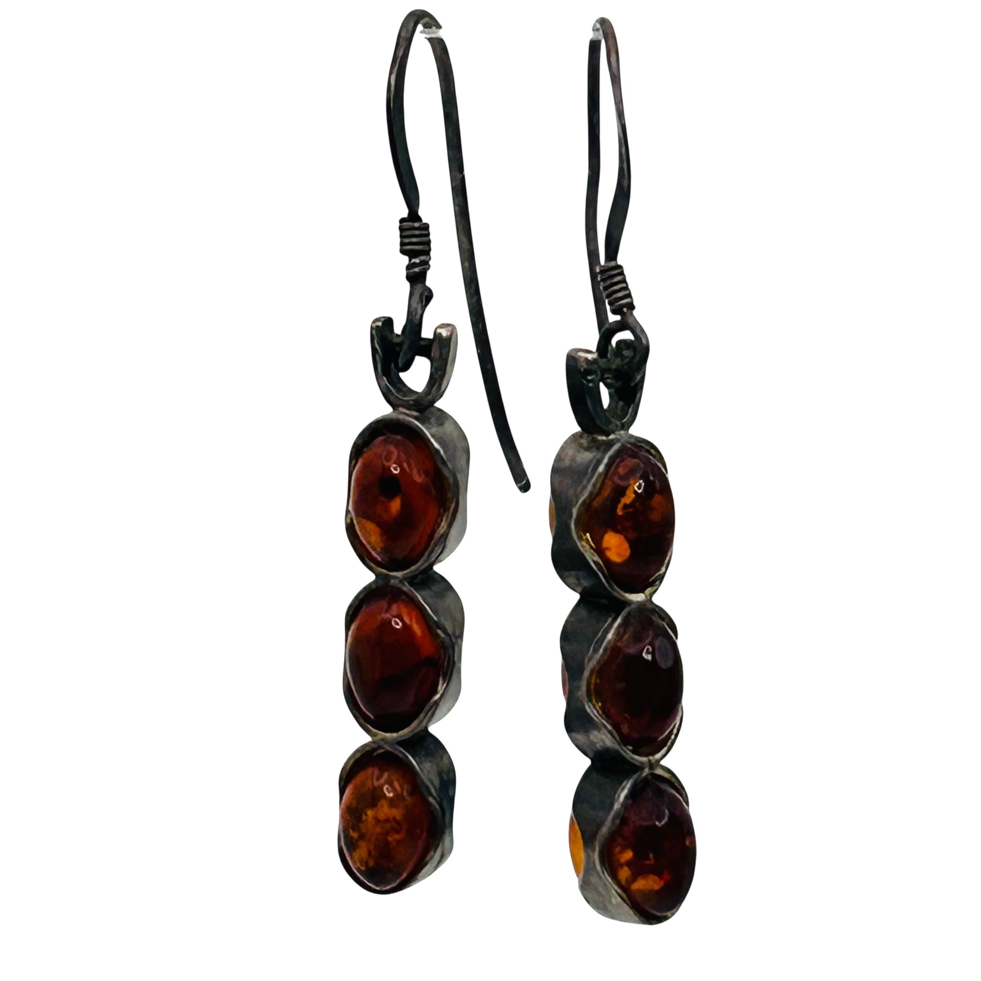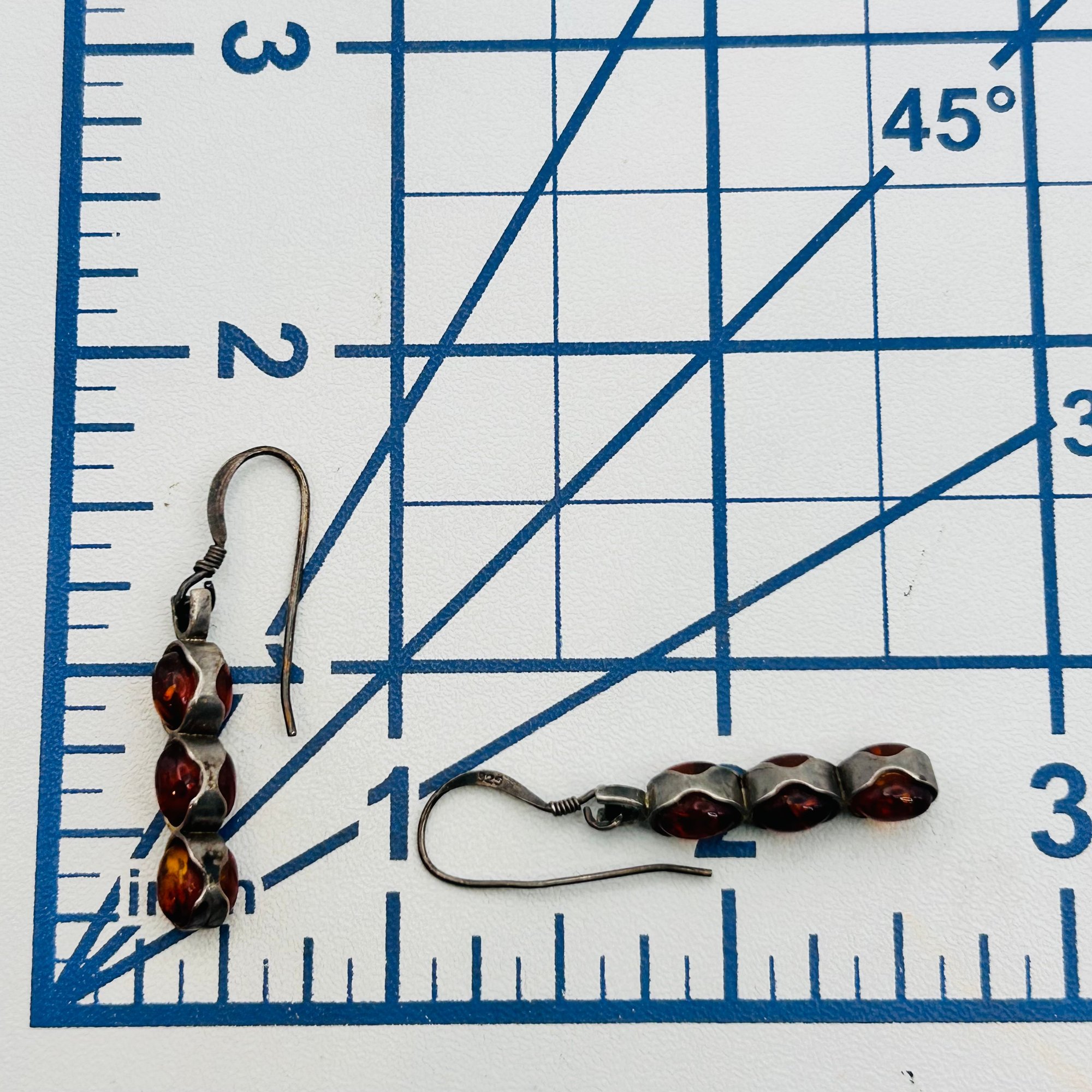 Sterling Amber 3 stone hook back earrings. 3.10g
