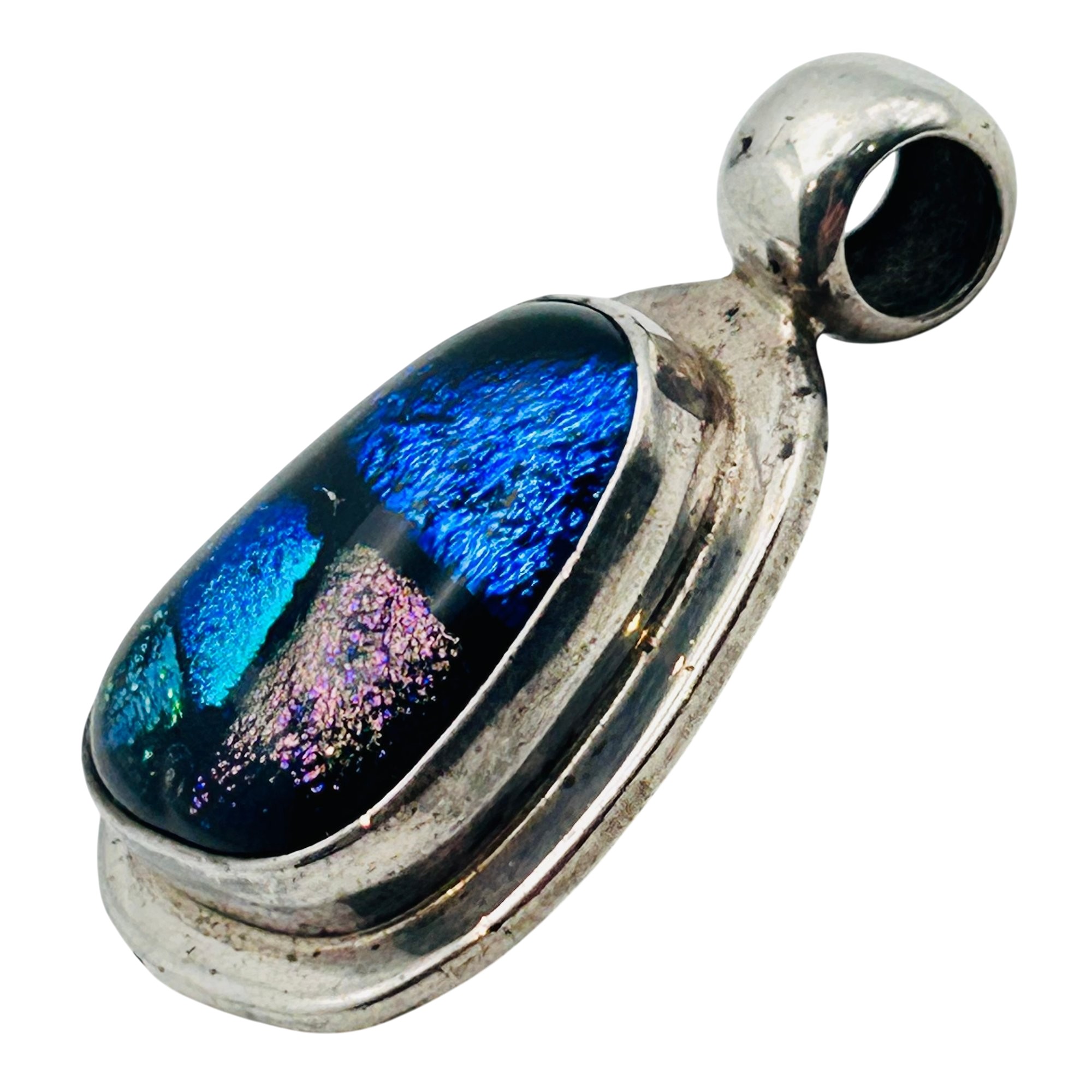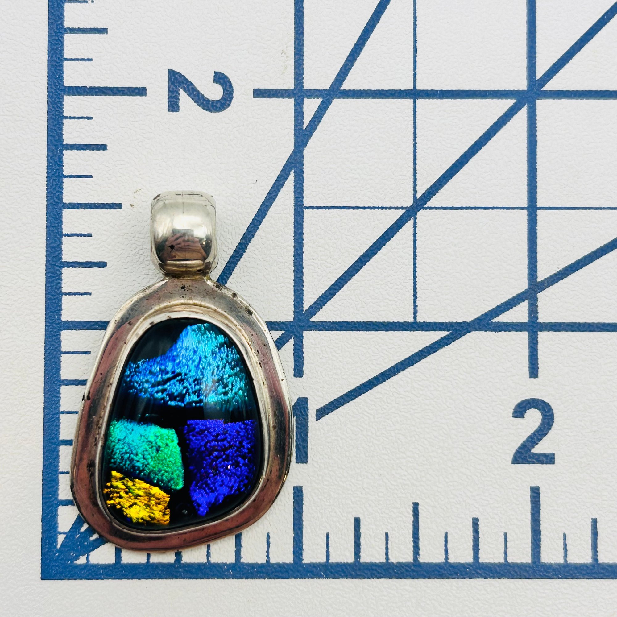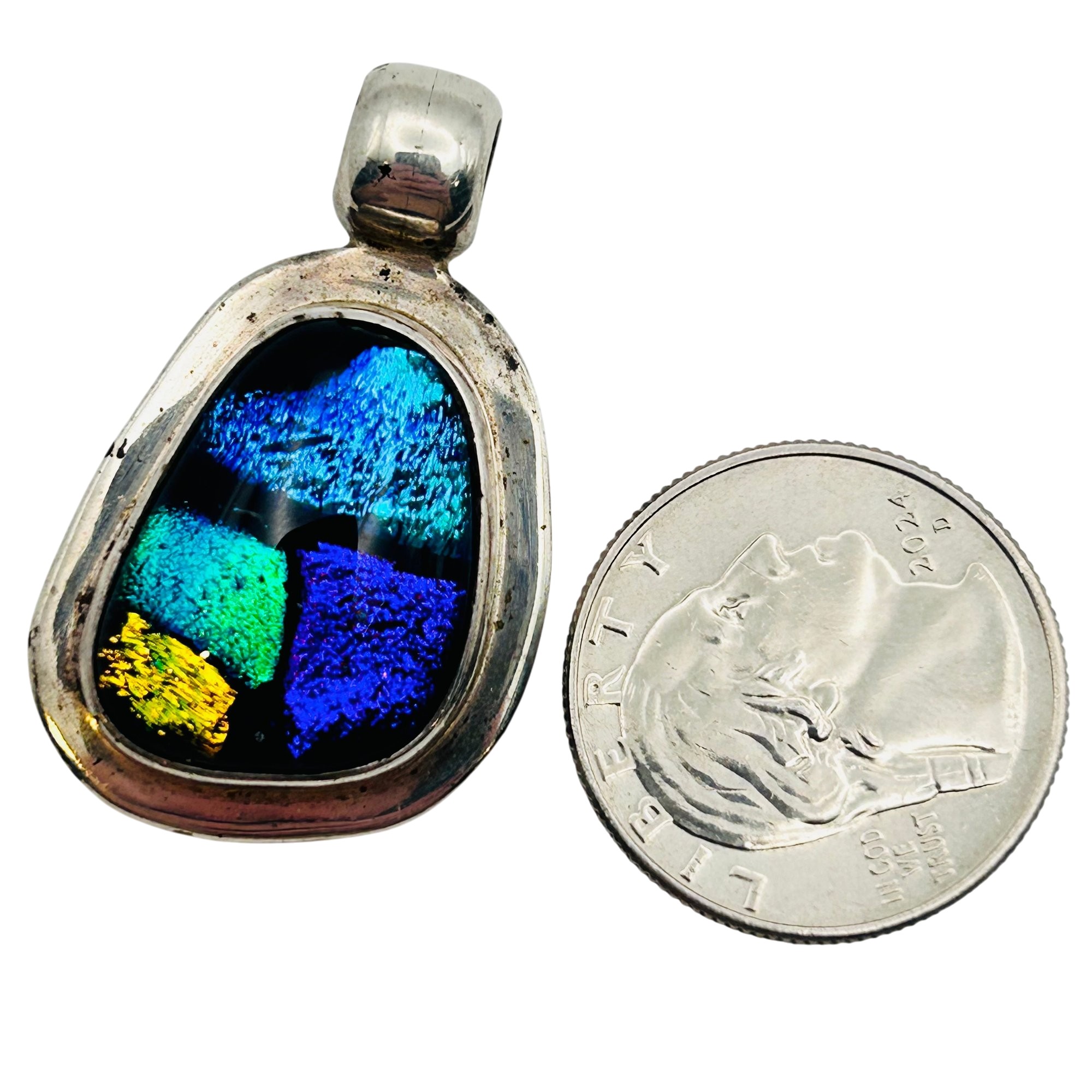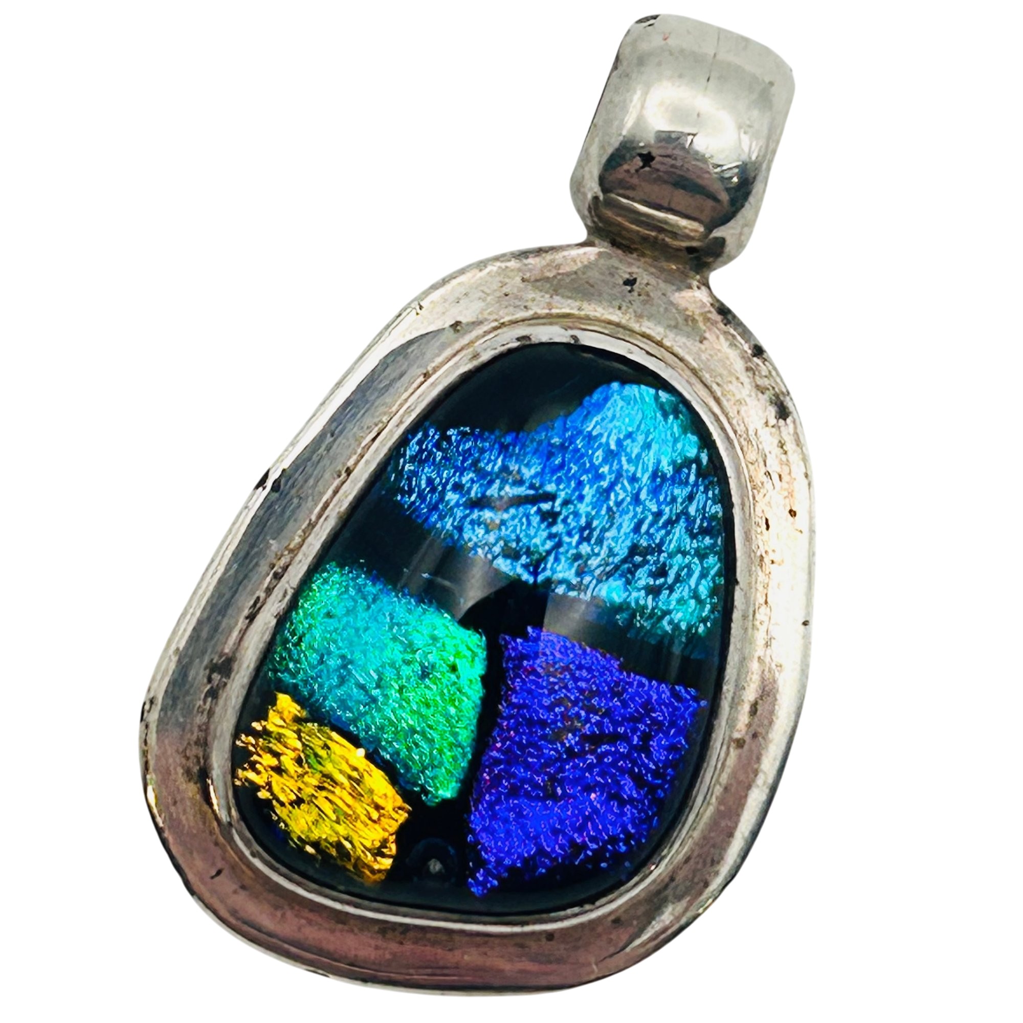 Mexico Sterling dichroic glass multi color pendant. 13.60g