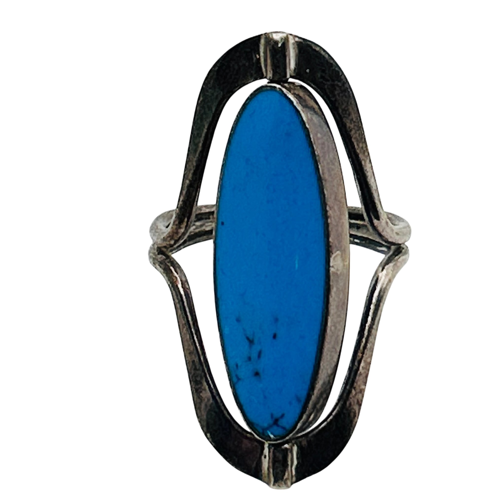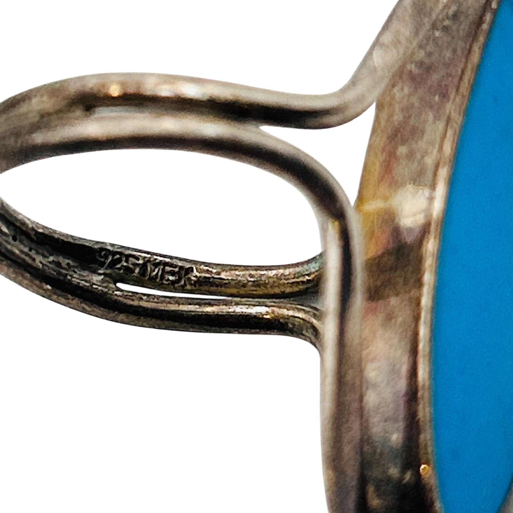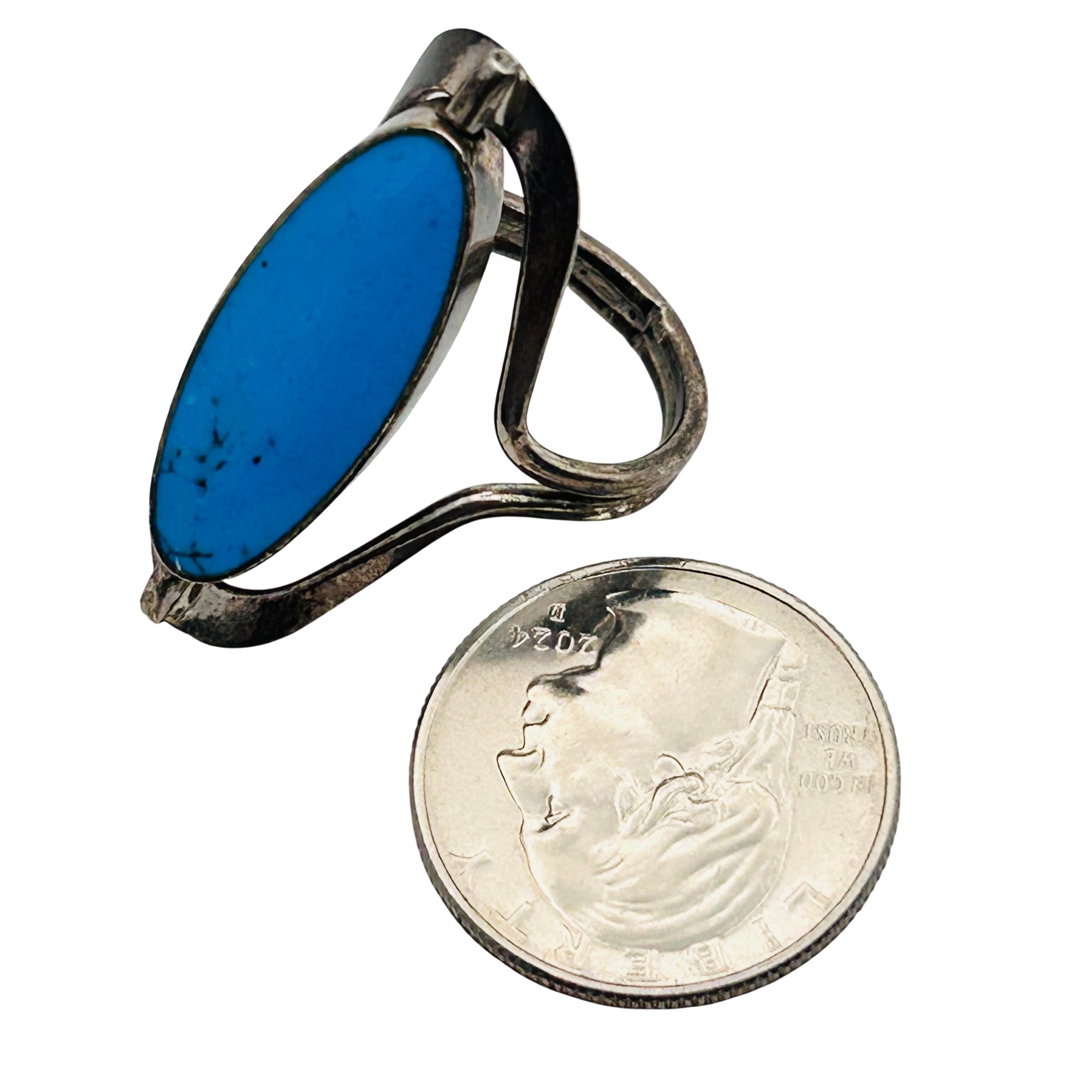 Mexico Sterling turquoise and black stone spin statement ring. Size 9. 6.90g