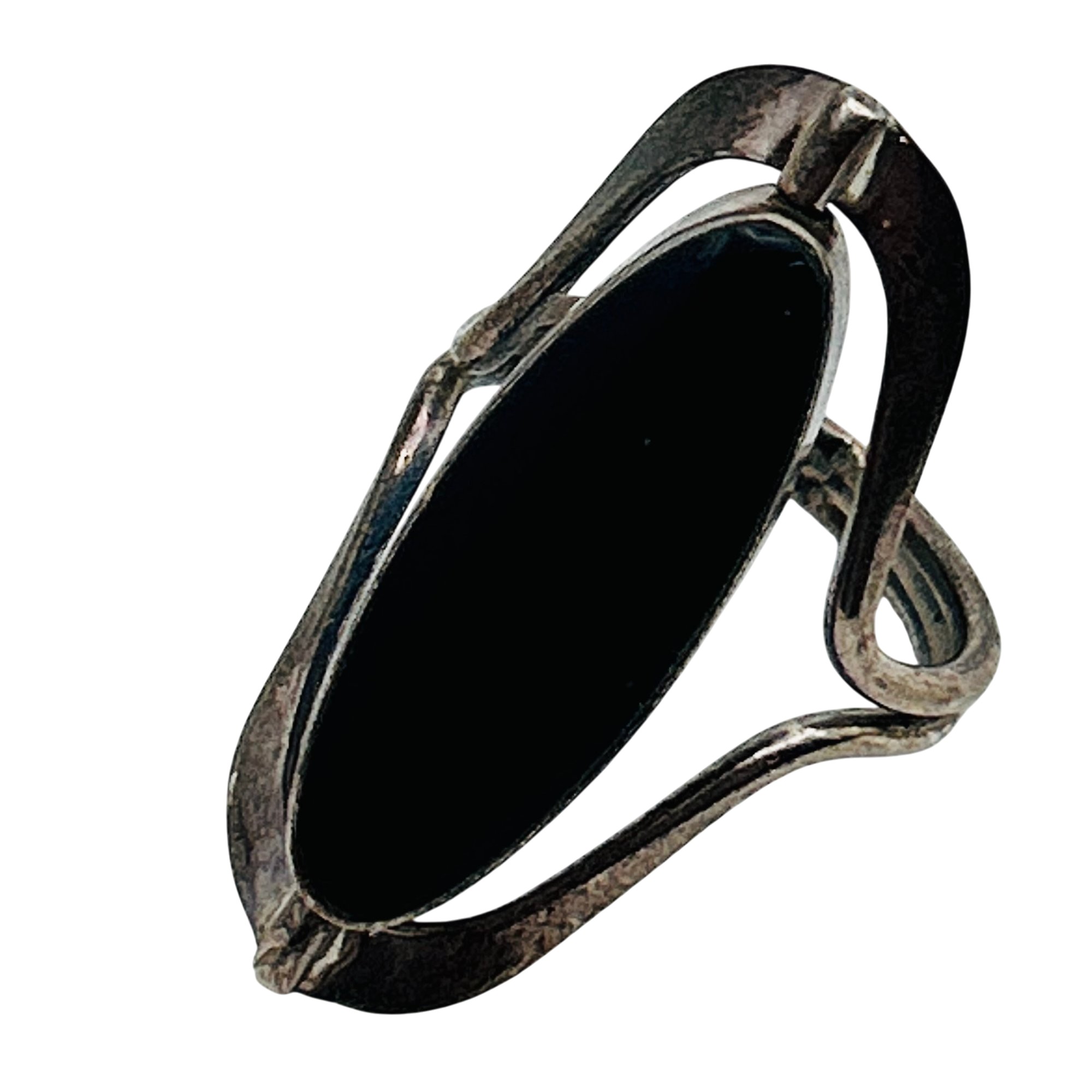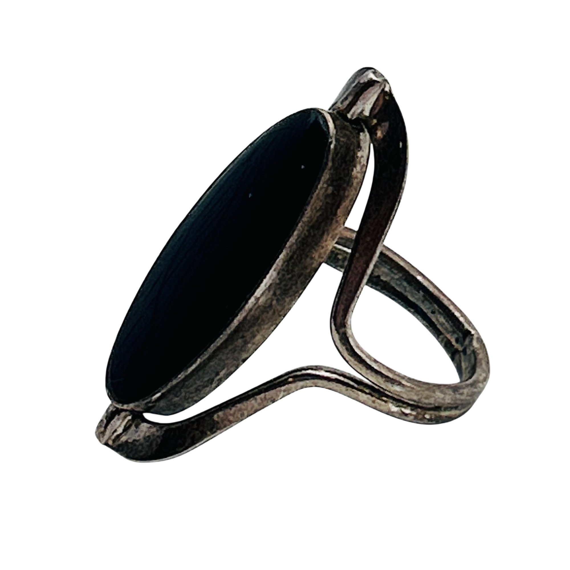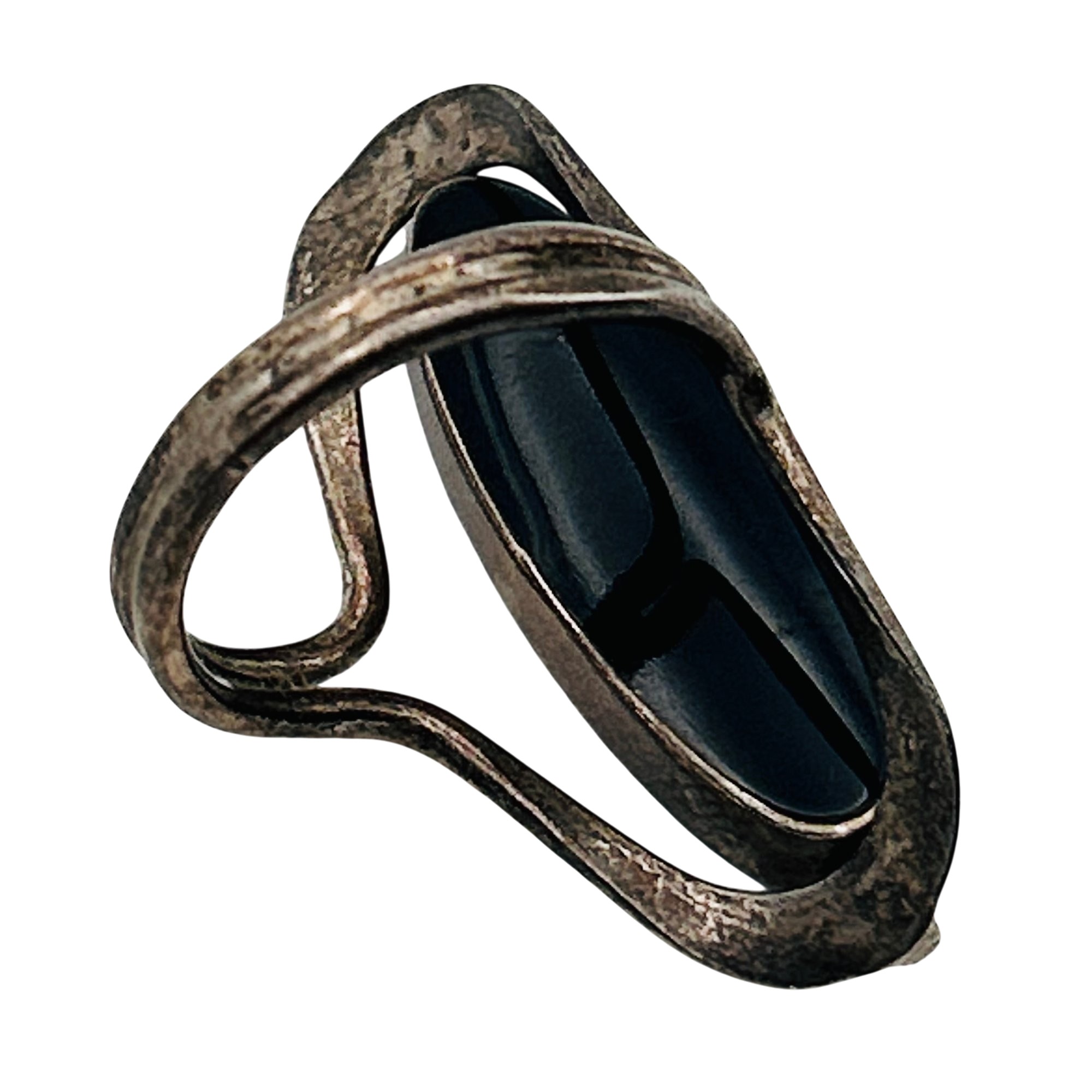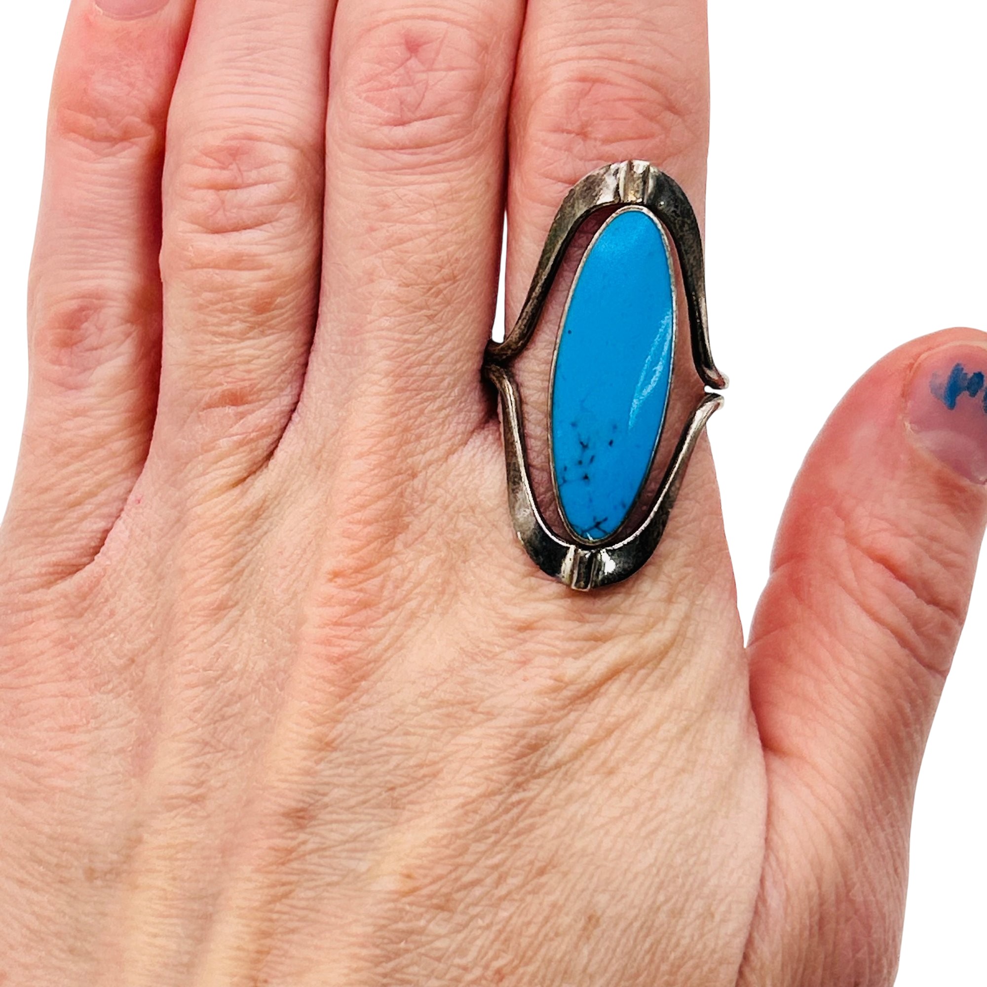 Mexico Sterling turquoise and black stone spin statement ring. Size 9. 6.90g