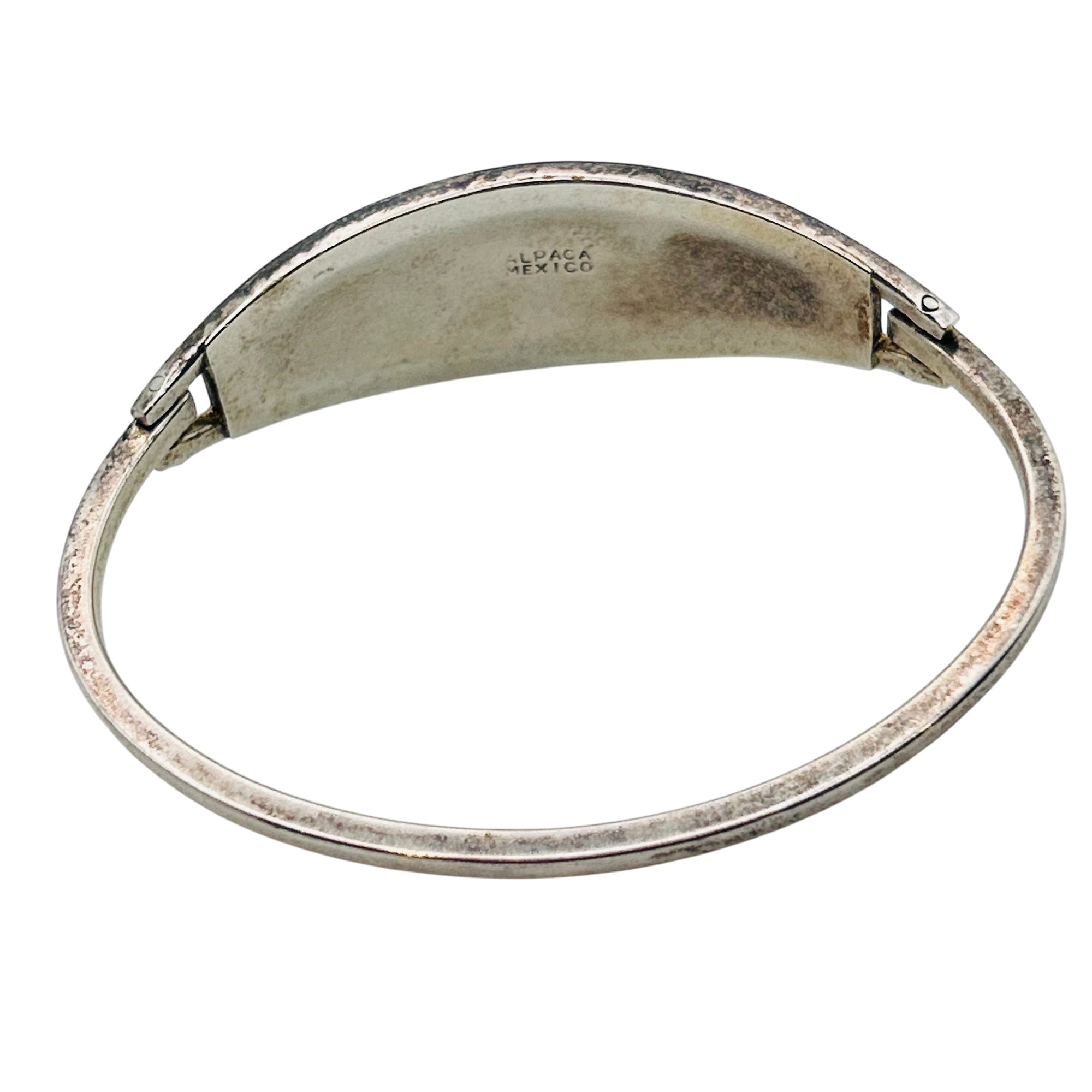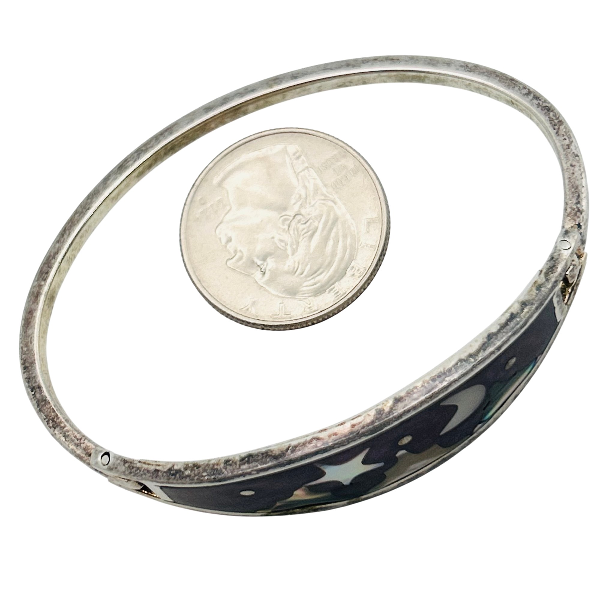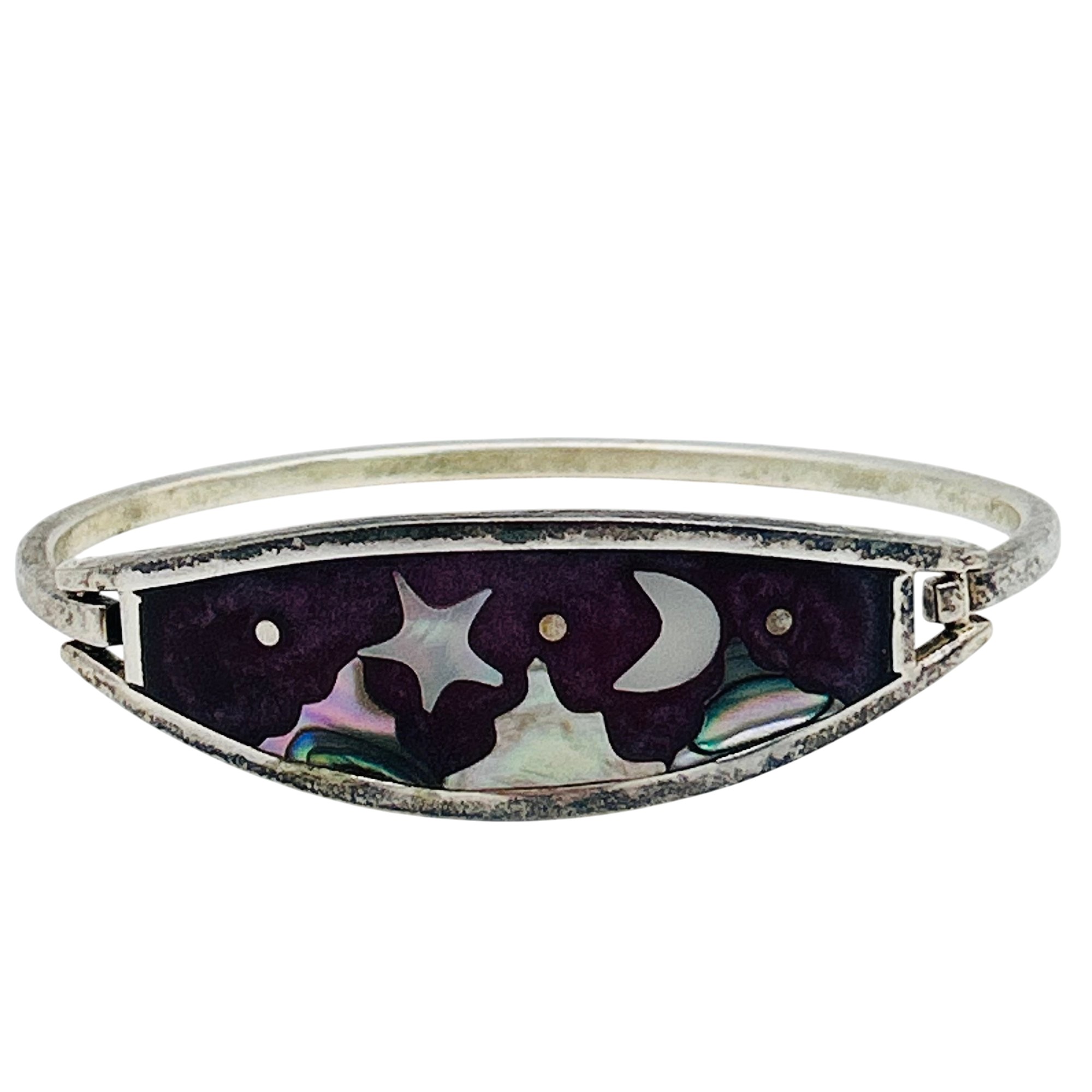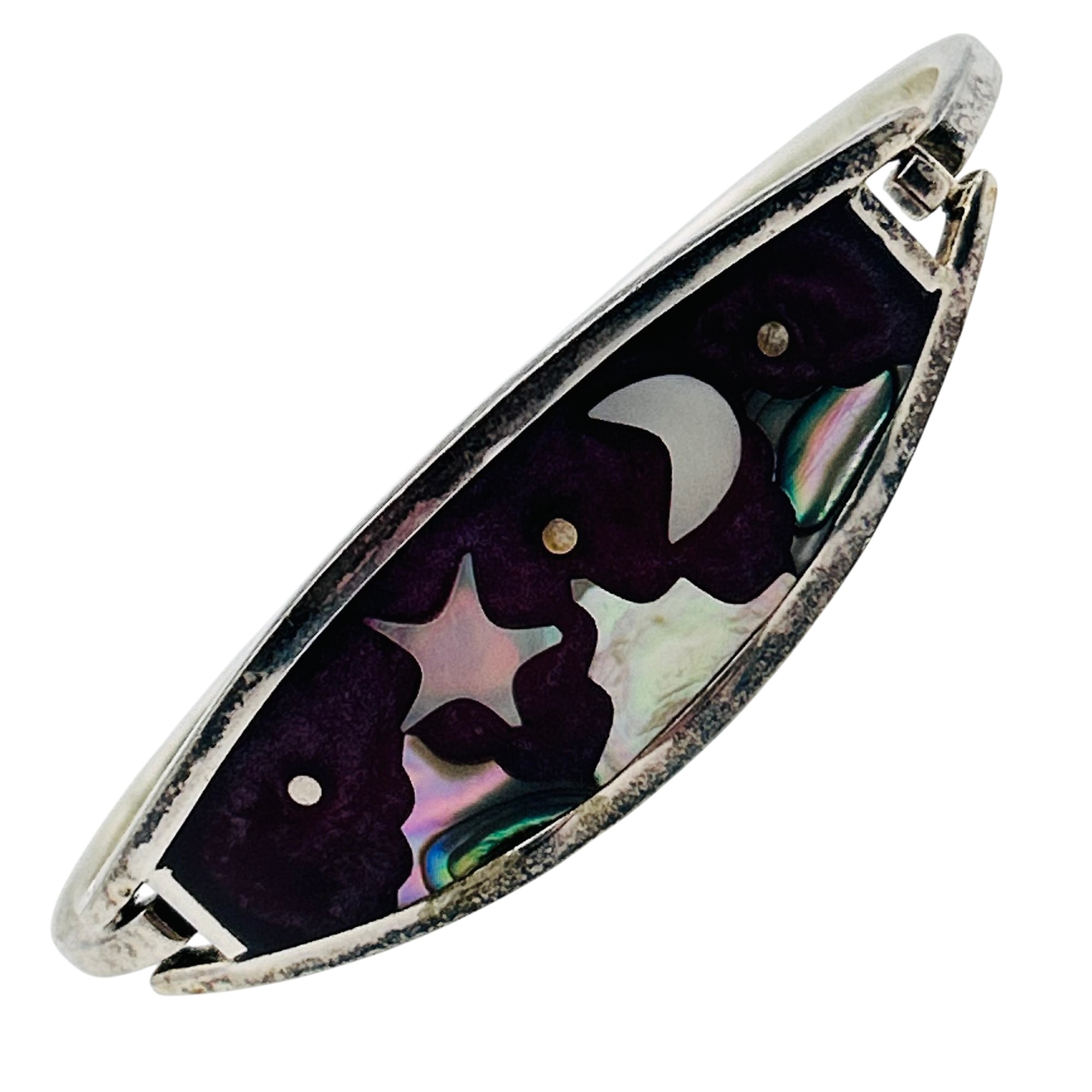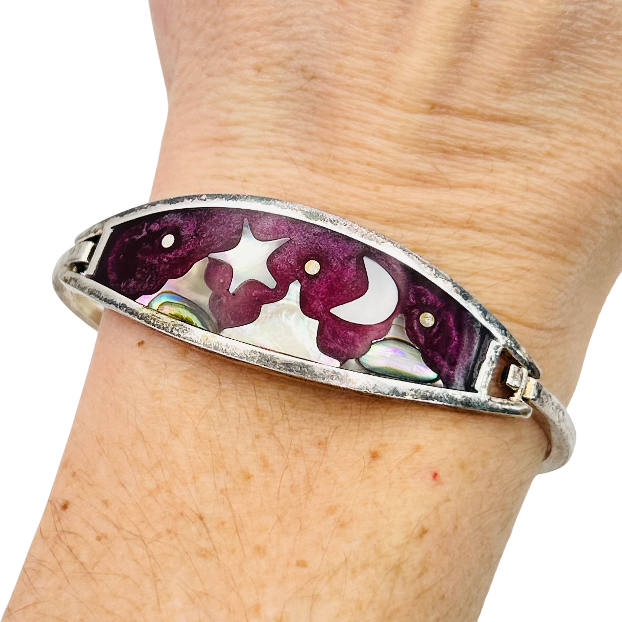 Alpaca Mexico Silver abalone shell and purple inlay cuff bracelet. 13.90g