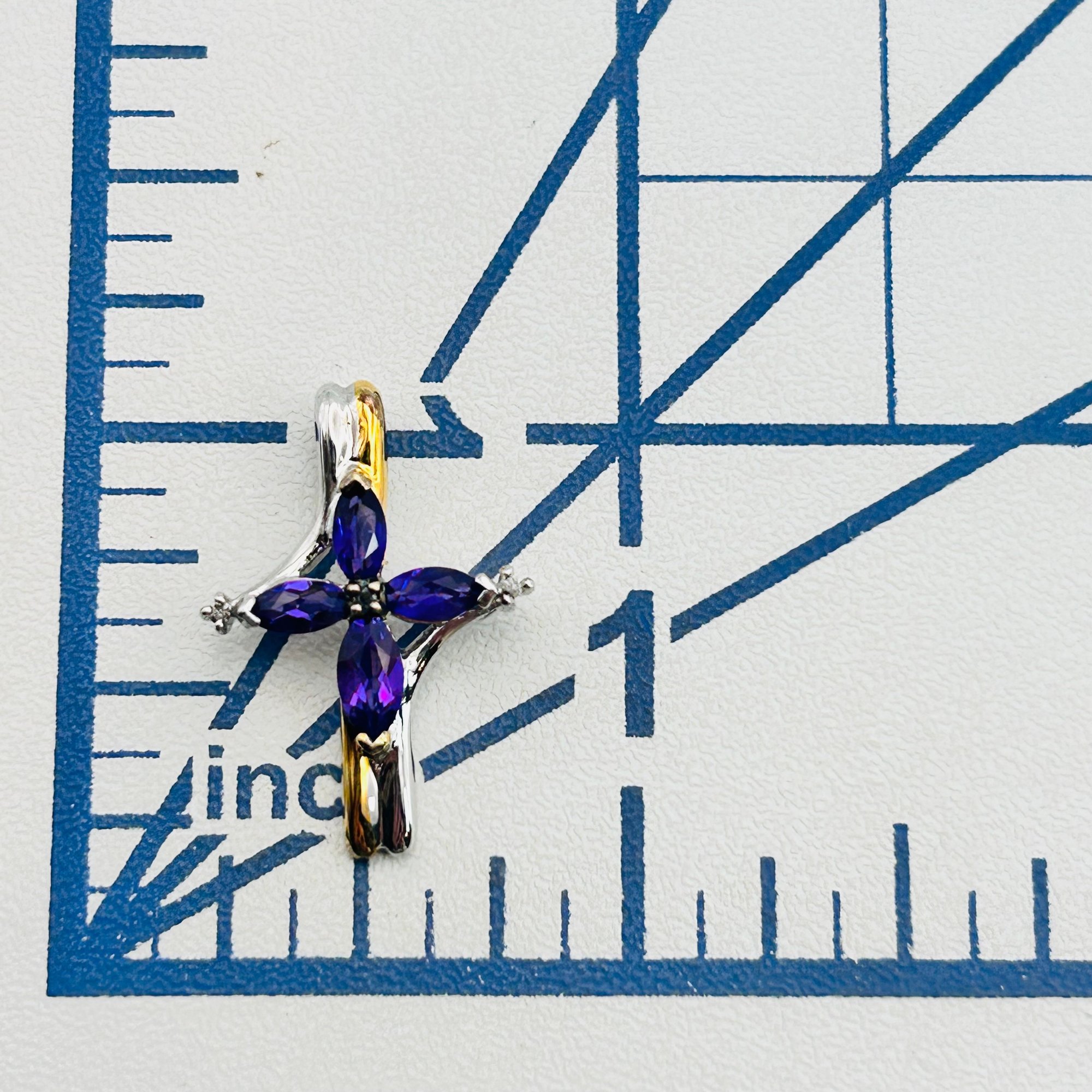 BGE Sterling amethyst and topaz cross pendant. 1.70g