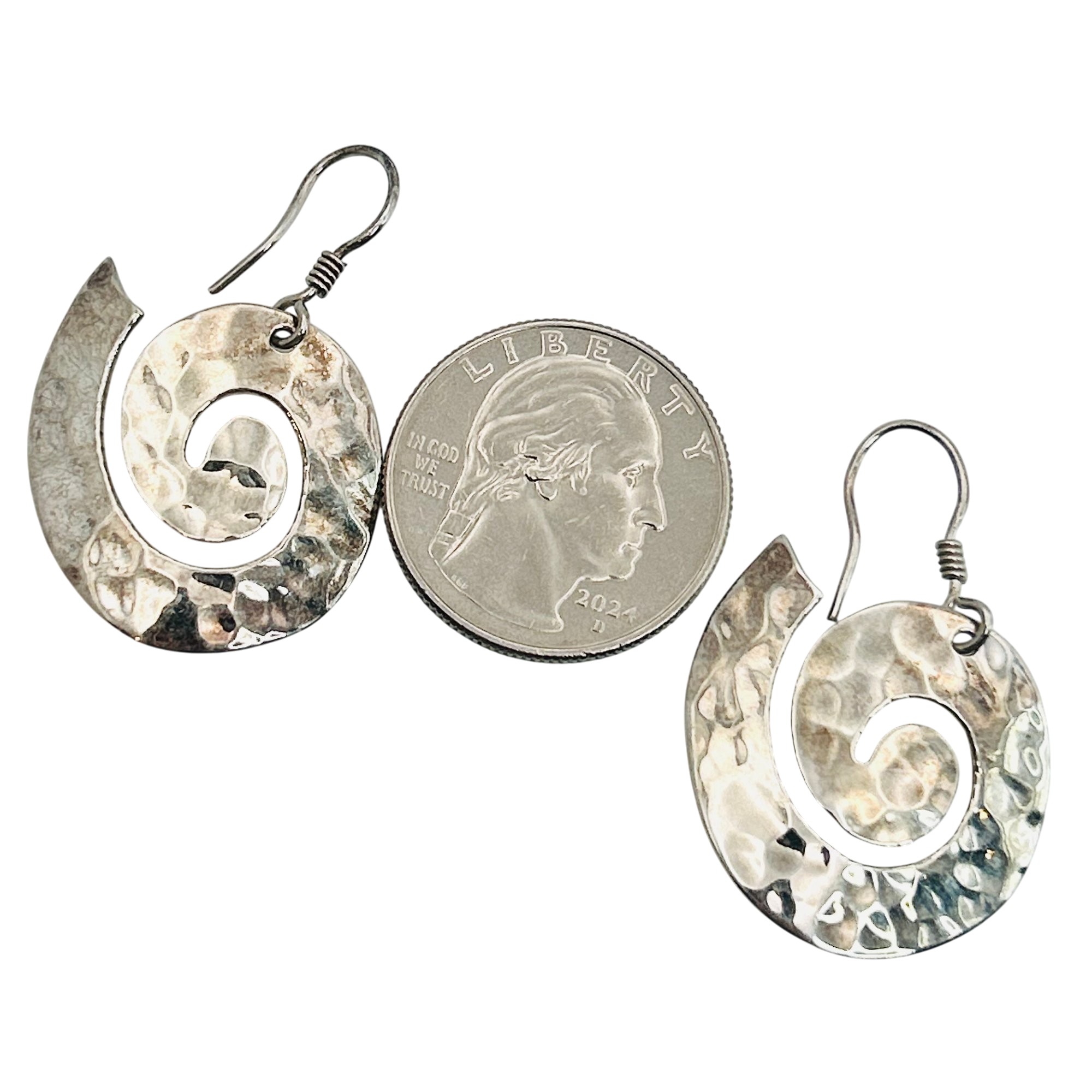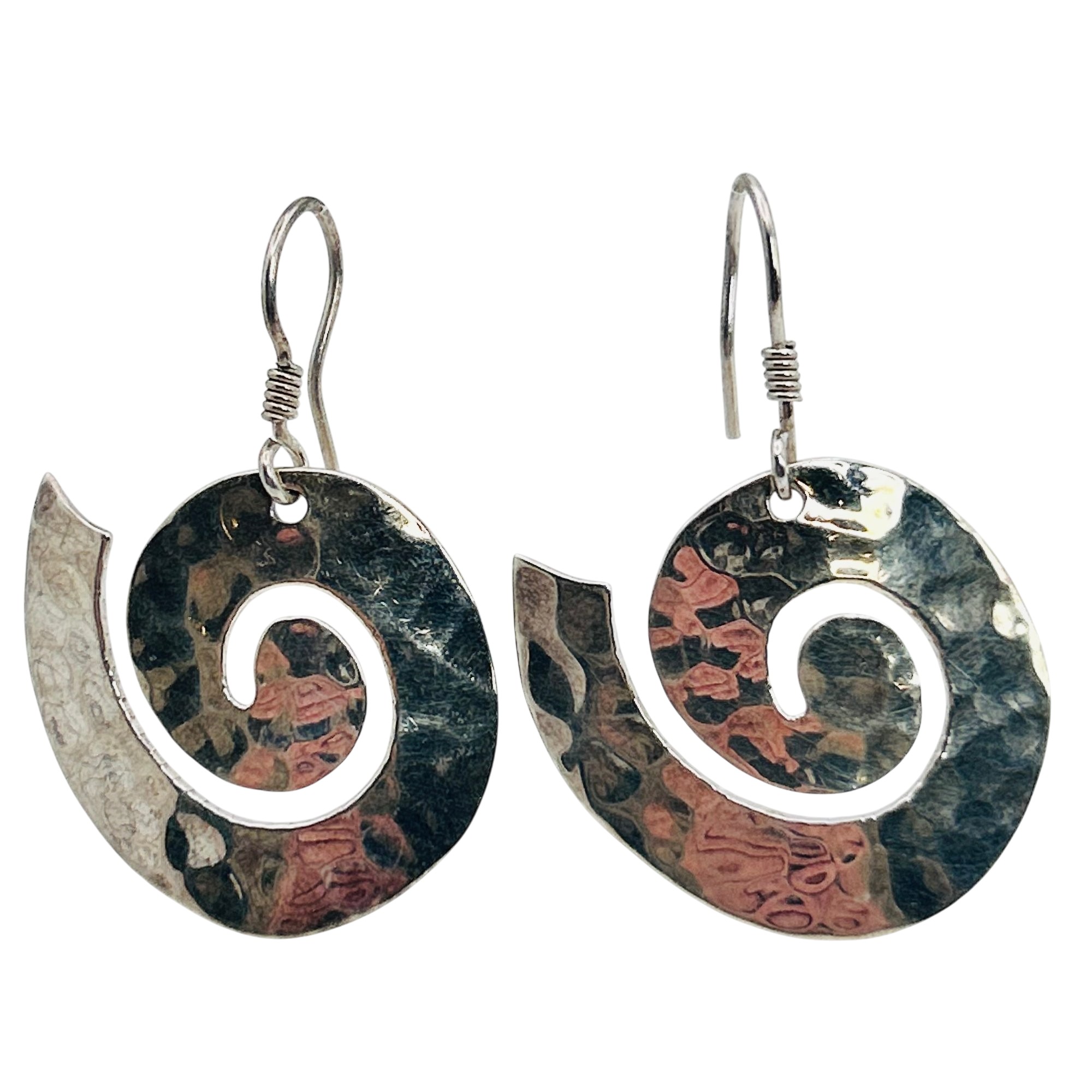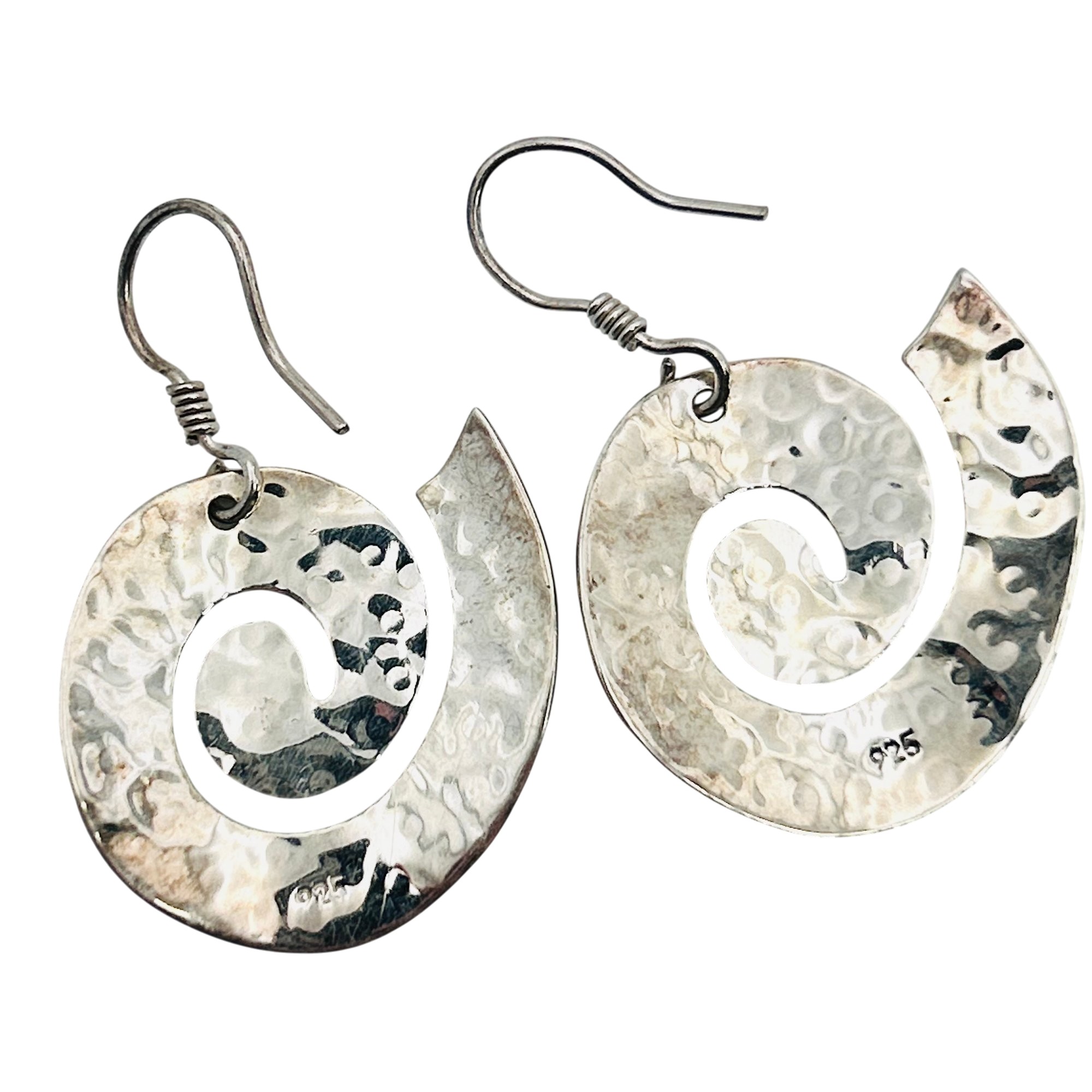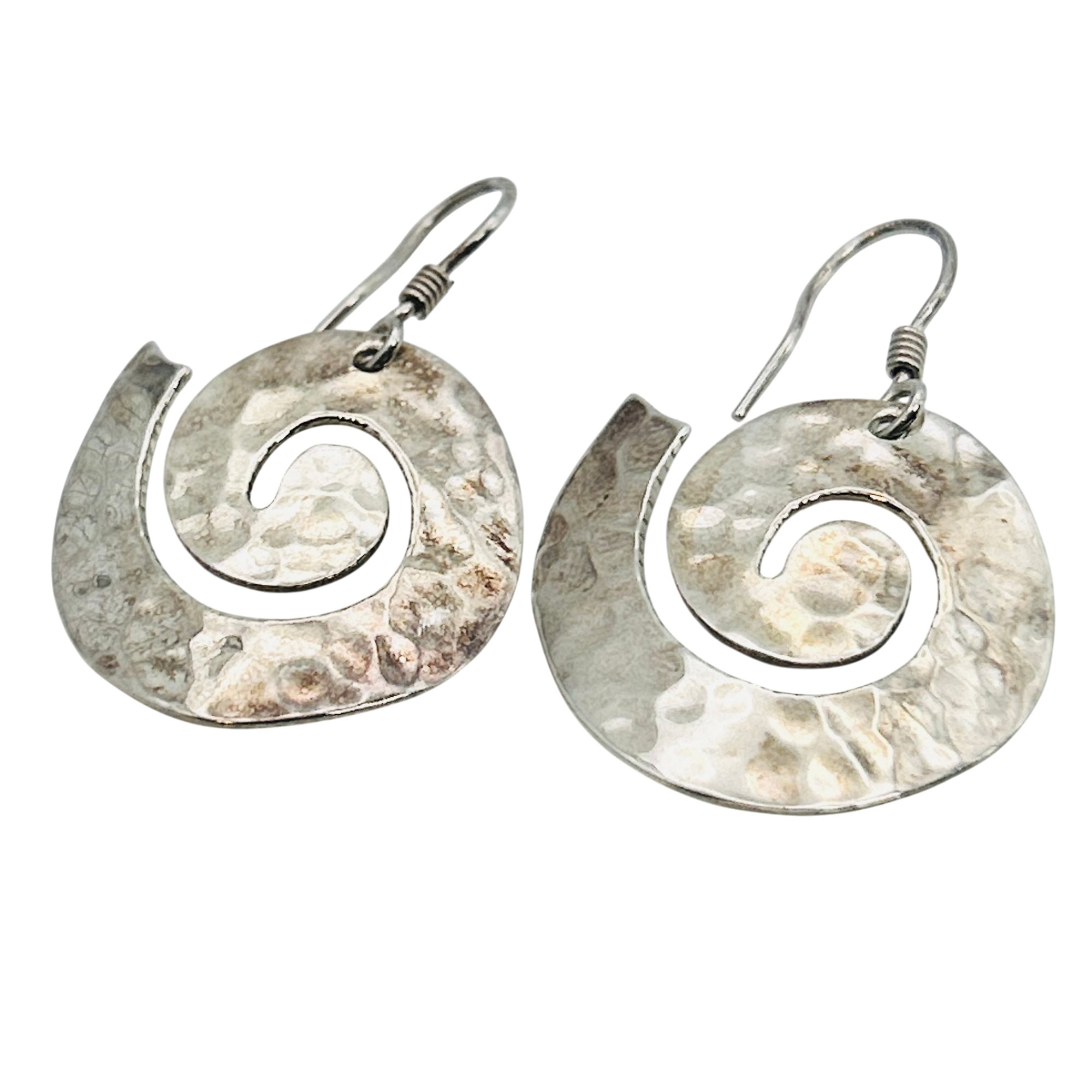 Sterling swirl hammered hook back earring. 7.00g