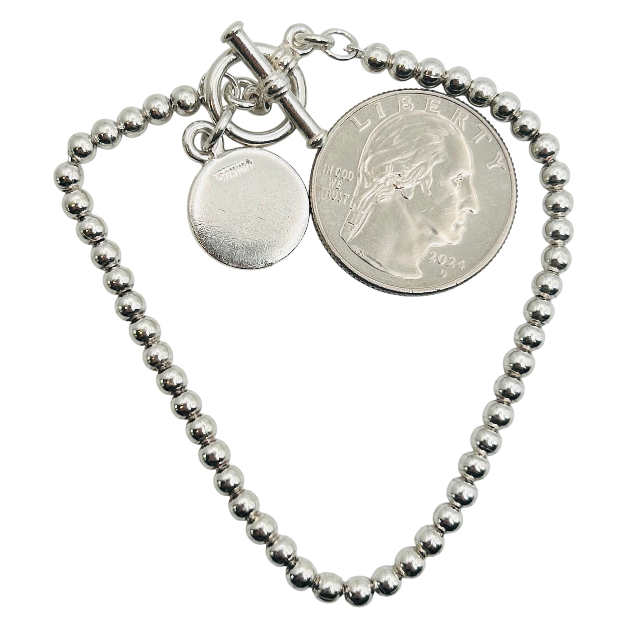 Sterling Bead Chain Toggle Clasp Bracelet