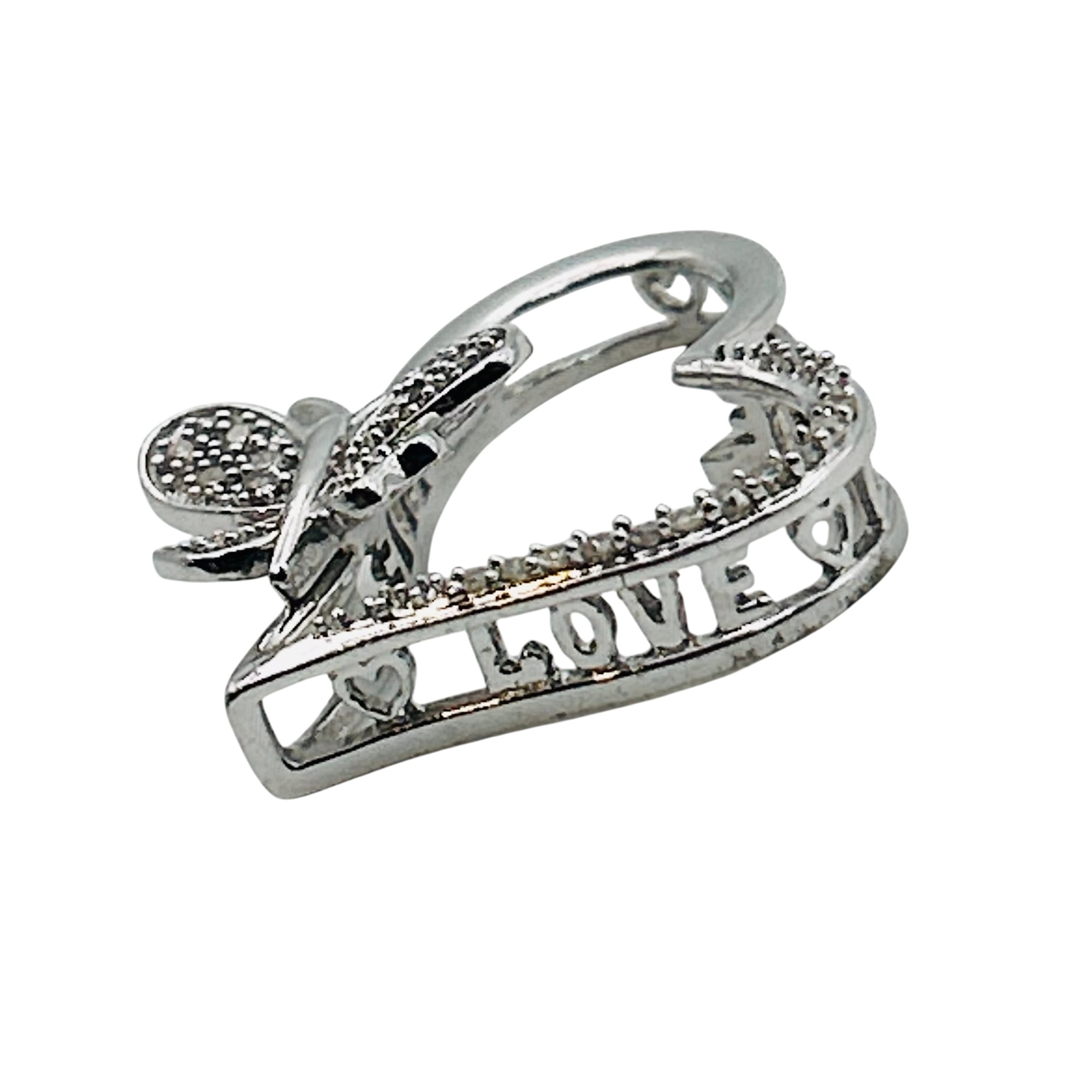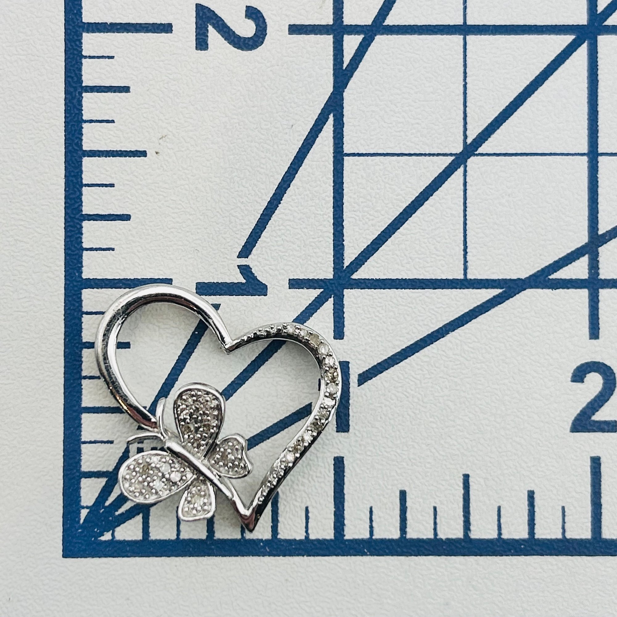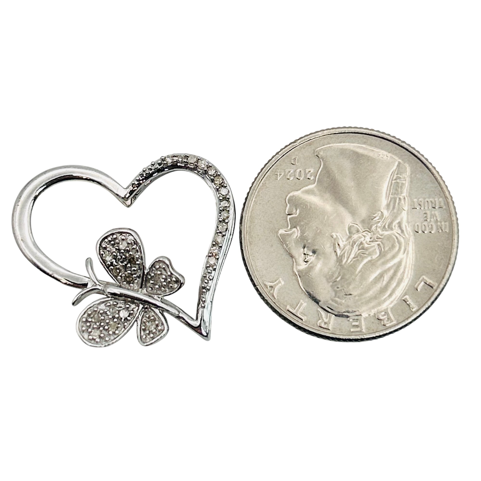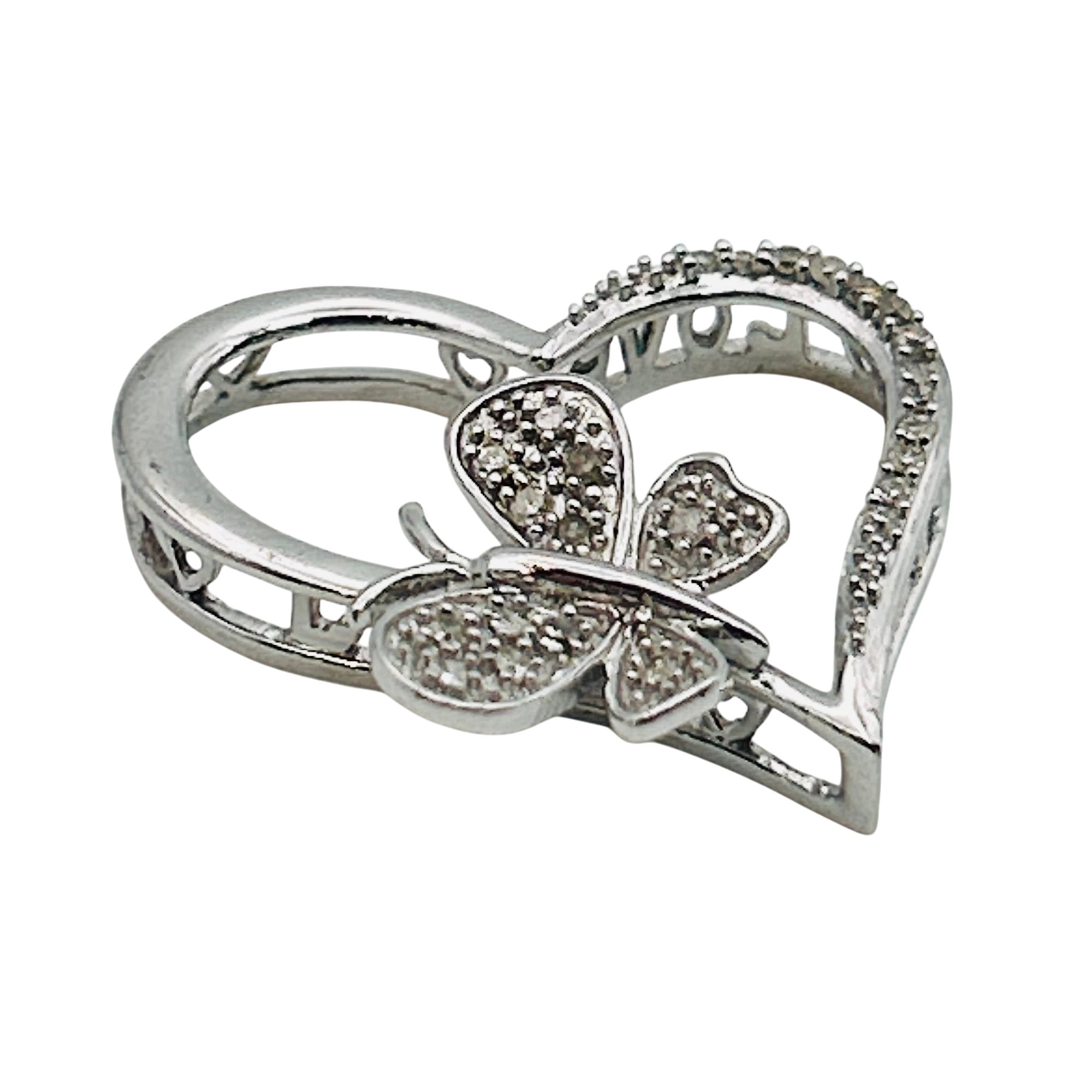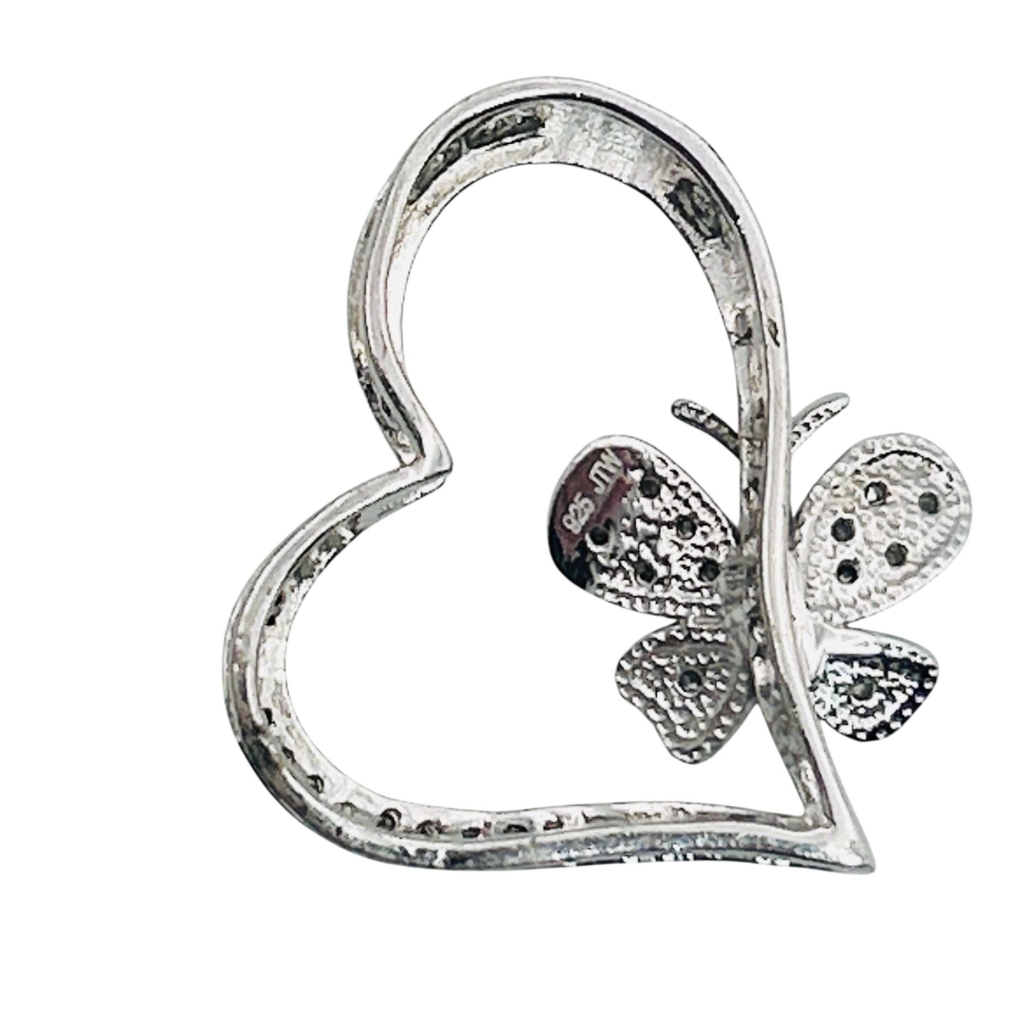 JTW sterling diamond butterfly heart pendant. 2.90 g.