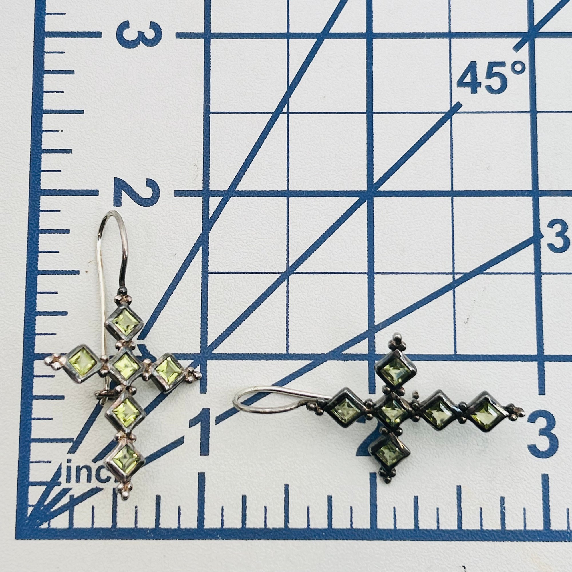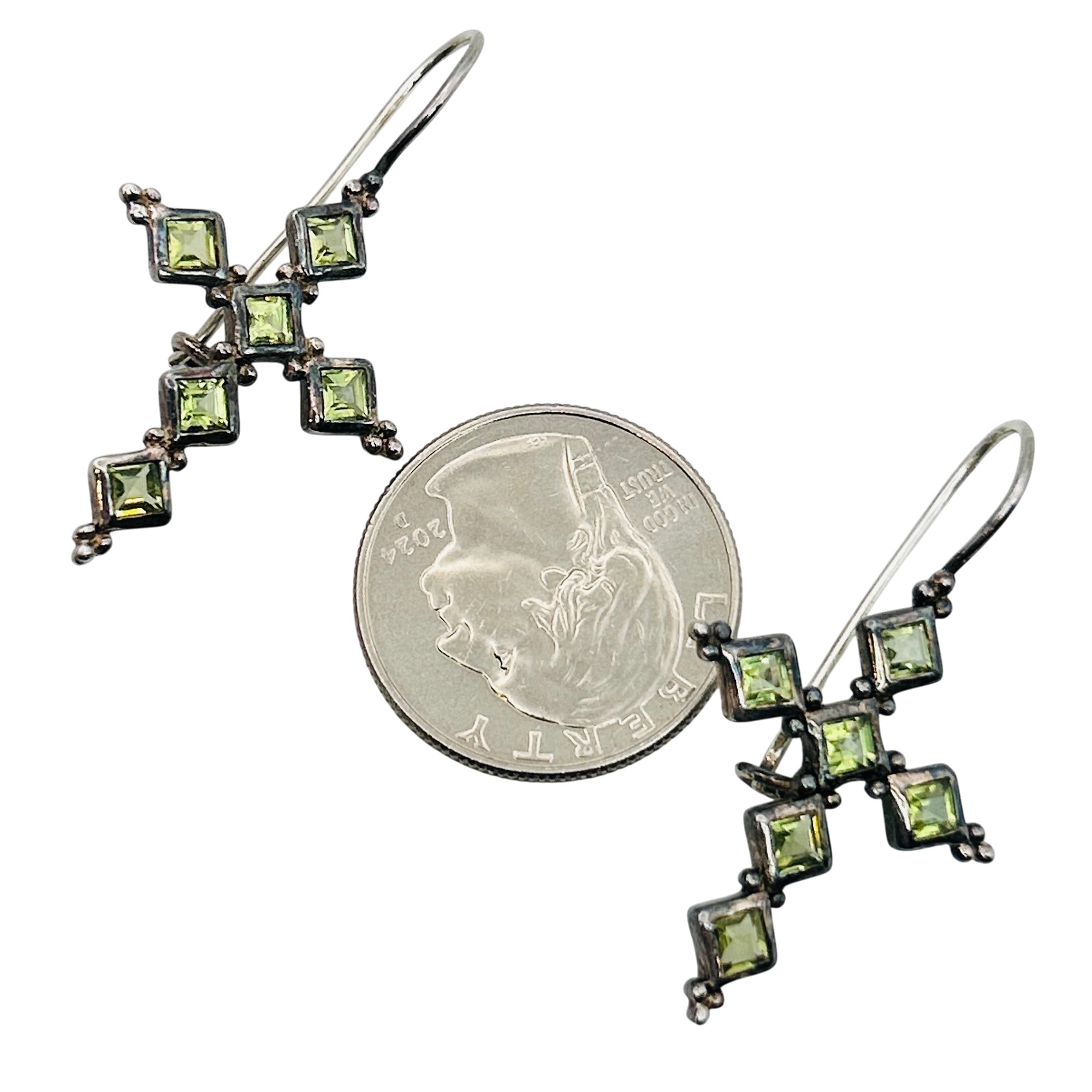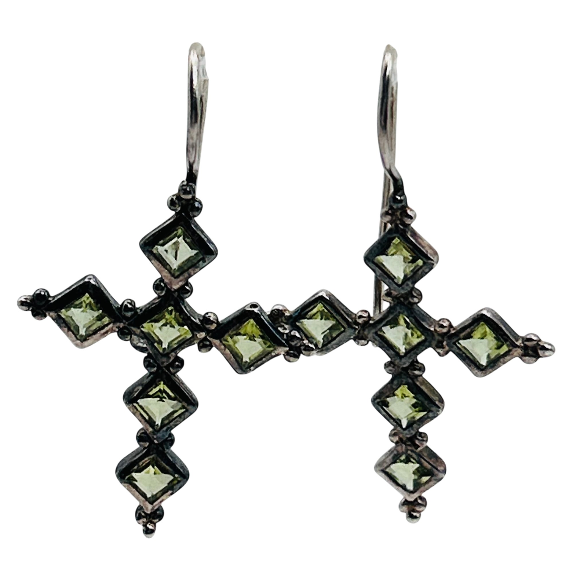Sterling peridot cross earrings. 5.40 g.