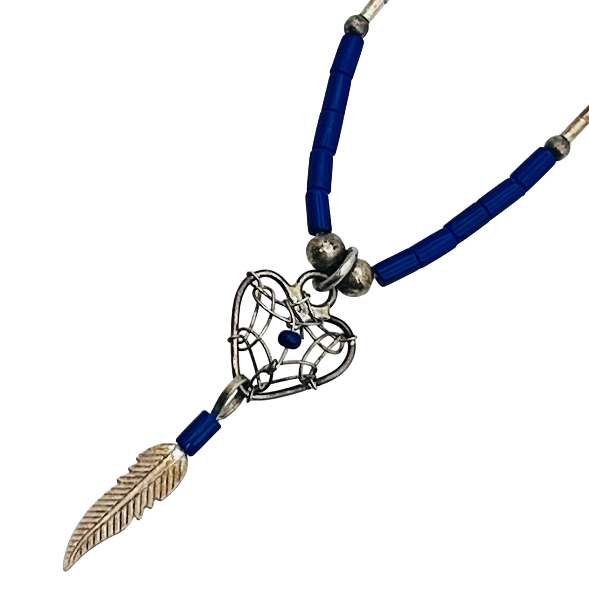 Sterling Southwest bead Dreamcatcher twist clasp necklace. 2.80g.