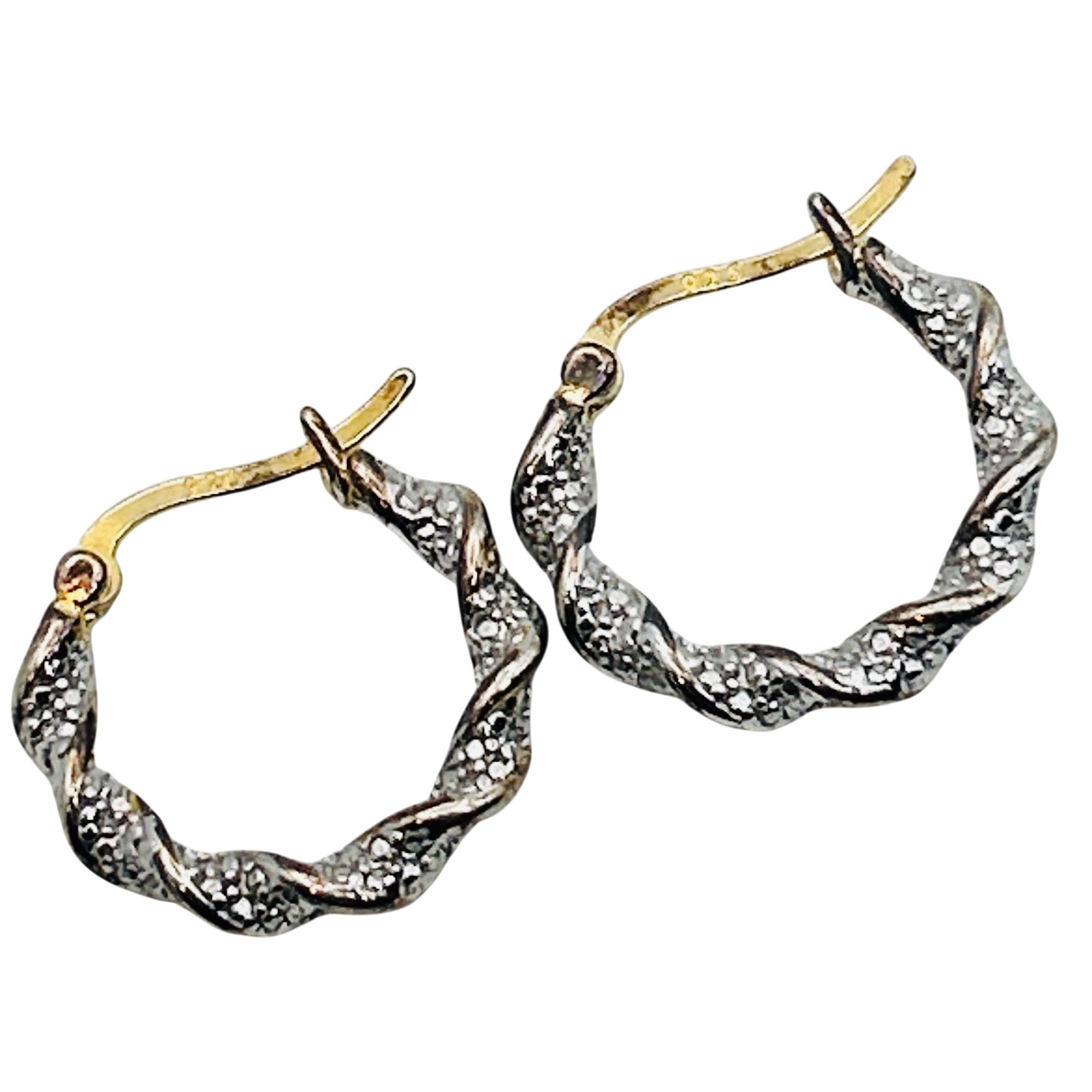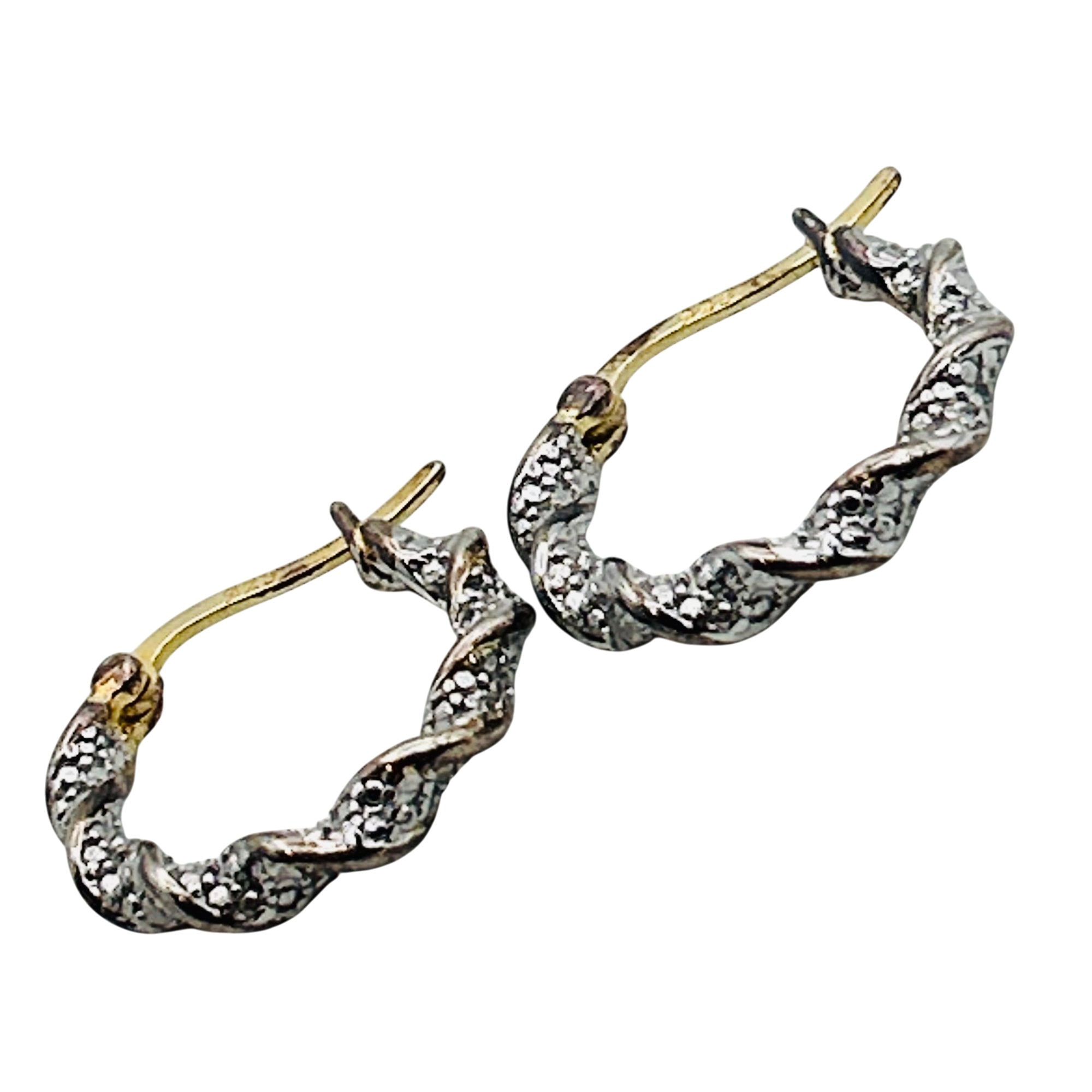 Sterling clear stone twist hoop earrings. 4.10 g.