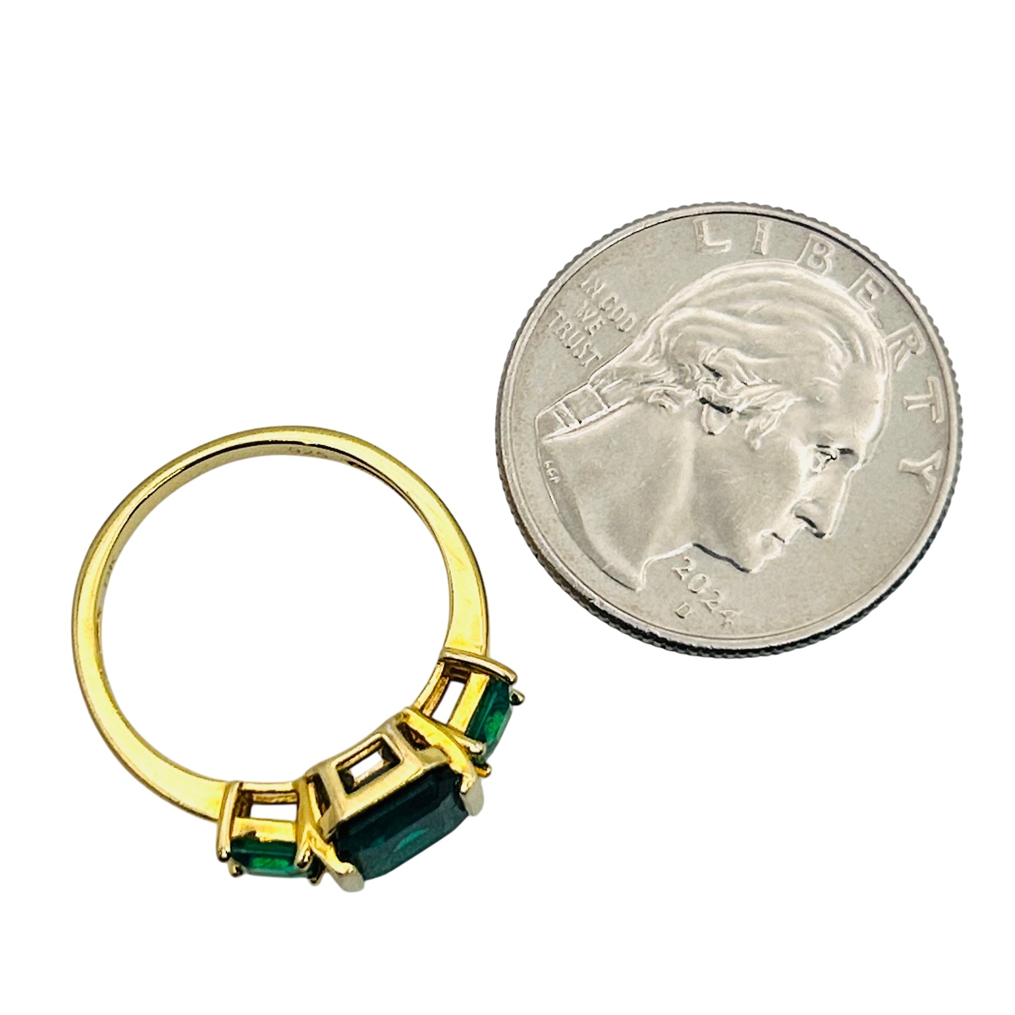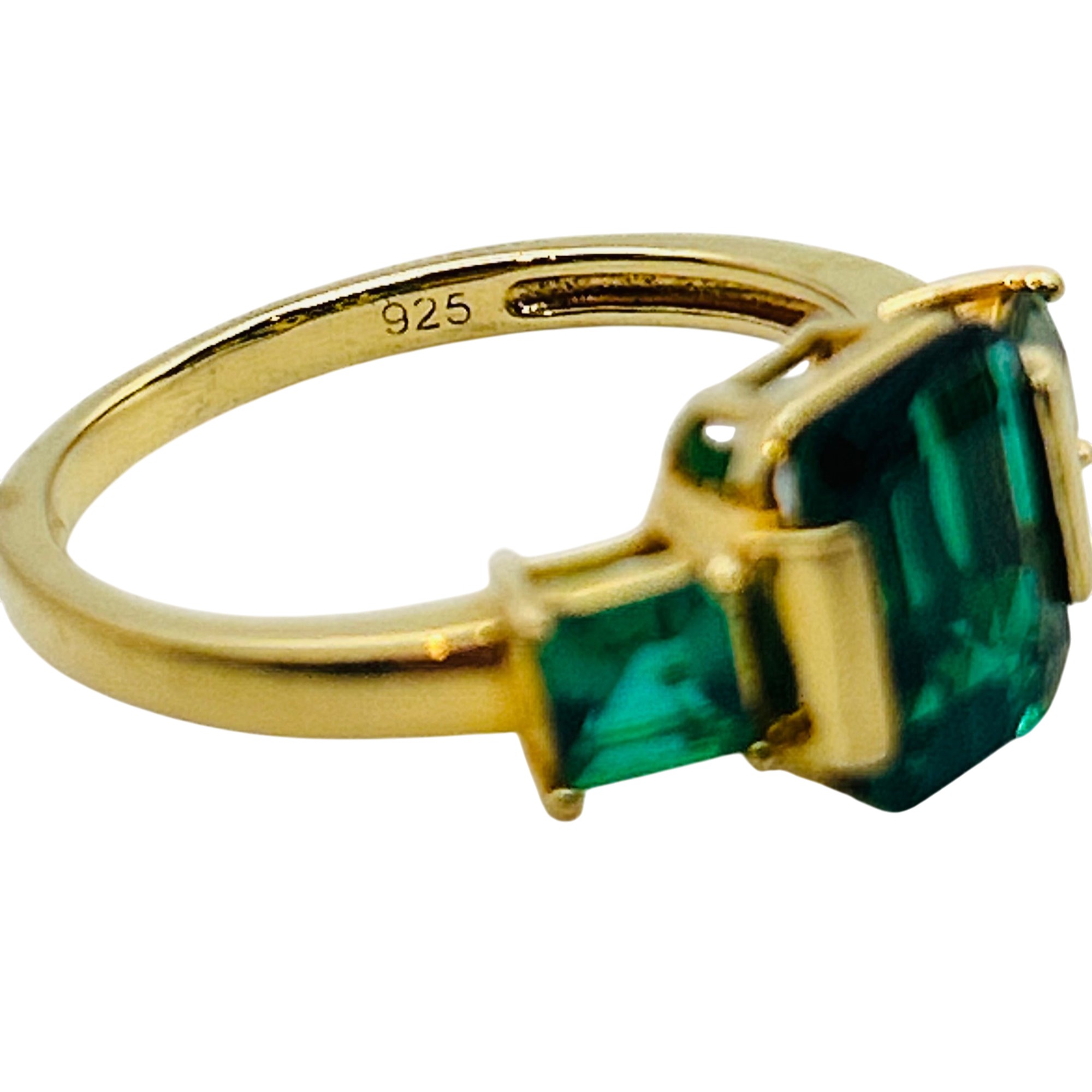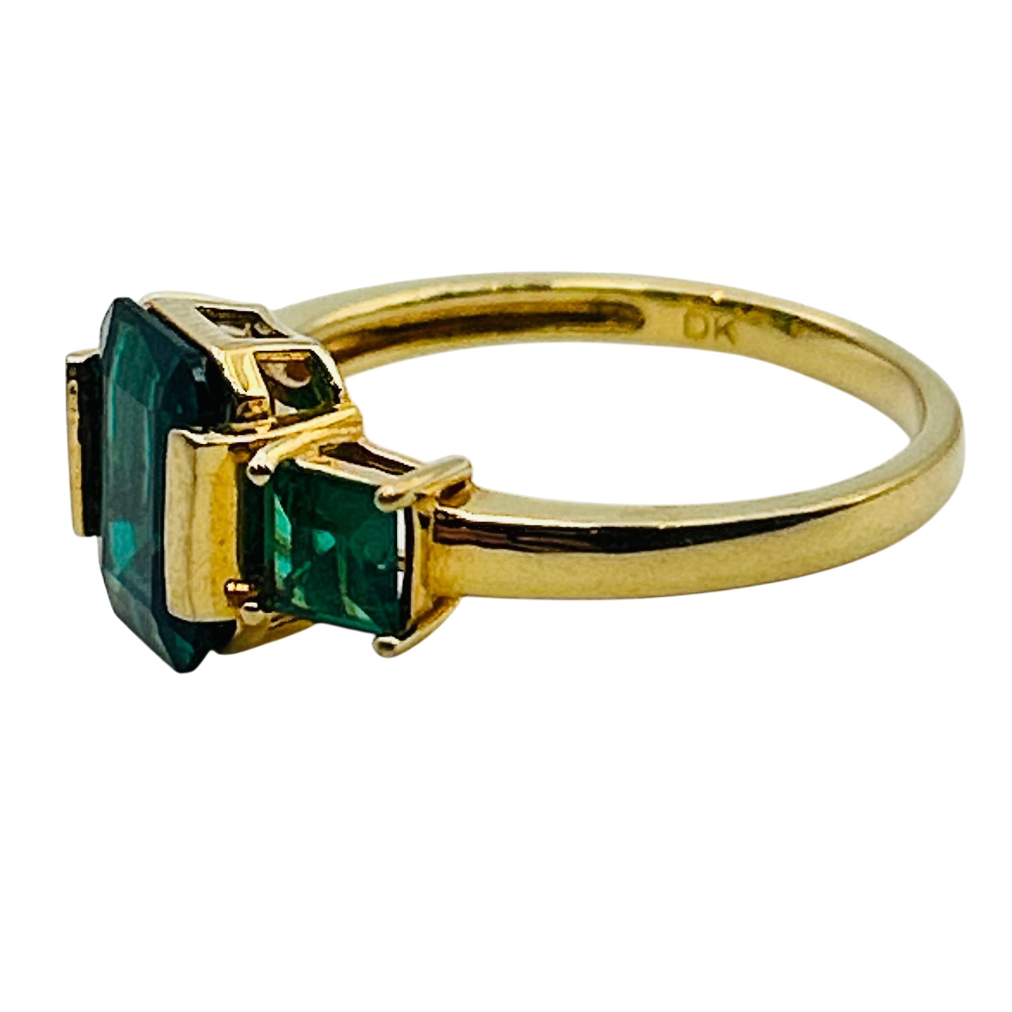 DK Sterling emerald three stone ring. Size 8. 2.80g