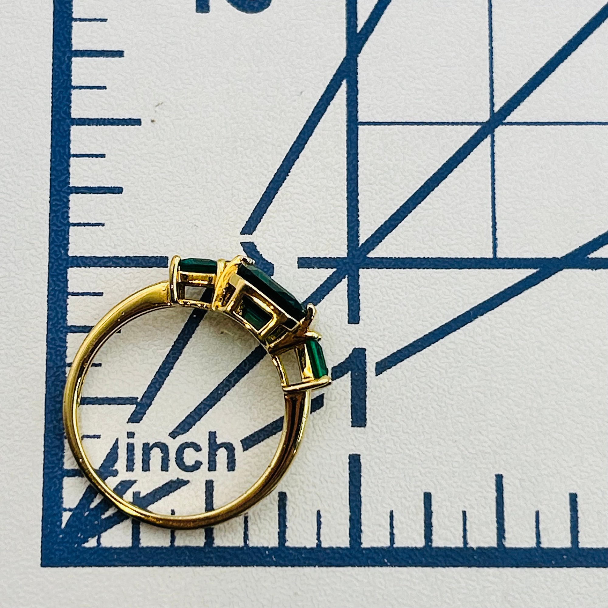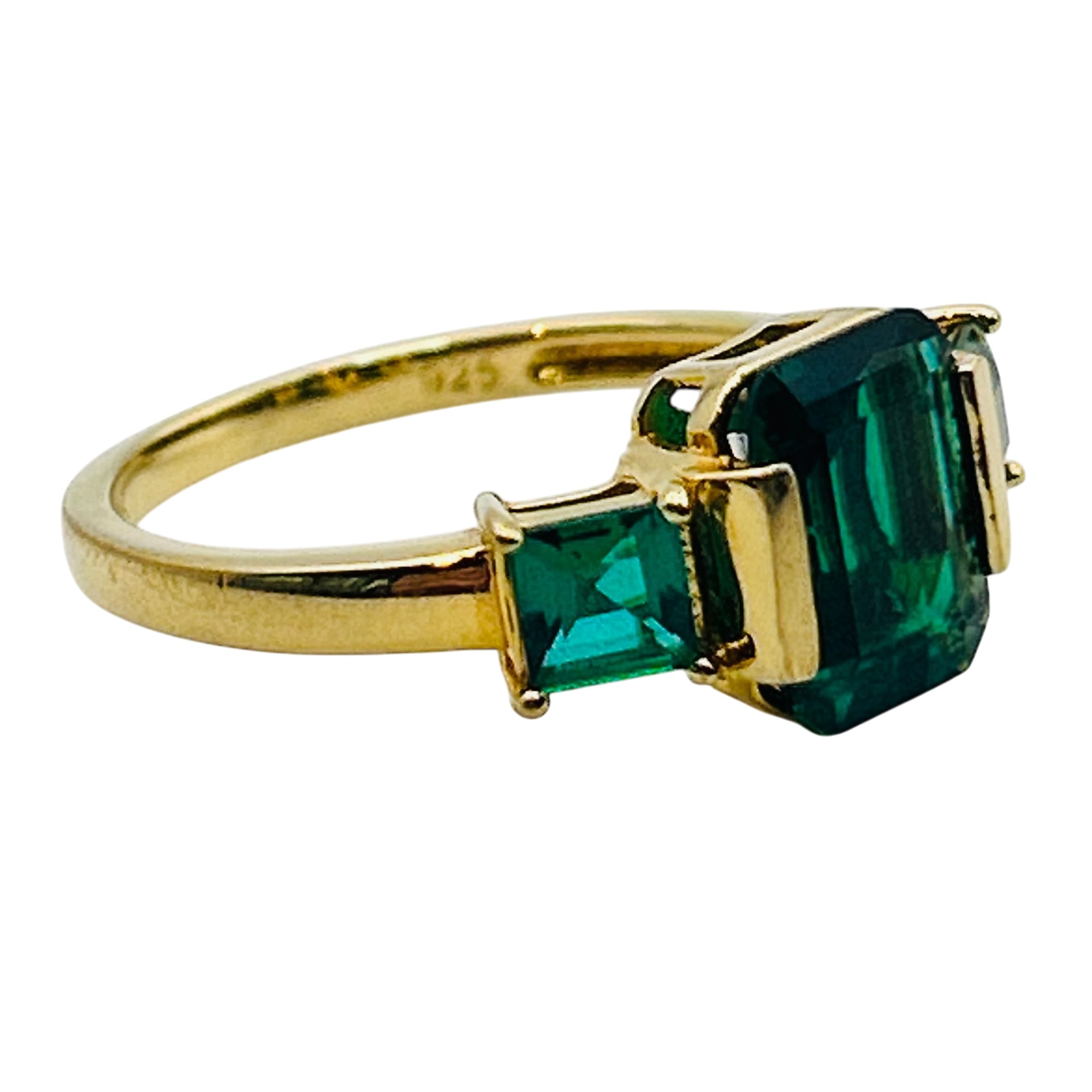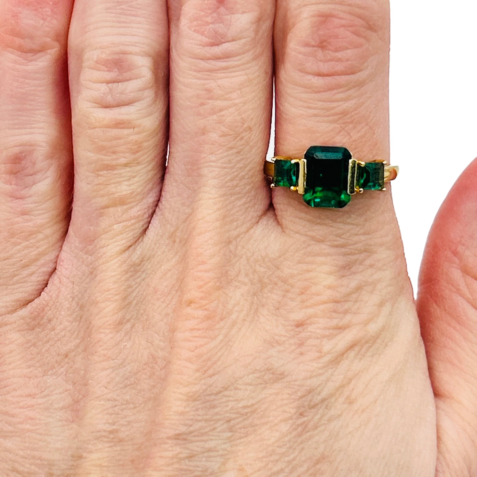 DK Sterling emerald three stone ring. Size 8. 2.80g
