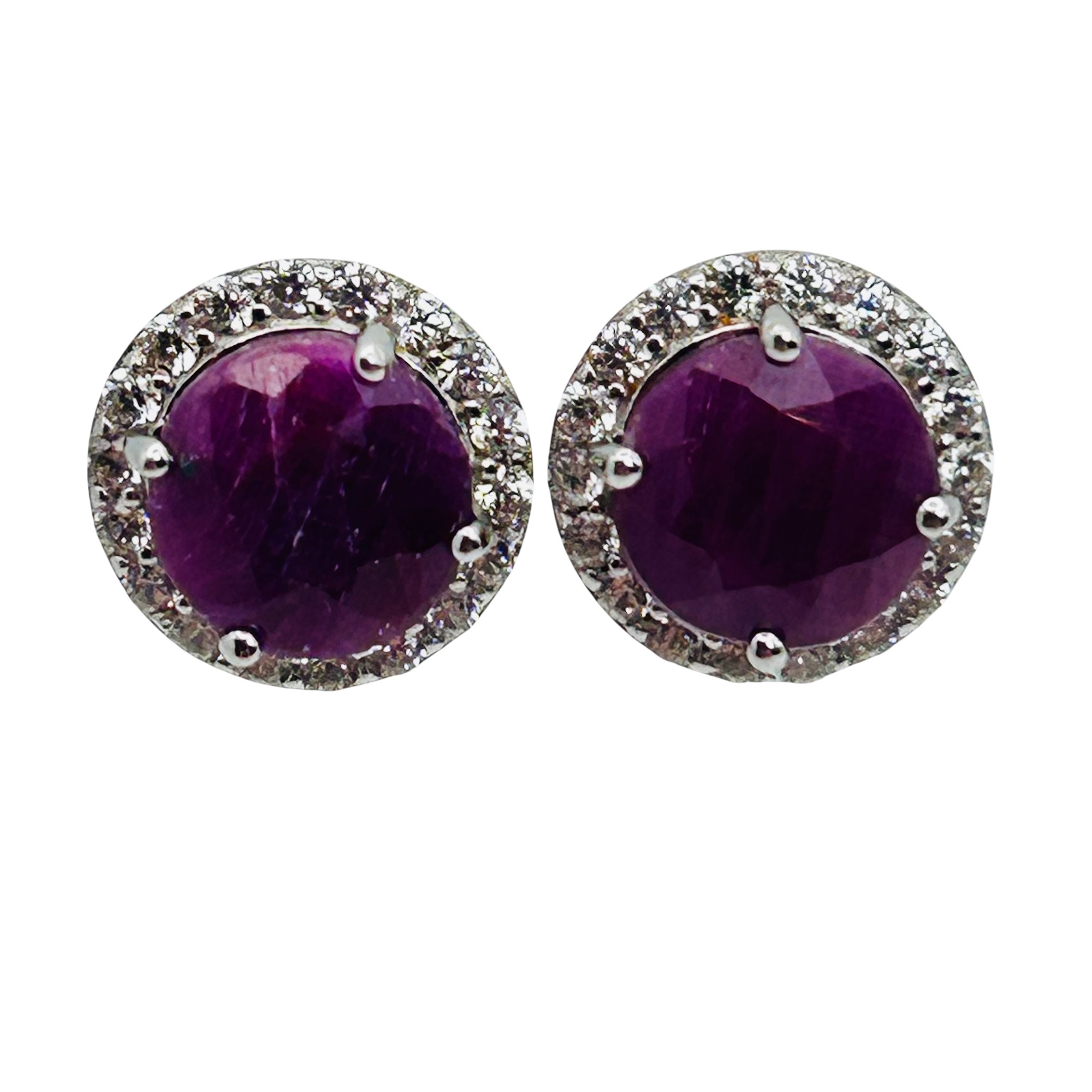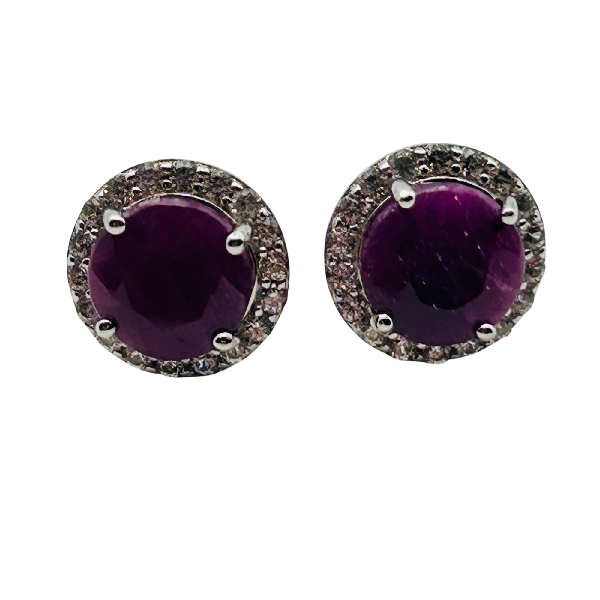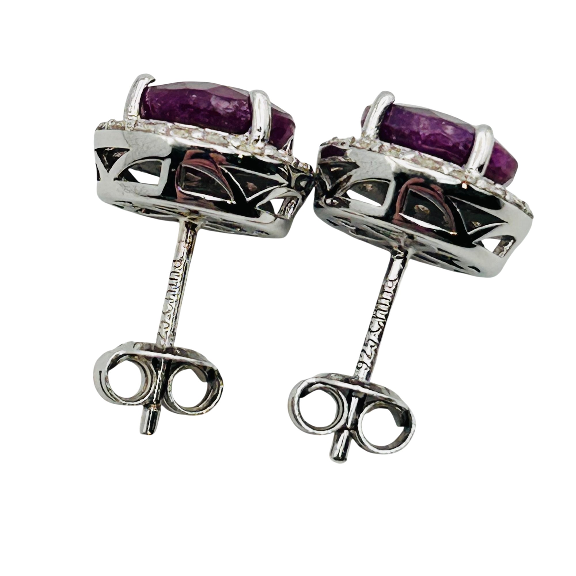 Sterling ruby and spinel halo stud earrings. 3.70g