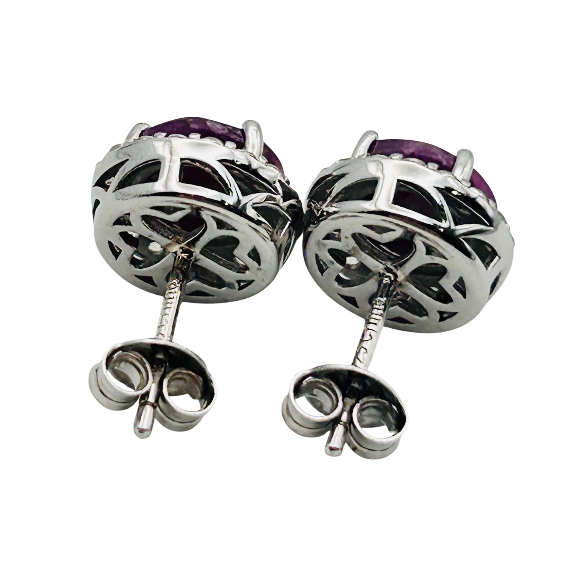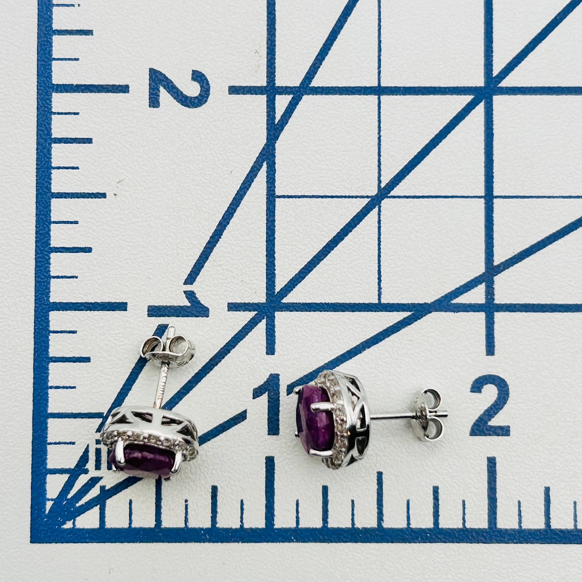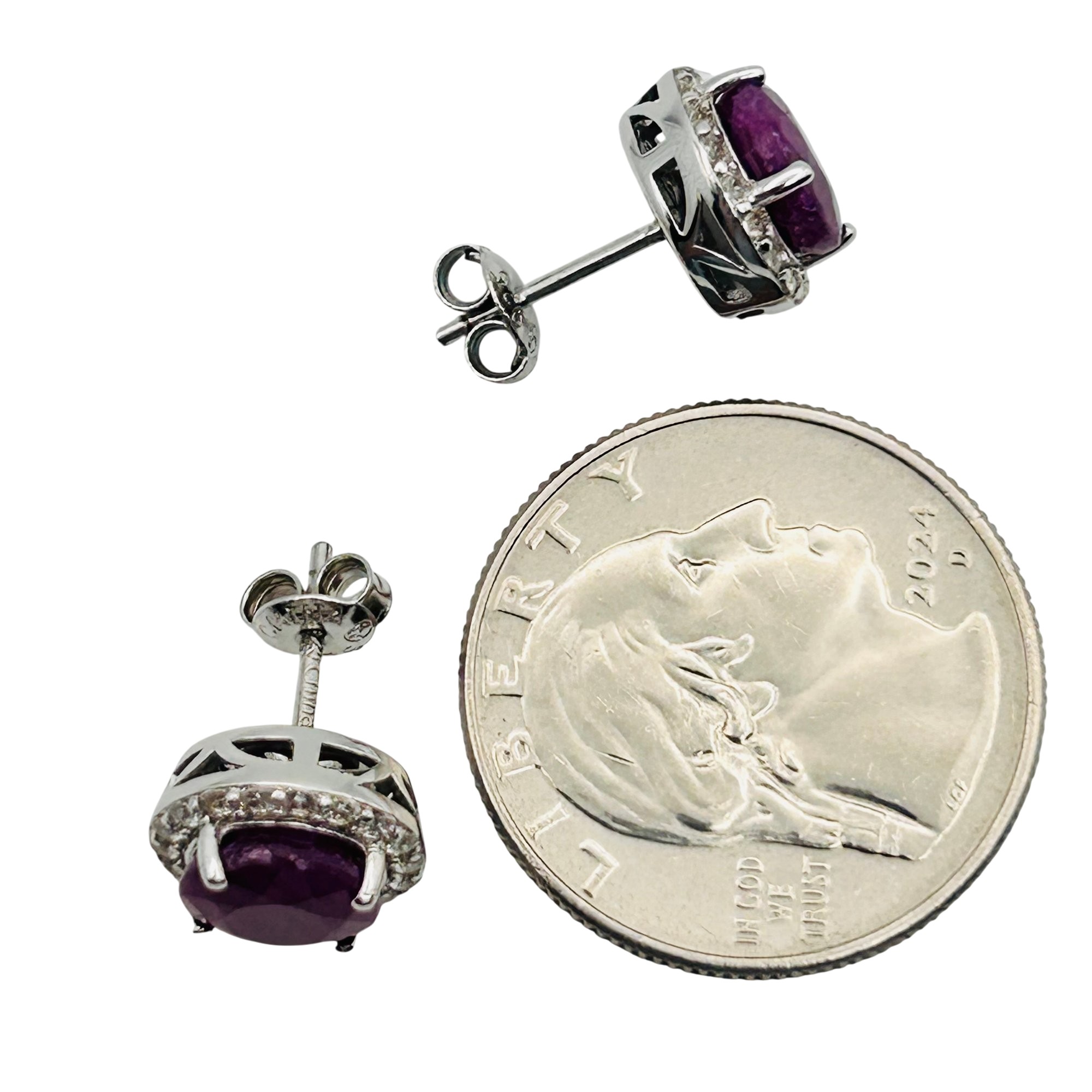 Sterling ruby and spinel halo stud earrings. 3.70g